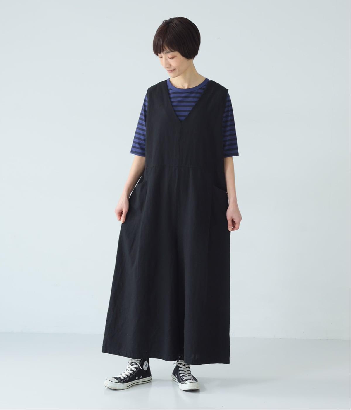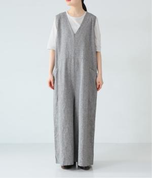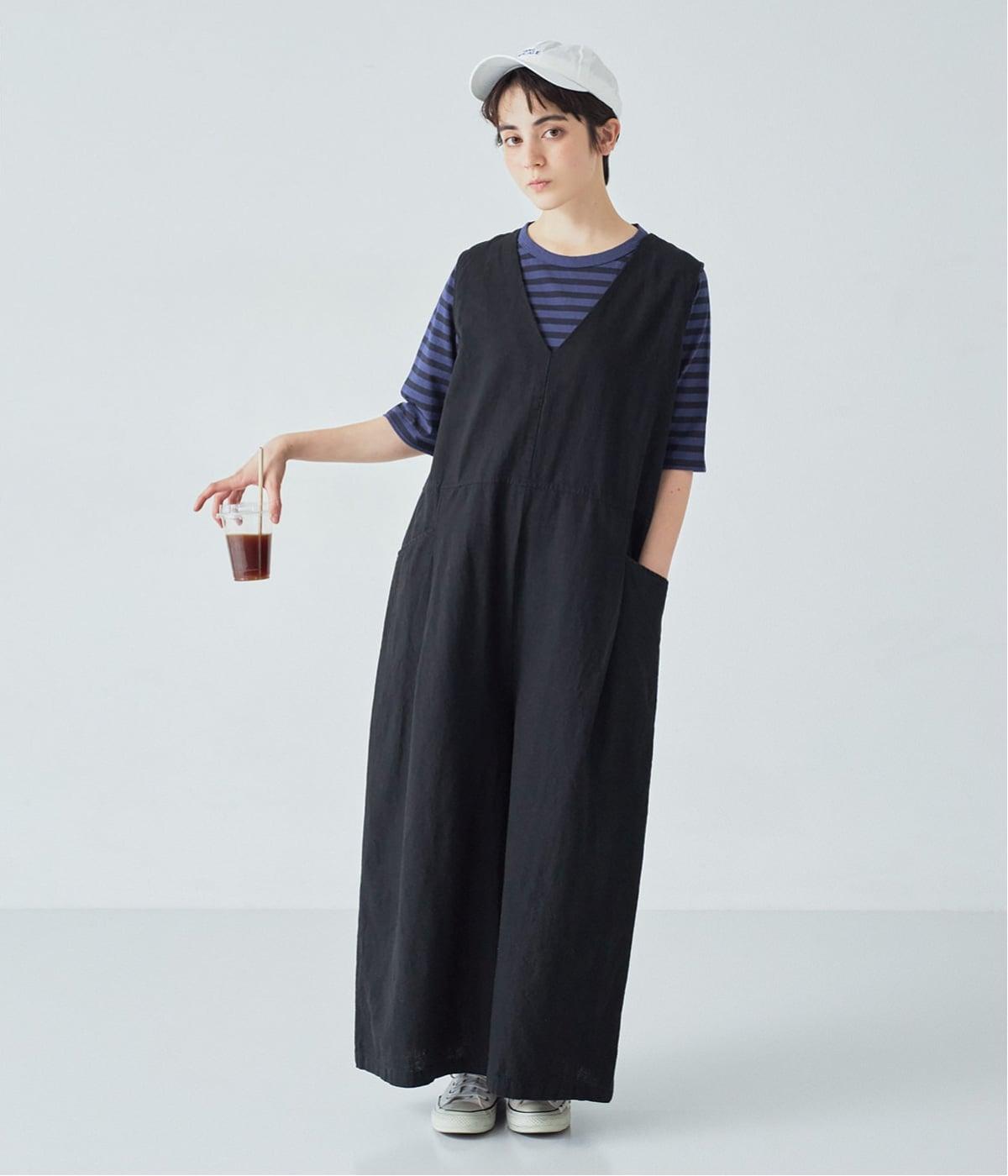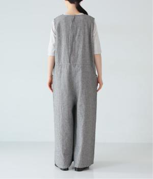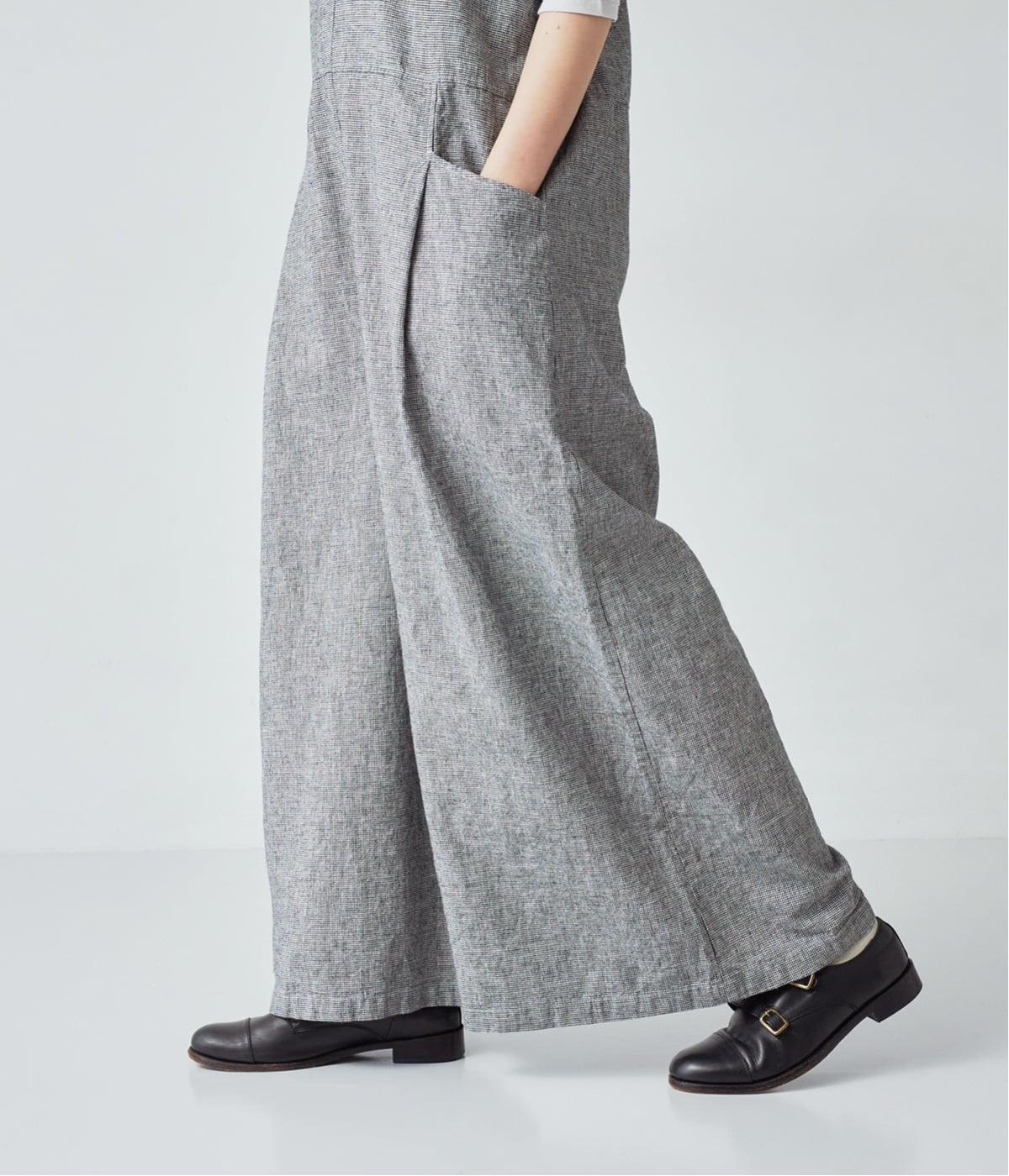 たっぷりとしたワイドな身幅で、気になる体型を自然にカバーするサロペット。腰周りにぐるりとあしらった切り替えが、ほどよくメリハリを与えてくれます。