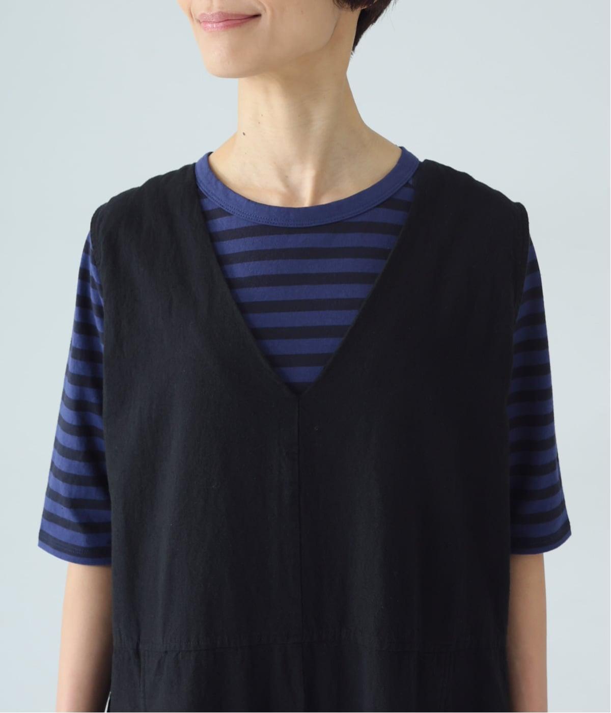 どんなスタイリングにも合わせやすいブラックは、ボーダーTシャツを合わせてカジュアルに。しなやかな素材から生まれるドレープが美しく、ほんのりと上品な雰囲気も感じられます。