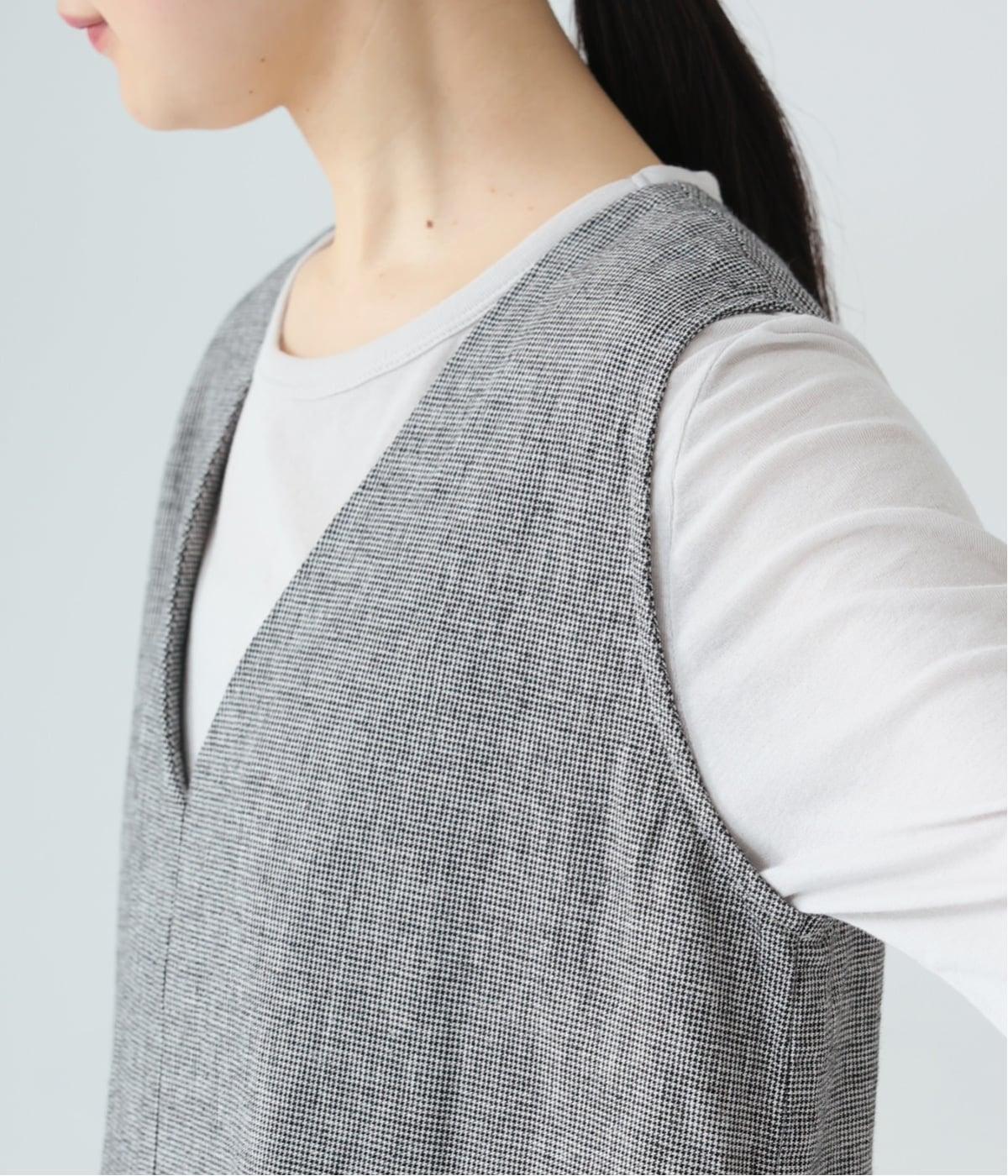 顔周りをすっきりと見せる、深めのVネック。インナーとのレイヤードが映え、着こなしに変化を添えてくれます。抜けをつくりながら、軽やかにバランス整うデザインです。