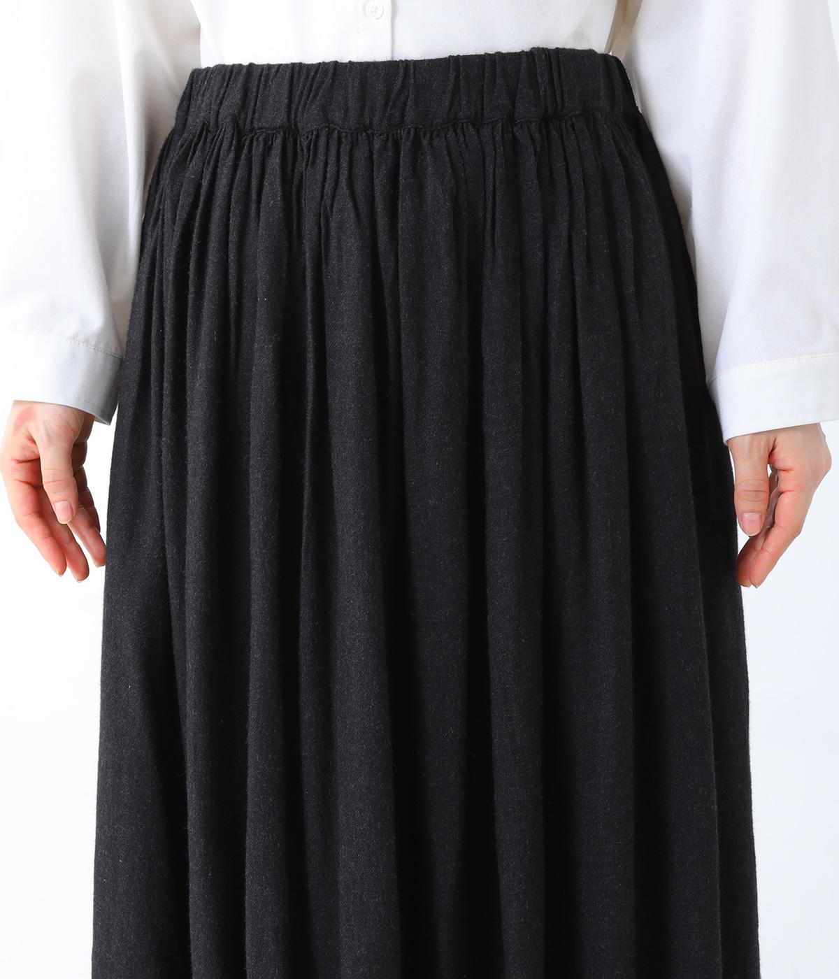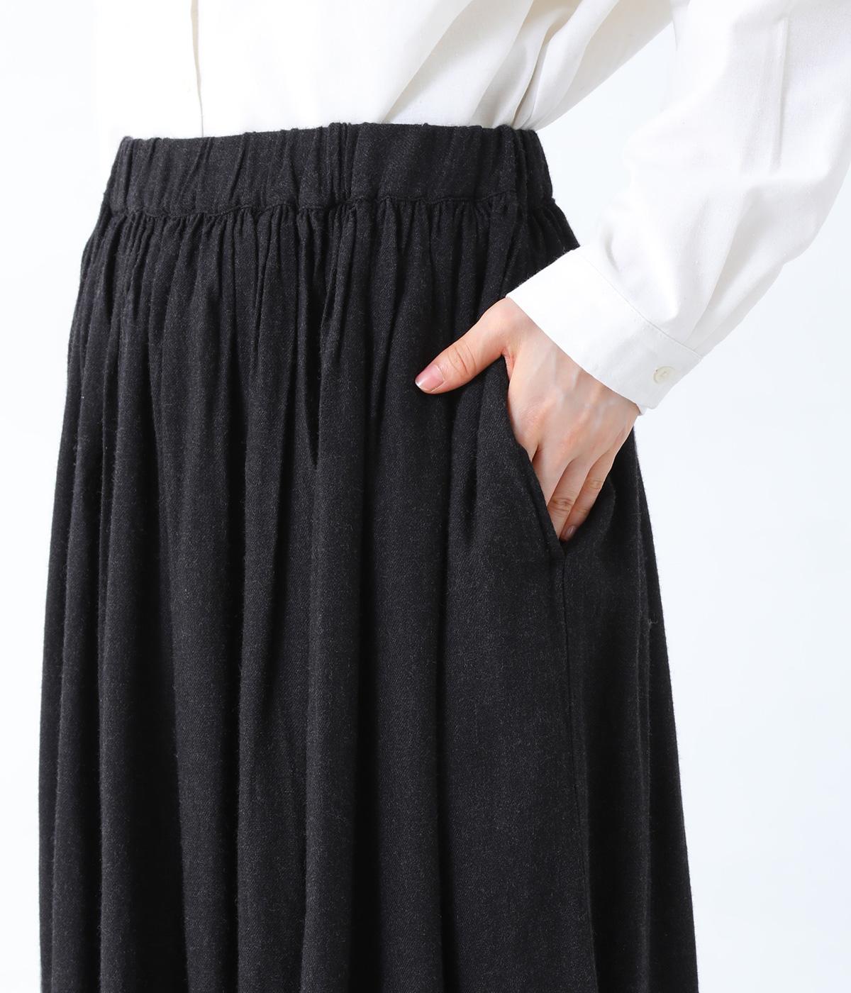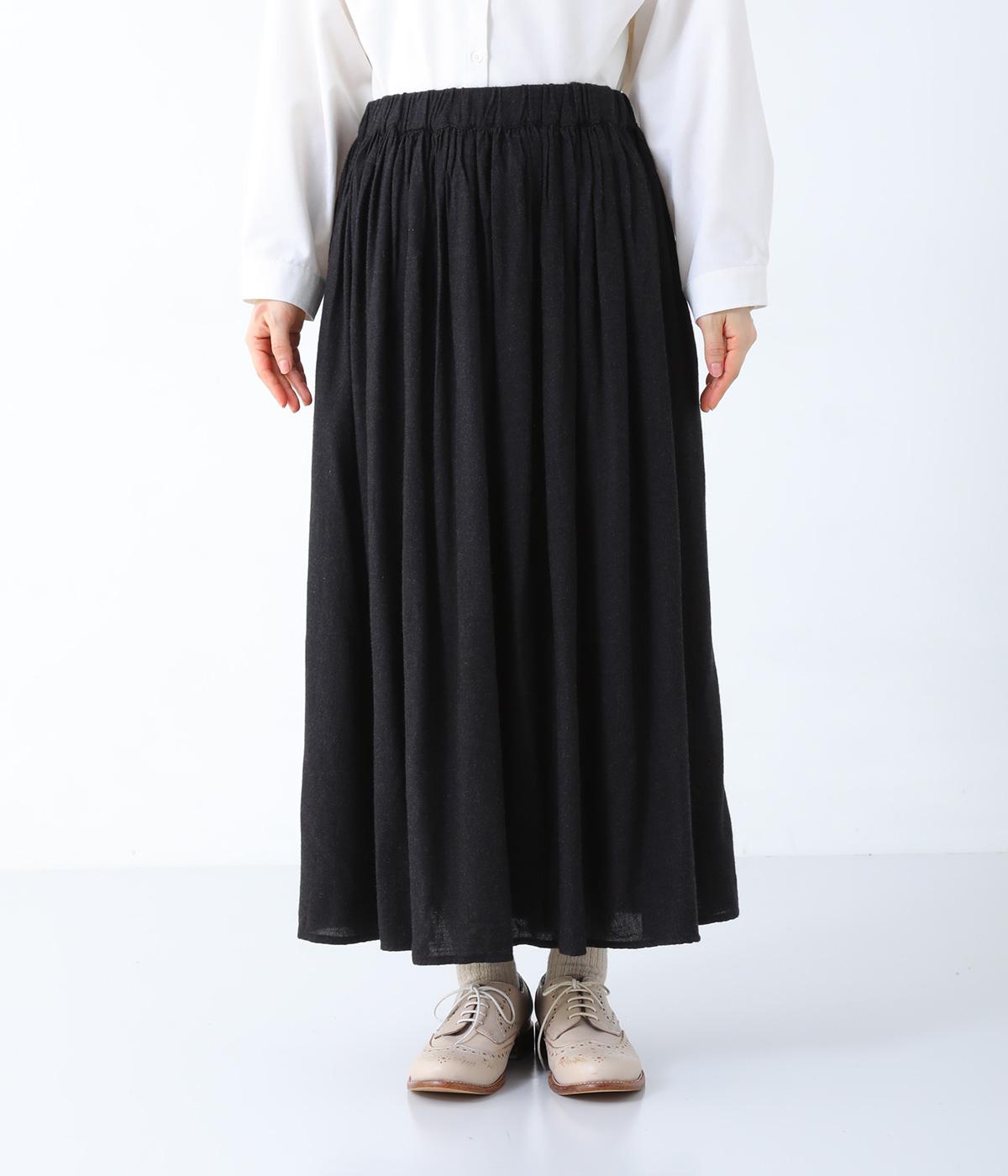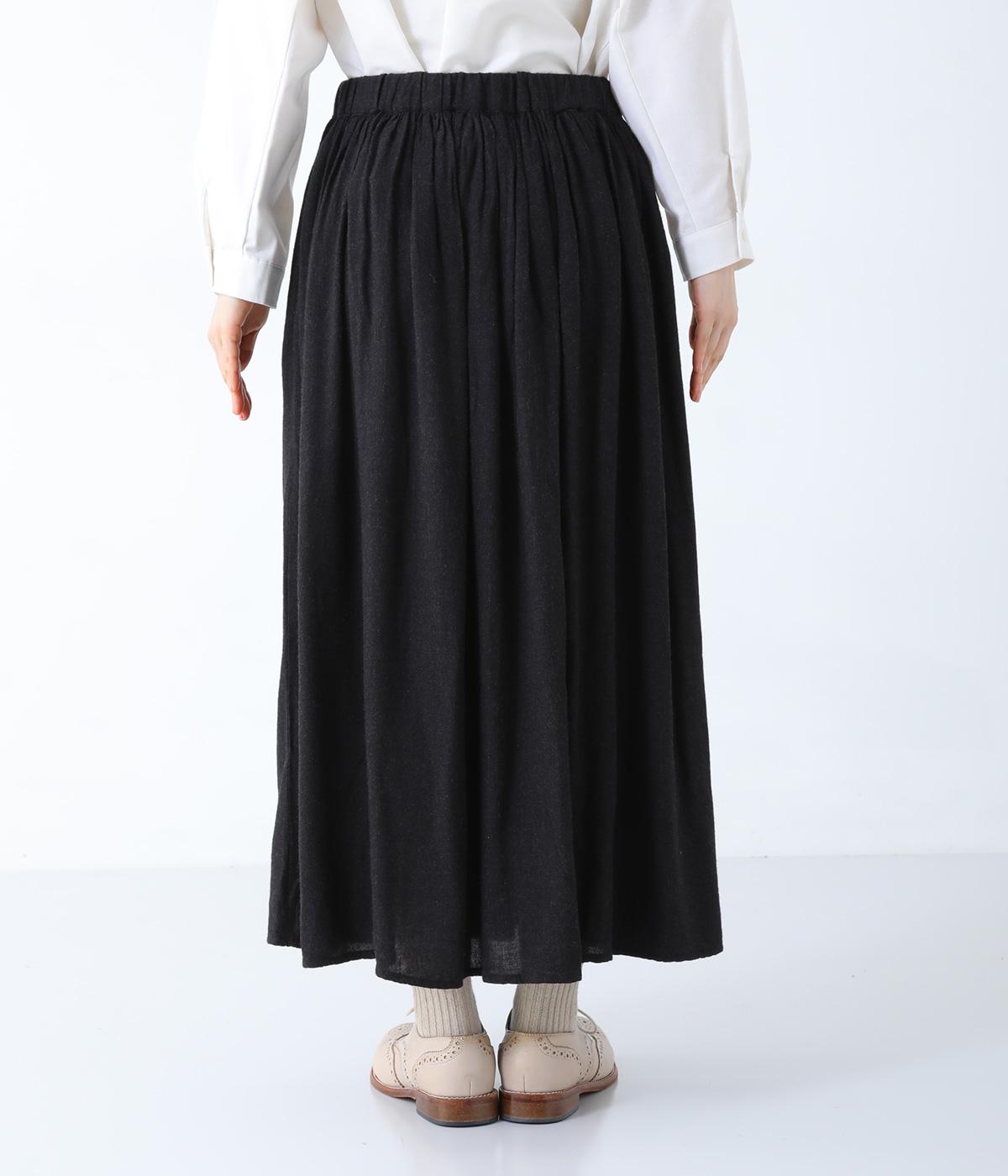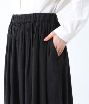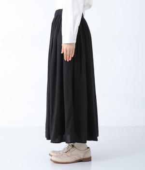 ウエストにたっぷりとギャザーをとり、生地を贅沢に使用したスカート。やわらかな生地感がうむ、女性らしい優雅なドレープが魅力です。両サイドにはあると便利なポケットつき。ワンピースのインナーとして着てもサマになる、さまざまな着こなしをたのしめる一着です。