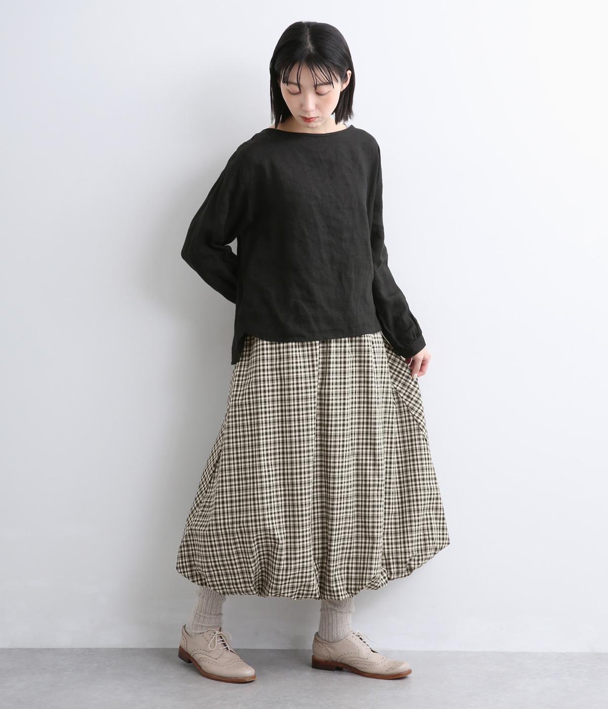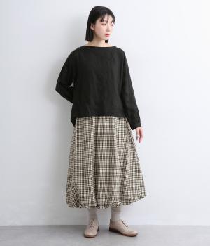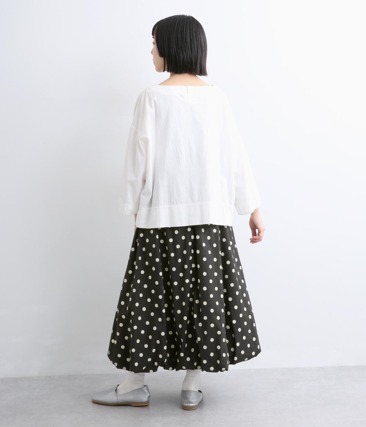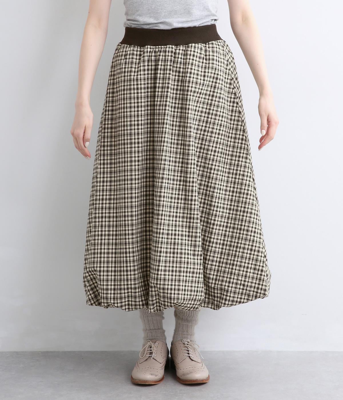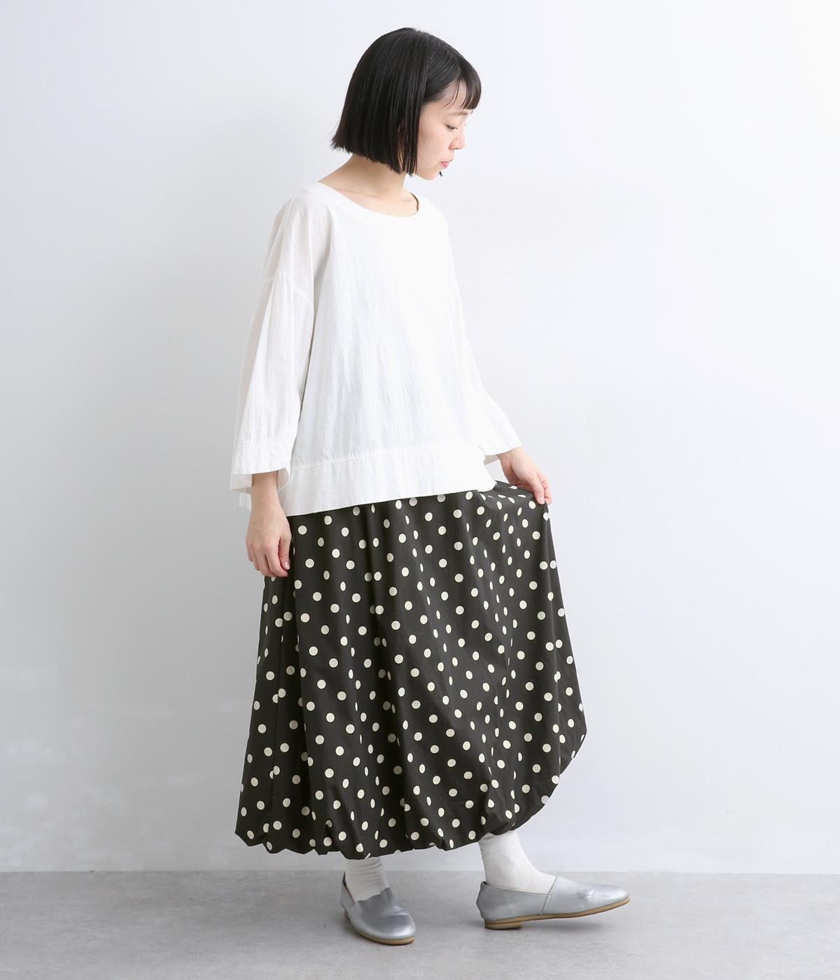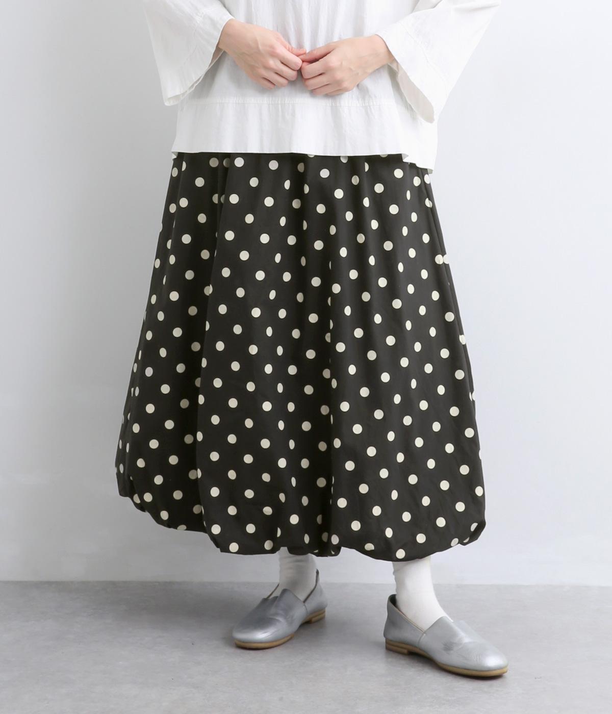 ふっくらとしたバルーンシルエットがスタイリングにメリハリを与える一枚。シックな総柄で雰囲気のある大人ガーリースタイルが完成。ウエストは総リブに調整紐入りでフィット感のよさとすっきり見えを両立させ、トップスインもきまります。