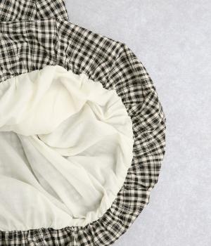 チェック柄はさらりとしたコットン生地を、ドット柄はほのかに光沢とシャリ感のあるコットンテンセルの混紡生地を使用しています。どちらも薄手の綿裏地つきです。