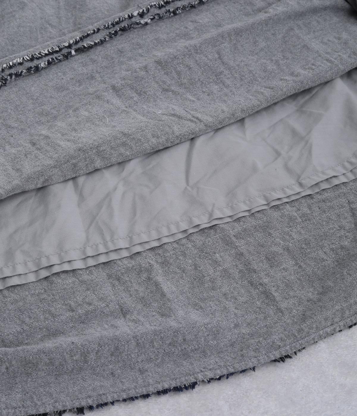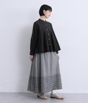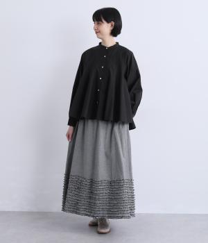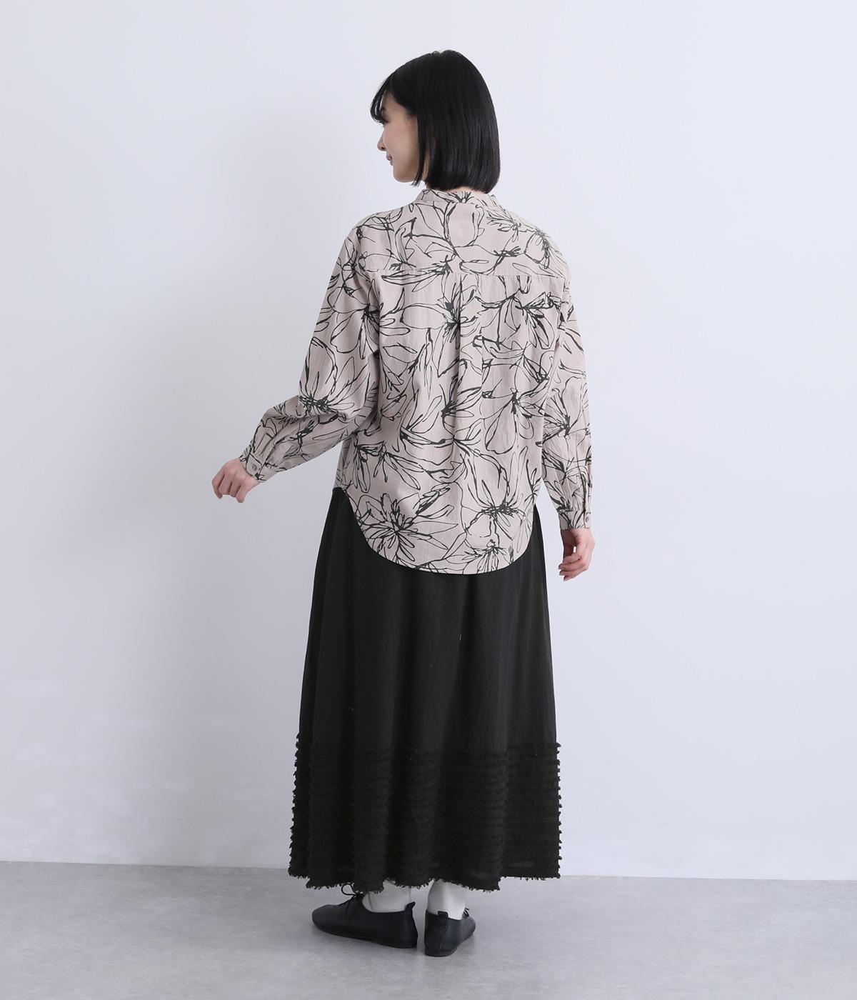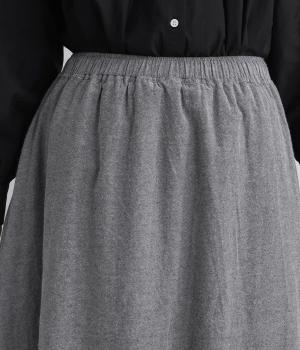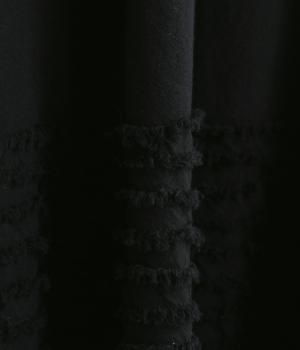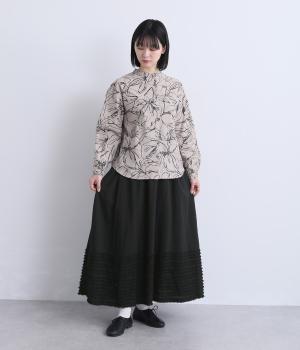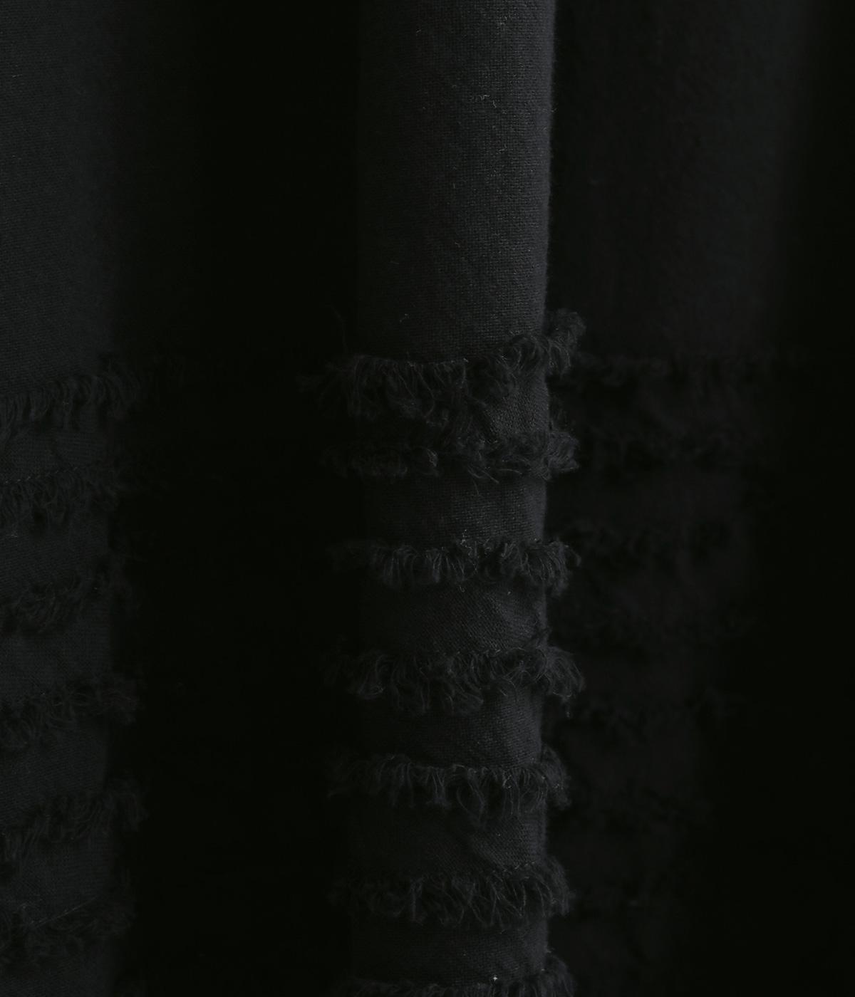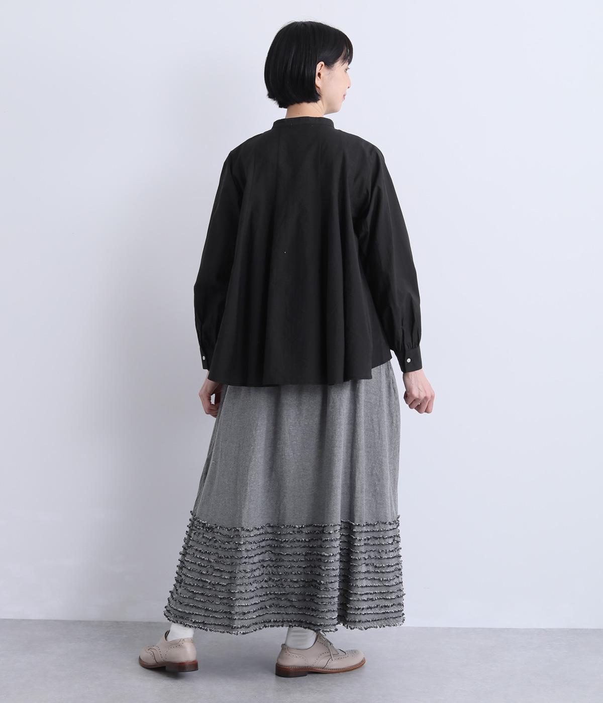 裾にたっぷりと走らせたフリンジラインがデザインポイントのスカート。適度なフレア感とすっきりと見えるロング丈のバランスが良く、大人のナチュラルスタイルになじみます。ウエストは総ゴム&内側に調整紐入りです。