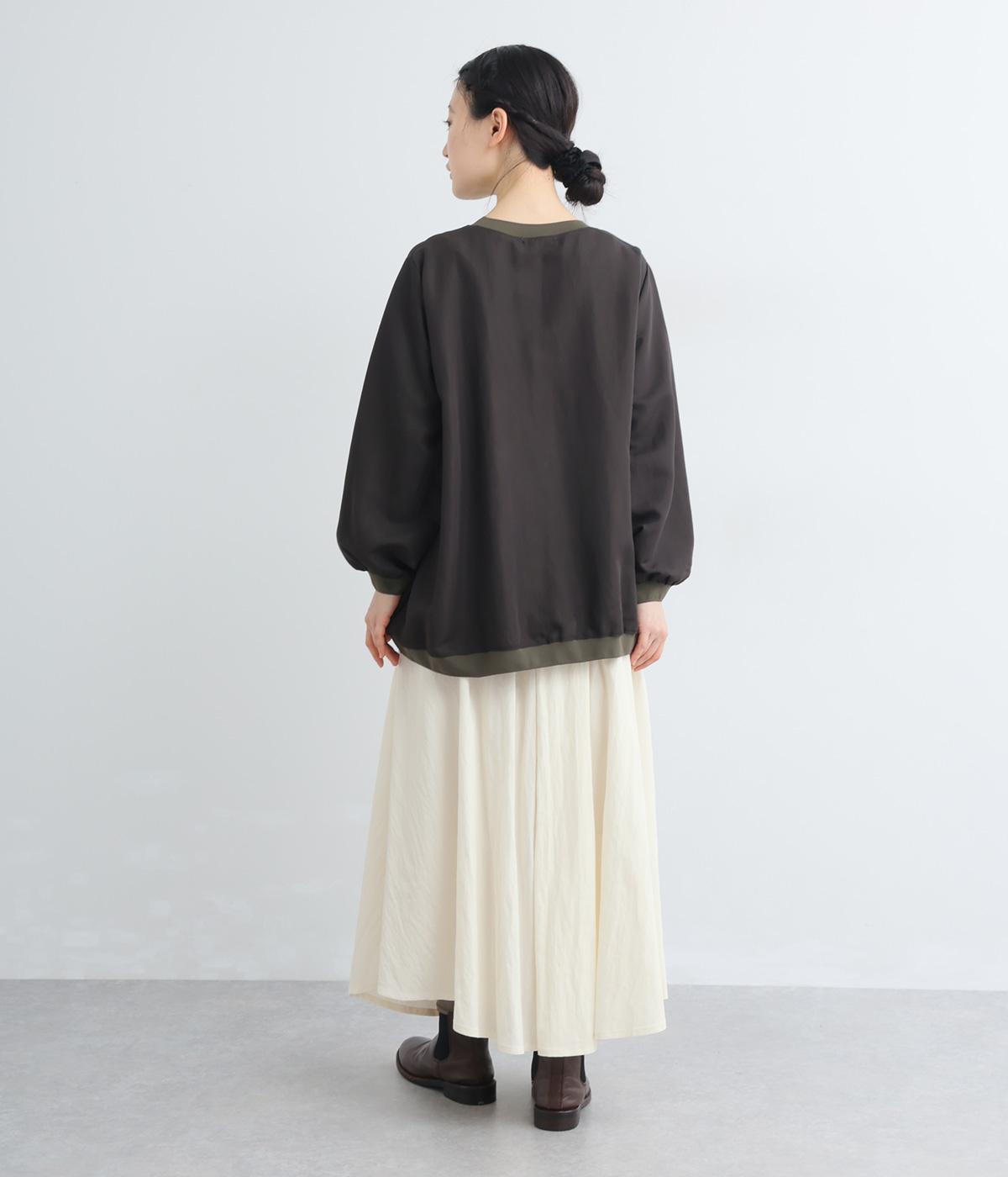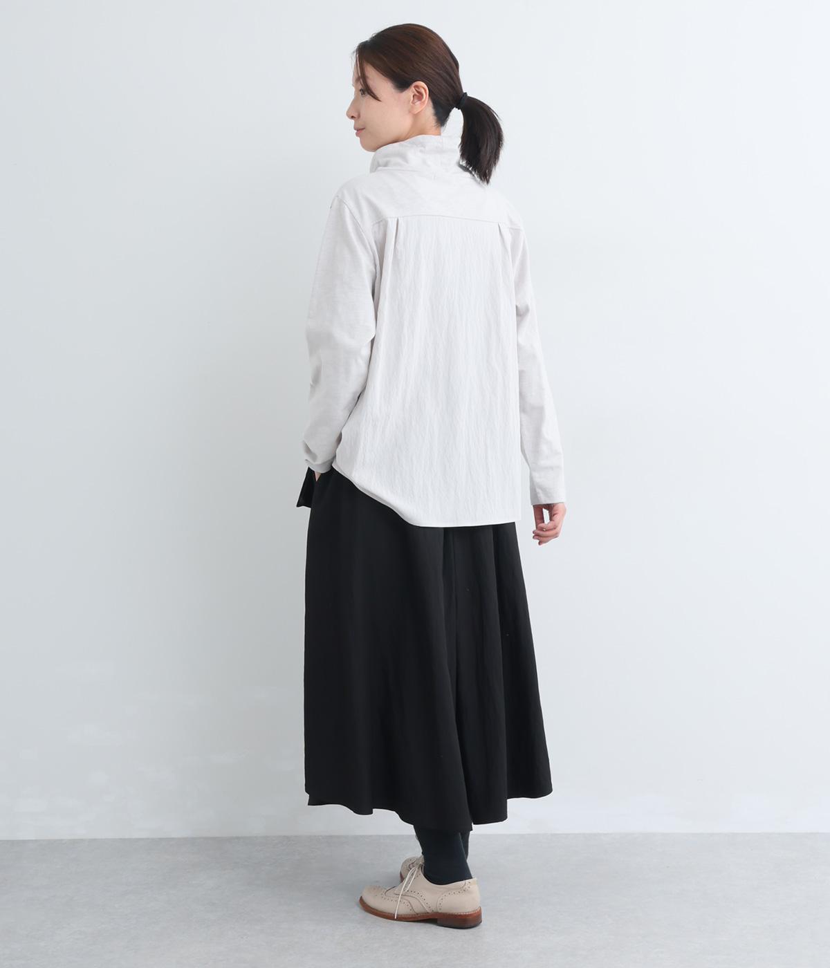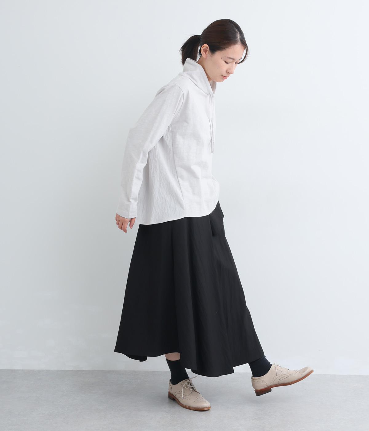 レーヨンのなめらかな光沢感とナイロンのタフさを併せ持った薄めの混紡生地を採用。ウォッシュ加工による風合いとナチュラルなシボ感が独特のこなれ感を生み出します。