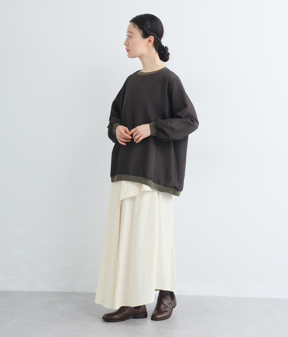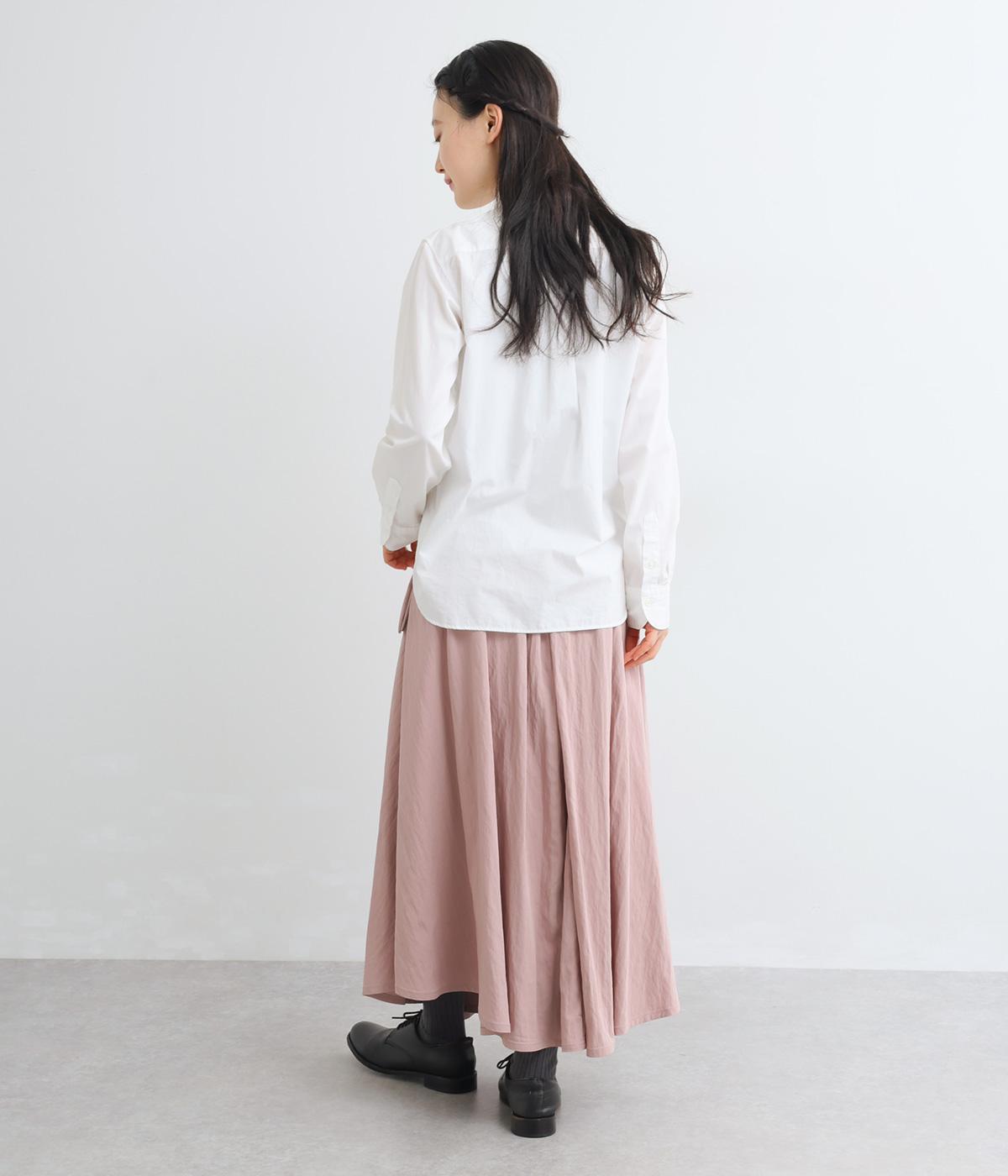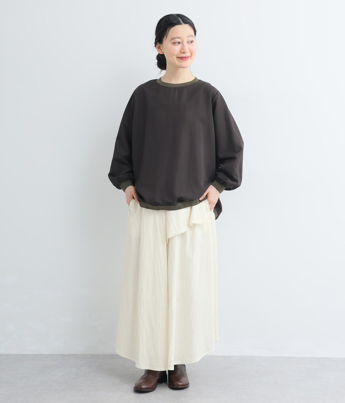レーヨンのなめらかな光沢感とナイロンのタフさを併せ持った薄めの混紡生地を採用。ウォッシュ加工による風合いとナチュラルなシボ感が独特のこなれ感を生み出します。
