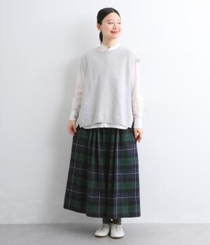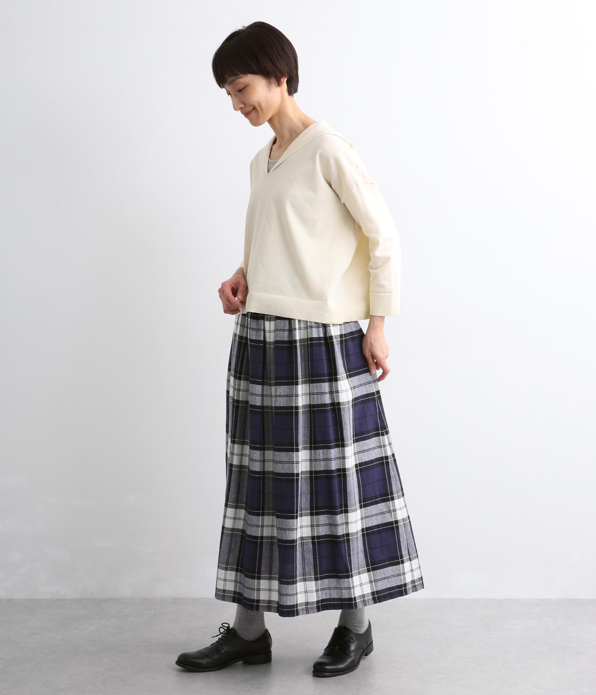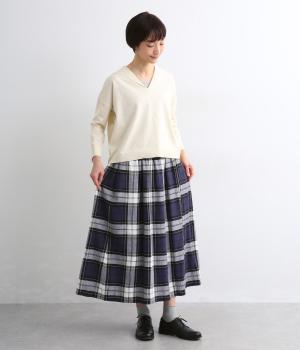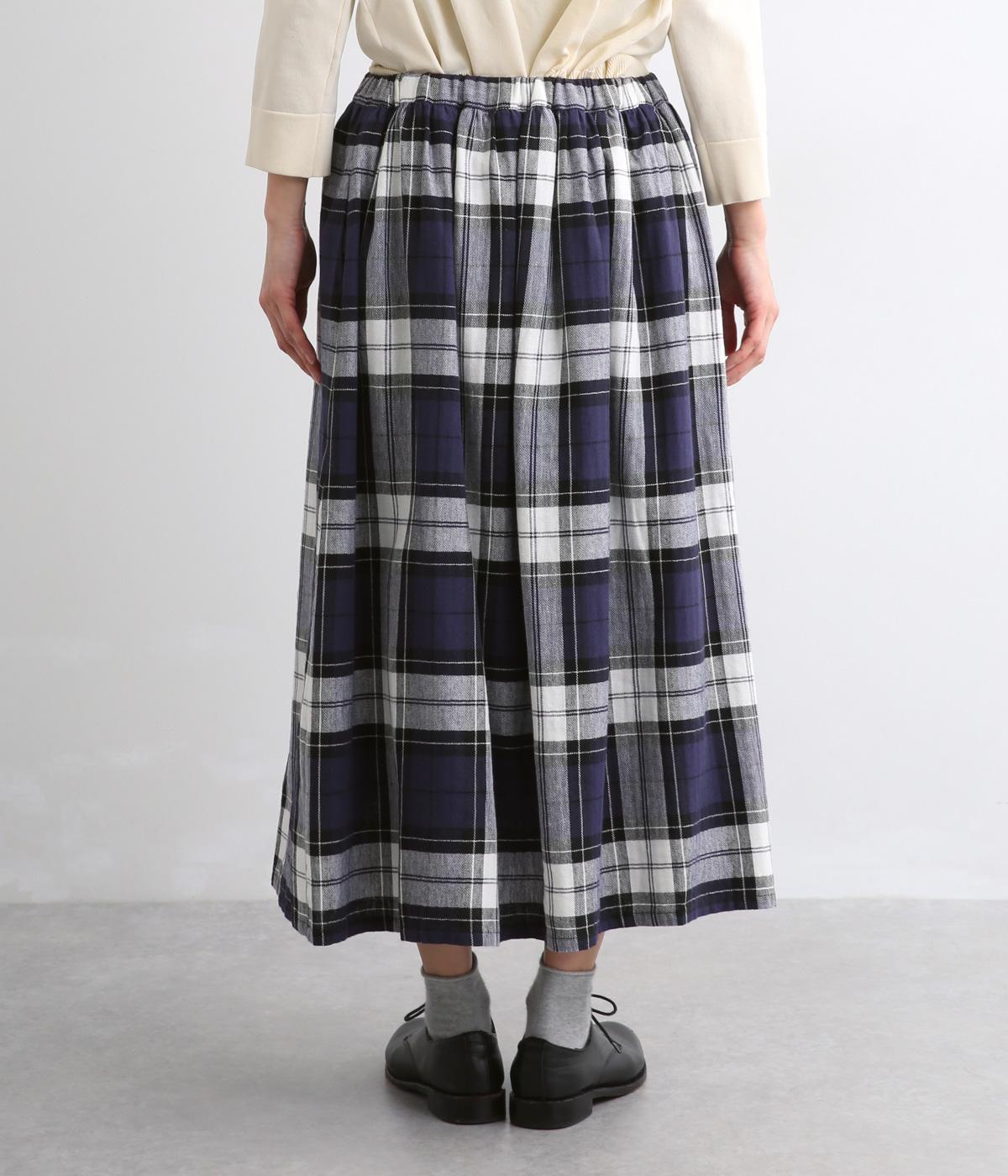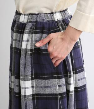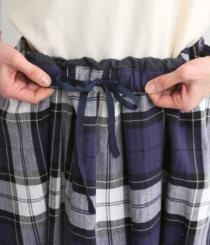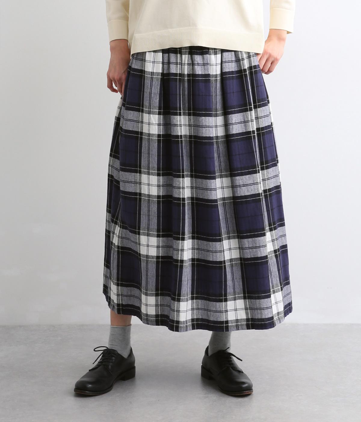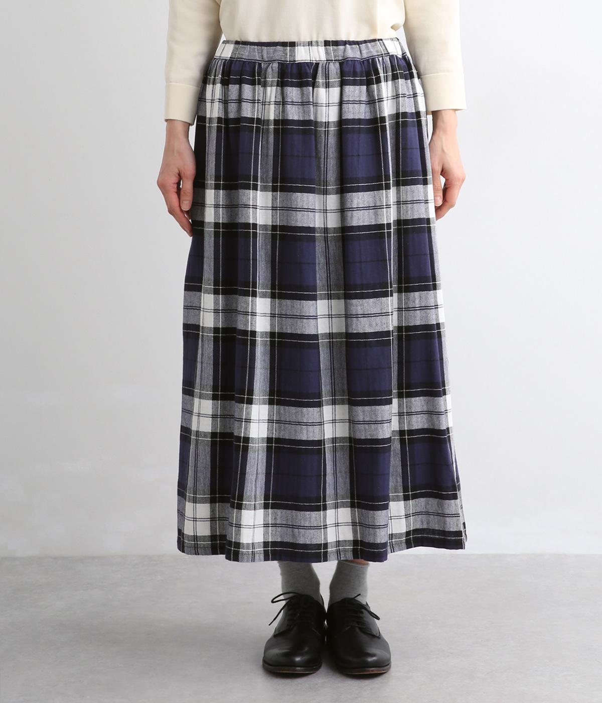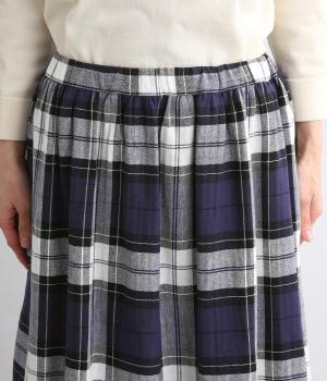 手持ちのトップスに合わせるだけでトラッドスタイルが完成するチェック柄スカート。ほどよくゆとりを持たせながらもすっきりとタテラインを感じさせるシルエットが大人顔。ウエストはオールゴム&内紐入りでイージー仕様に。