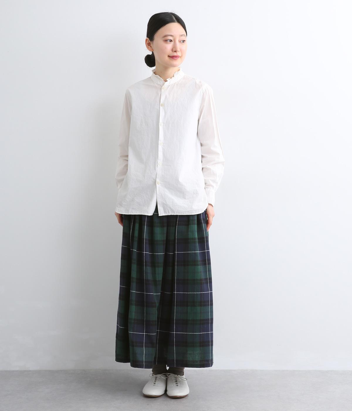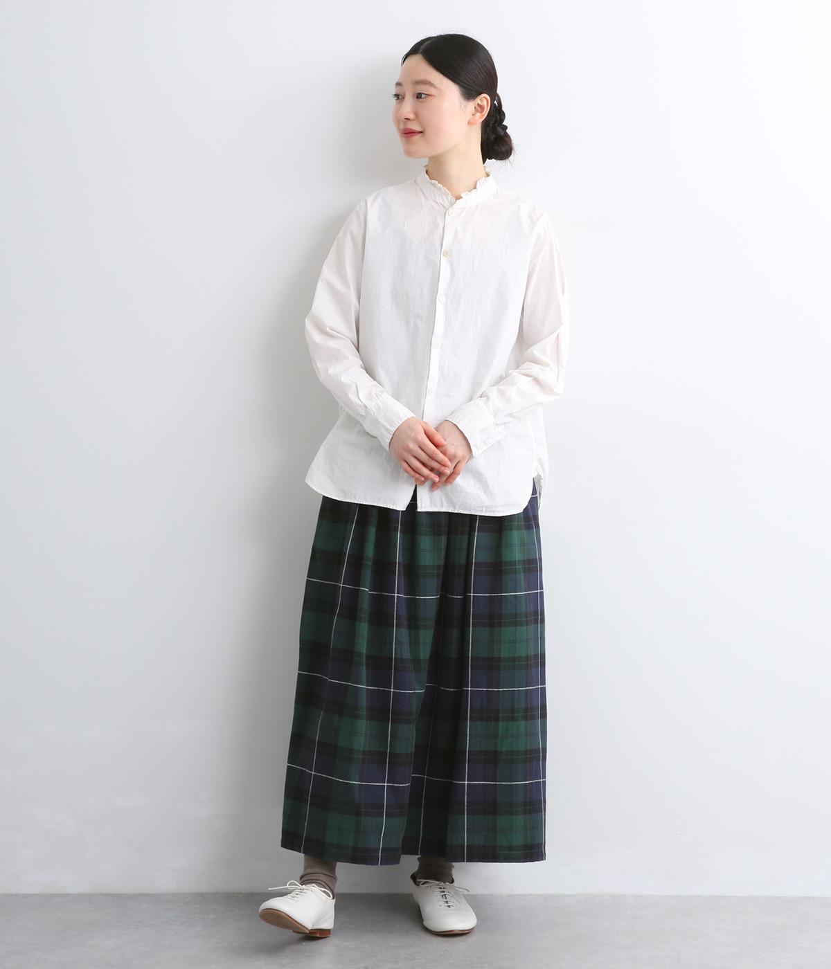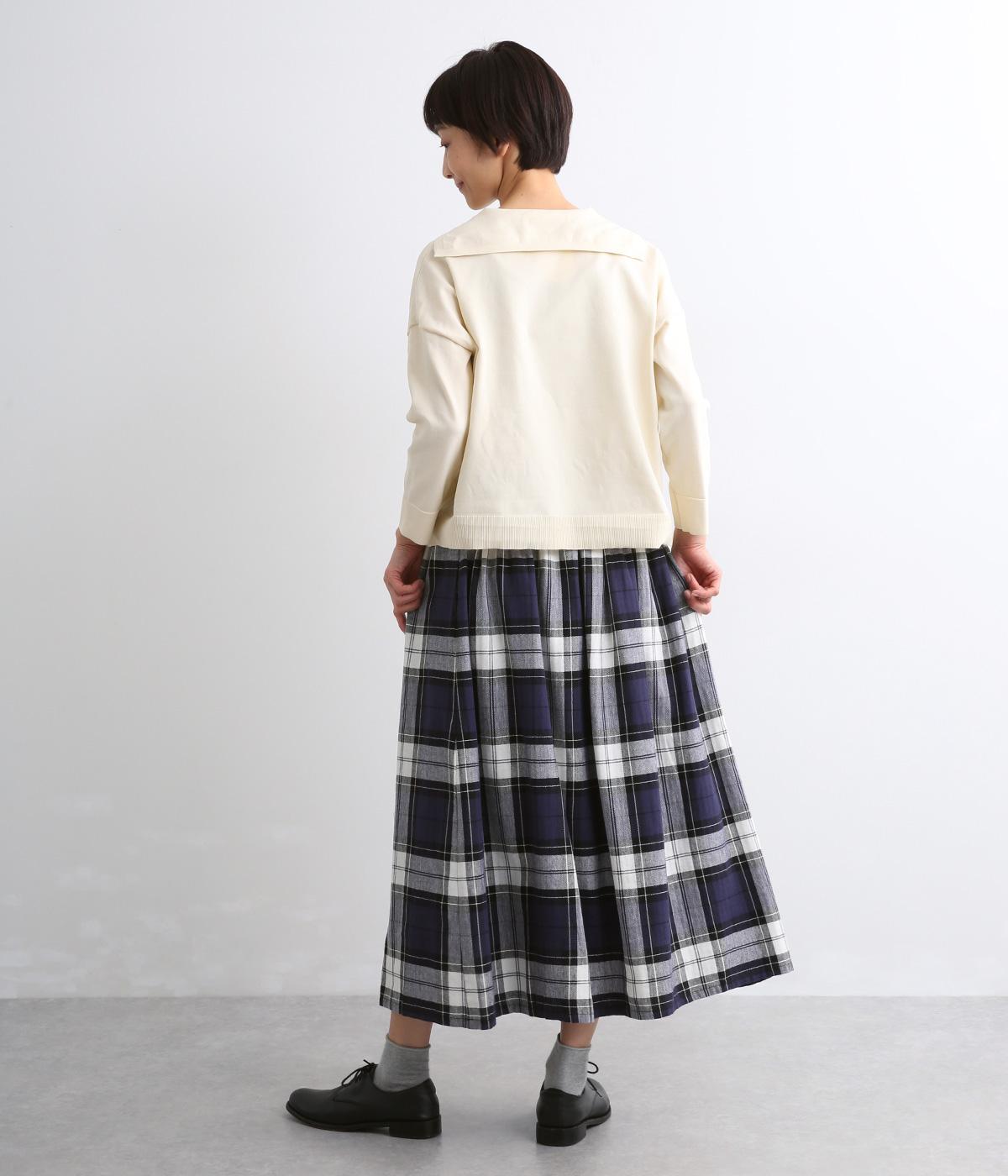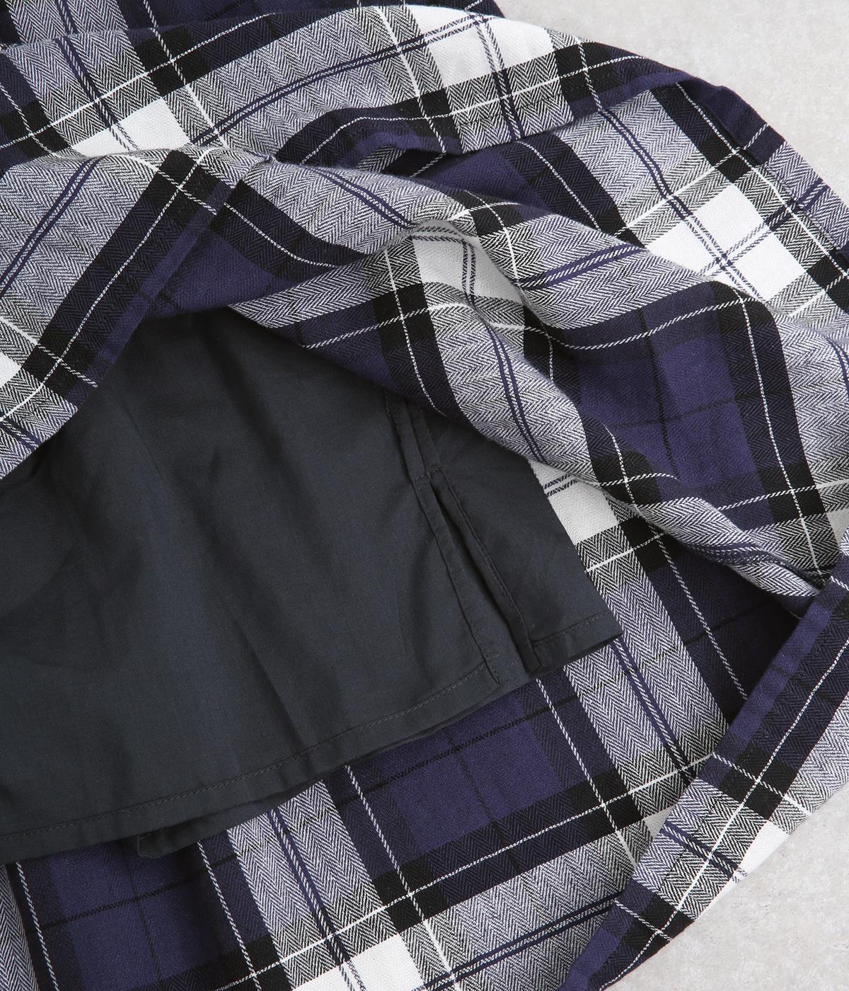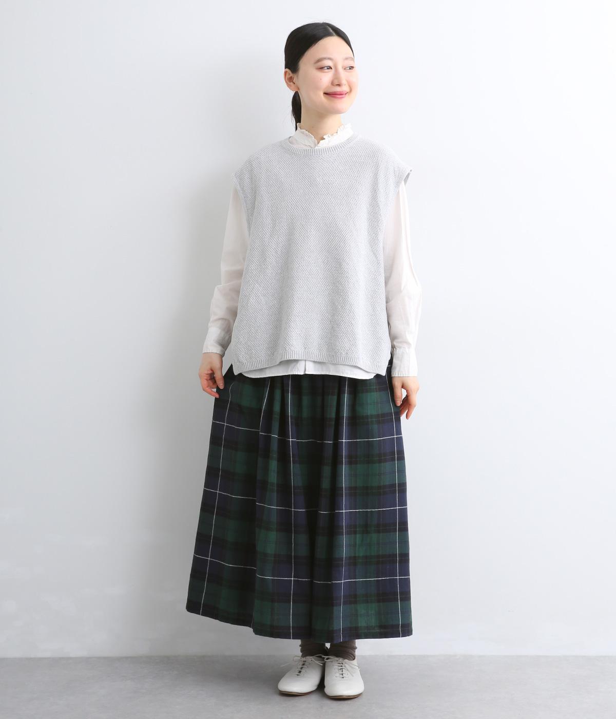 手持ちのトップスに合わせるだけでトラッドスタイルが完成するチェック柄スカート。ほどよくゆとりを持たせながらもすっきりとタテラインを感じさせるシルエットが大人顔。ウエストはオールゴム&内紐入りでイージー仕様に。