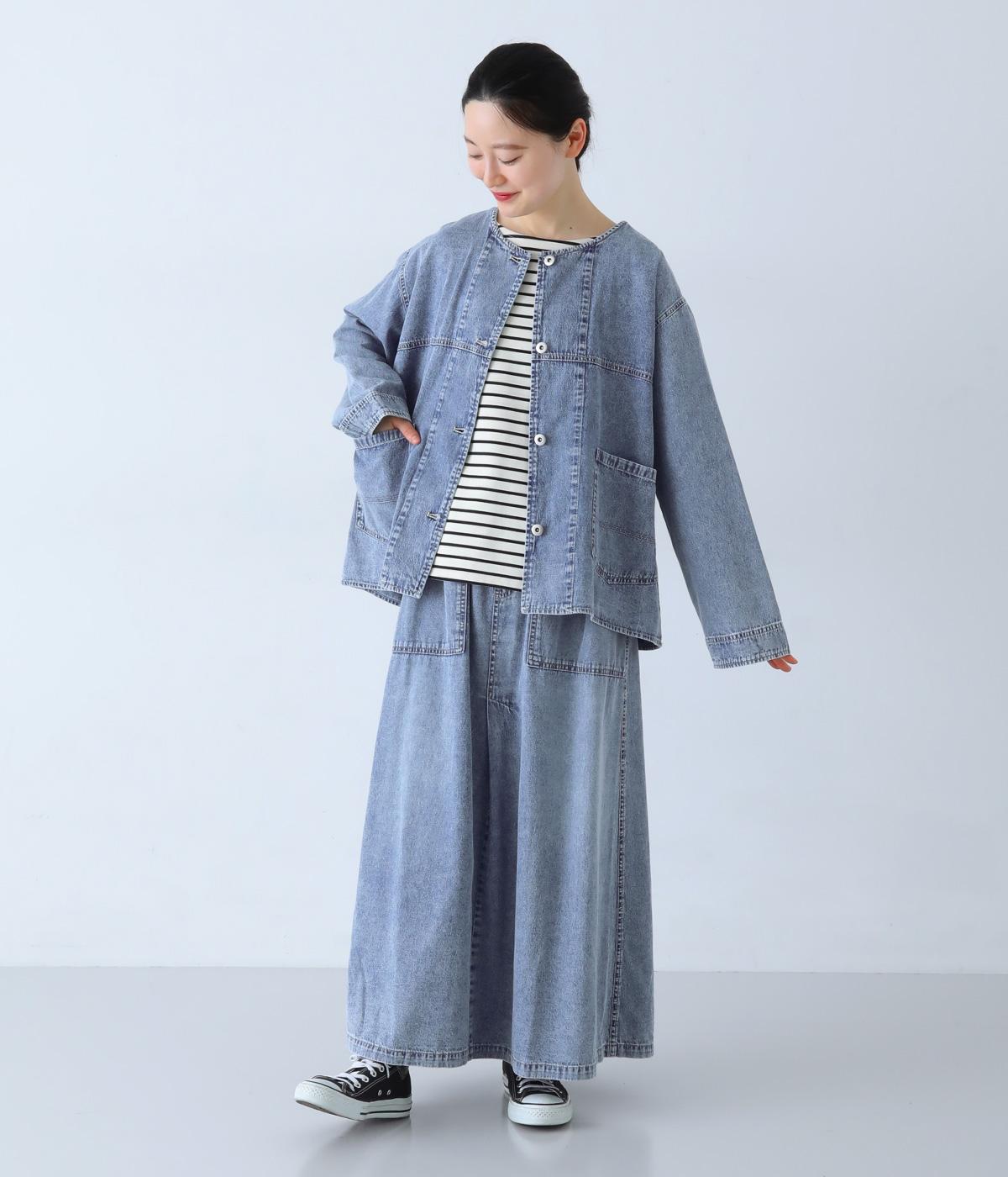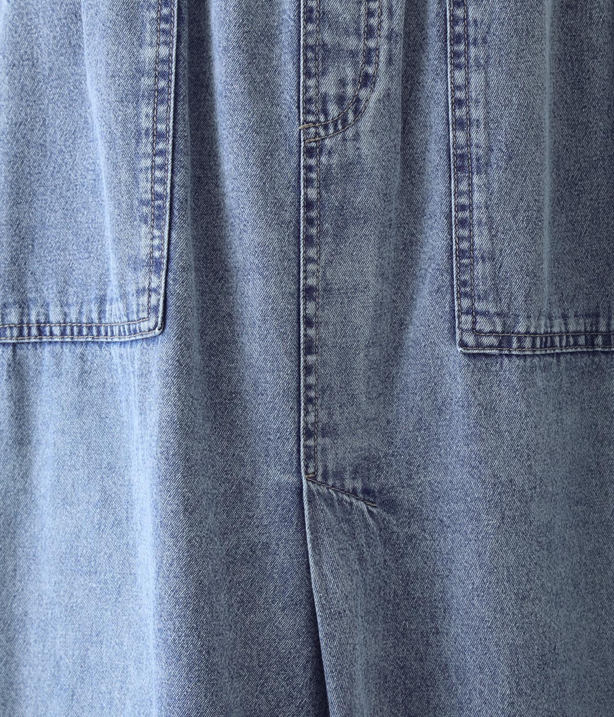 やわらかなコットンデニム素材を使用しています。デニムの風合いはそのままに、とても軽くて薄手の生地なのでデイリーに着まわしできます。