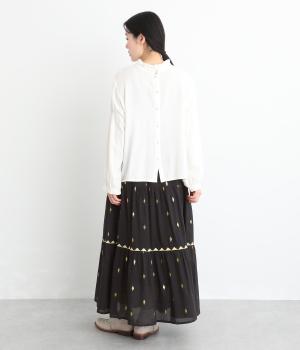 ふんわりとやわらかなコットンベースの生地に、キラリと輝く金糸を織り込み、ナチュラルな雰囲気の中に上品さを添えました。着るたびに風合いの変化を楽しめる素材です。