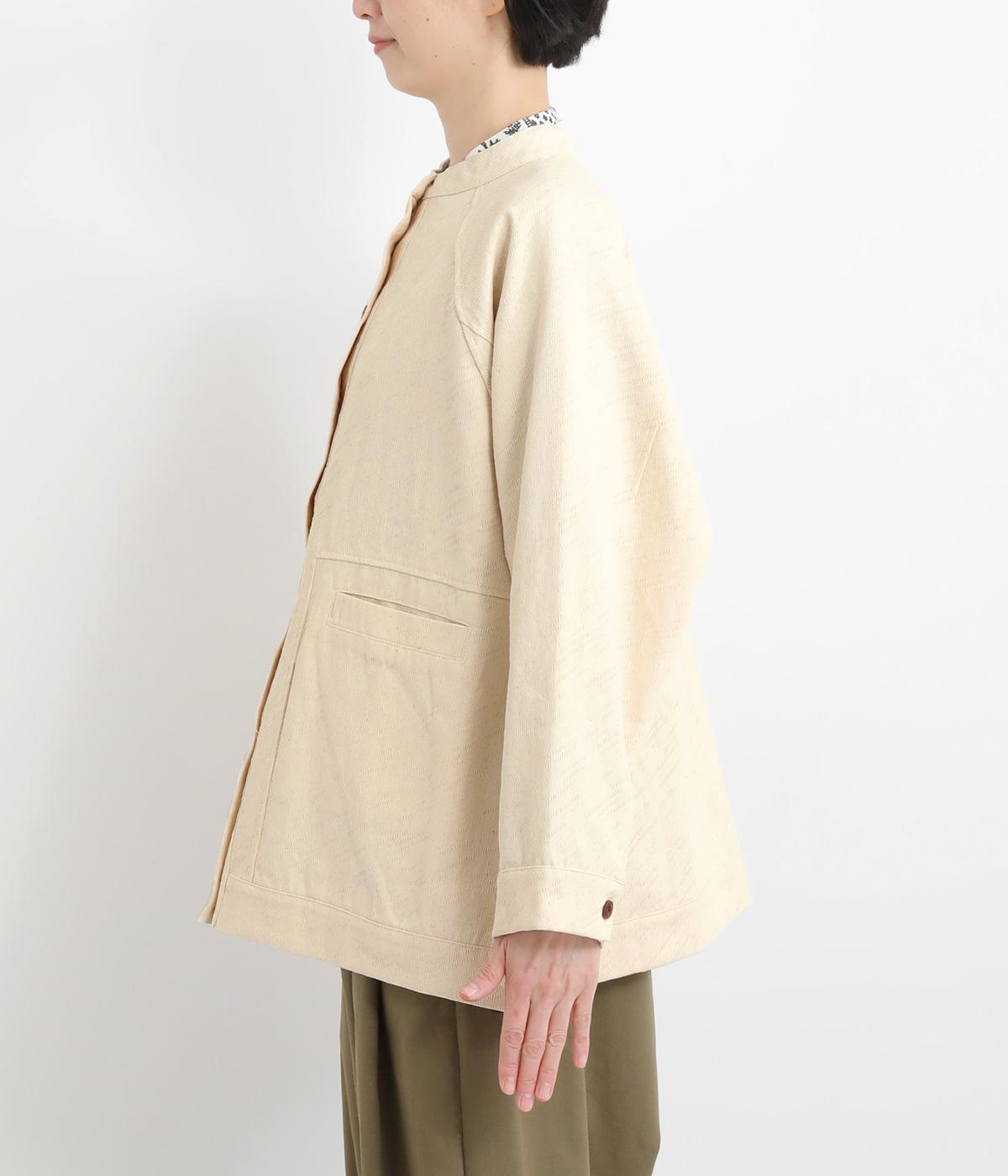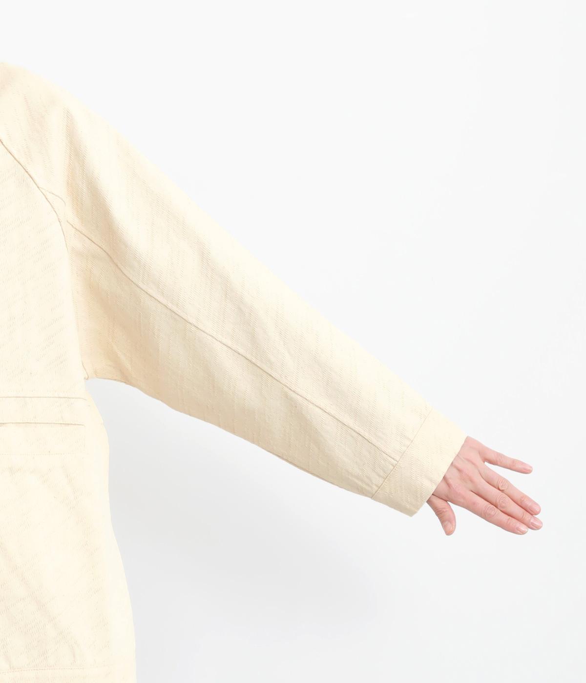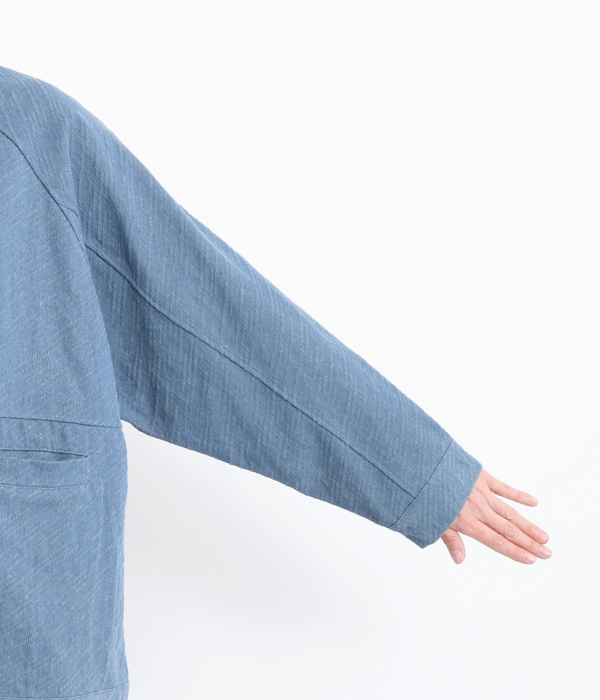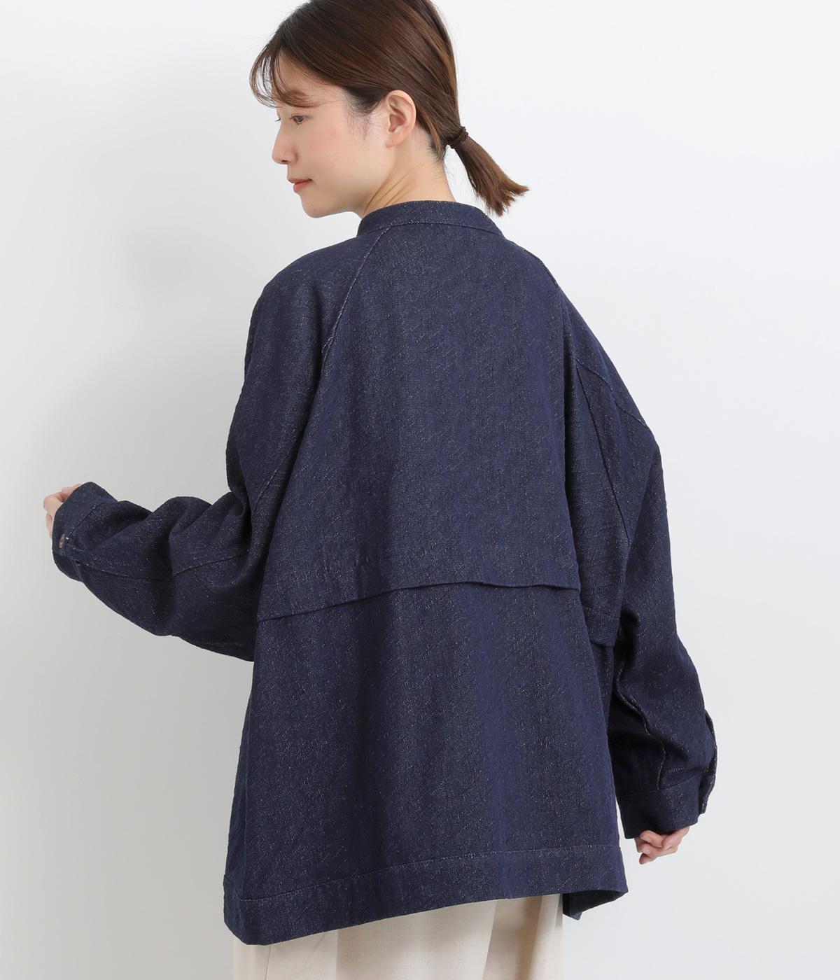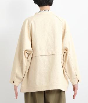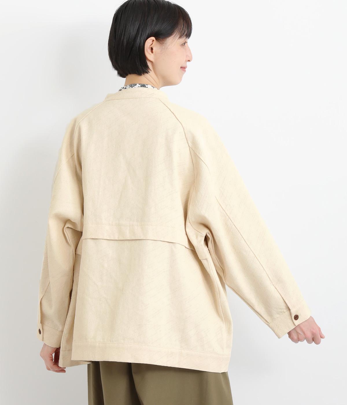 ニュアンスのある表情で、カジュアルにもきれいめにも着こなせるジャケットです。ゆとりのある仕立てで厚手のインナーとも重ねやすく、ロングシーズン活躍します。背中に切り替えをほどこし、うしろ姿にもさりげないアクセントを添えました。