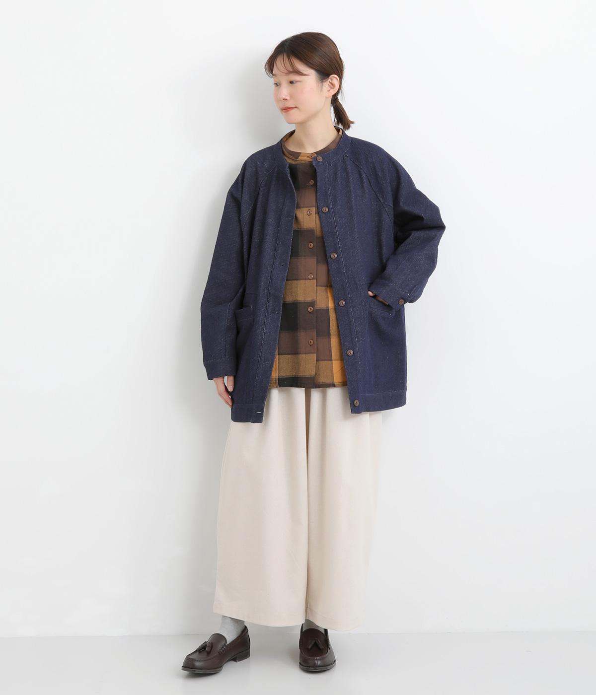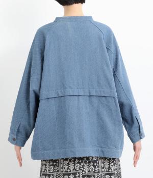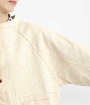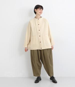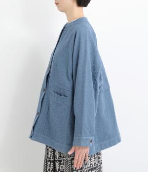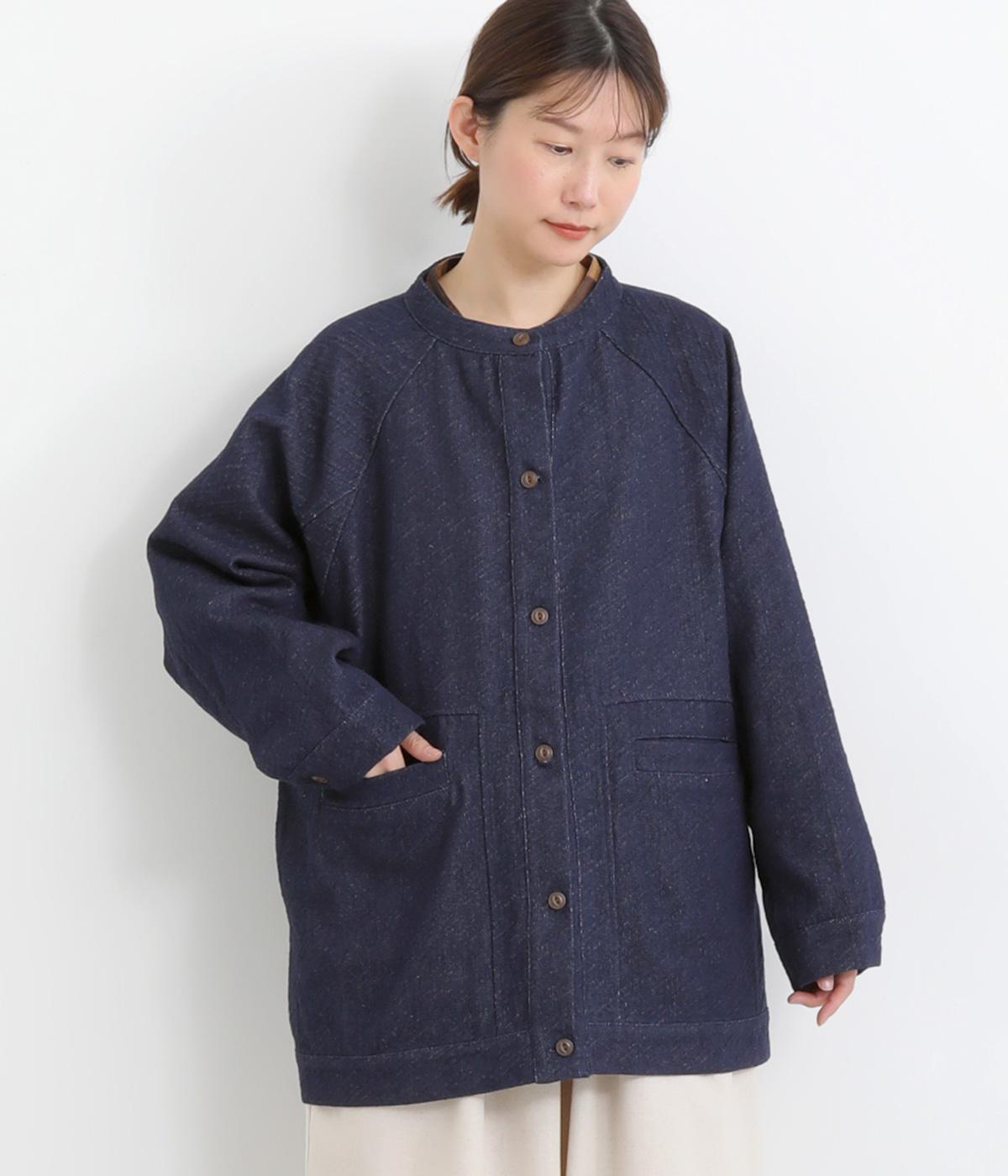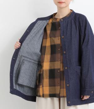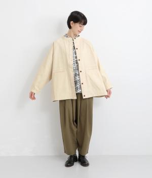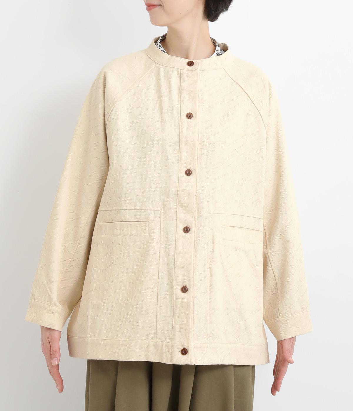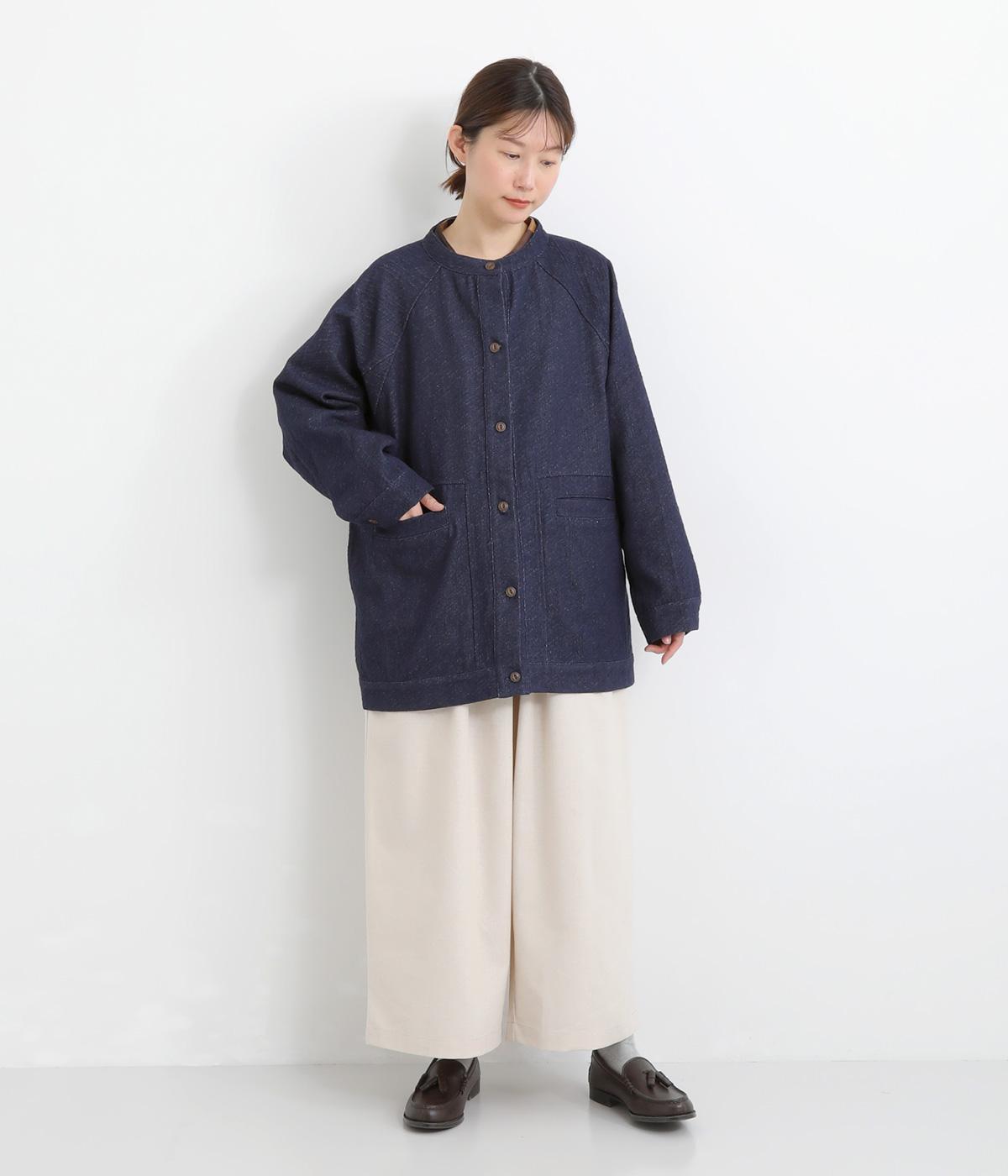 ニュアンスのある表情で、カジュアルにもきれいめにも着こなせるジャケットです。ゆとりのある仕立てで厚手のインナーとも重ねやすく、ロングシーズン活躍します。背中に切り替えをほどこし、うしろ姿にもさりげないアクセントを添えました。