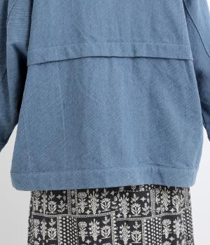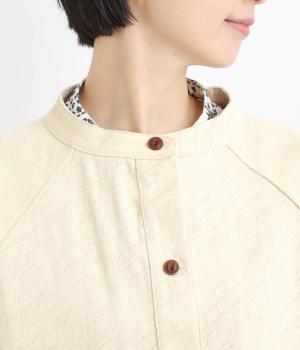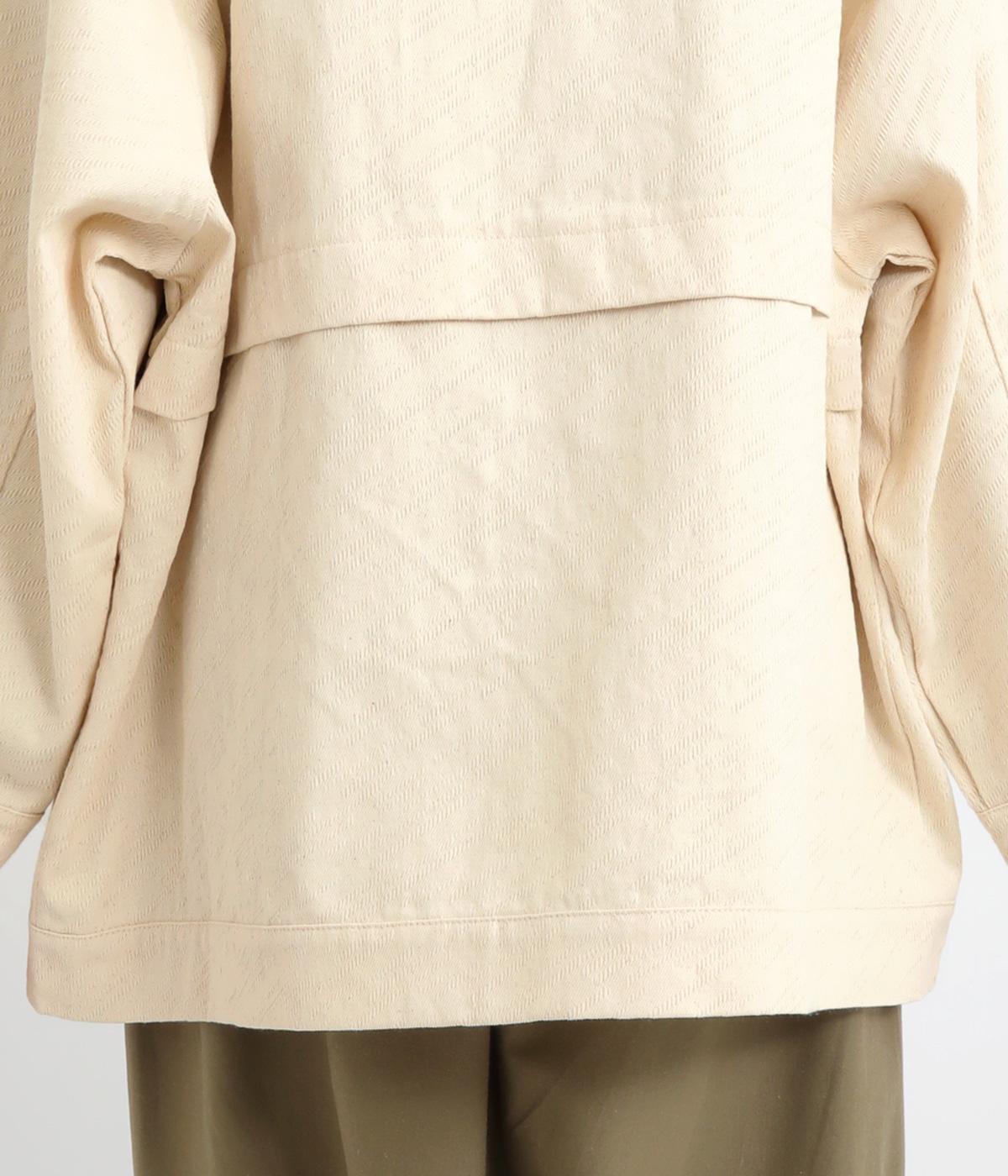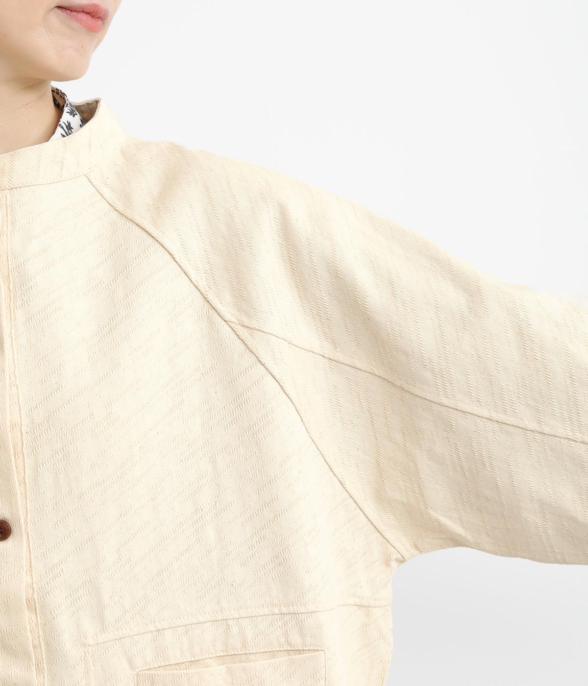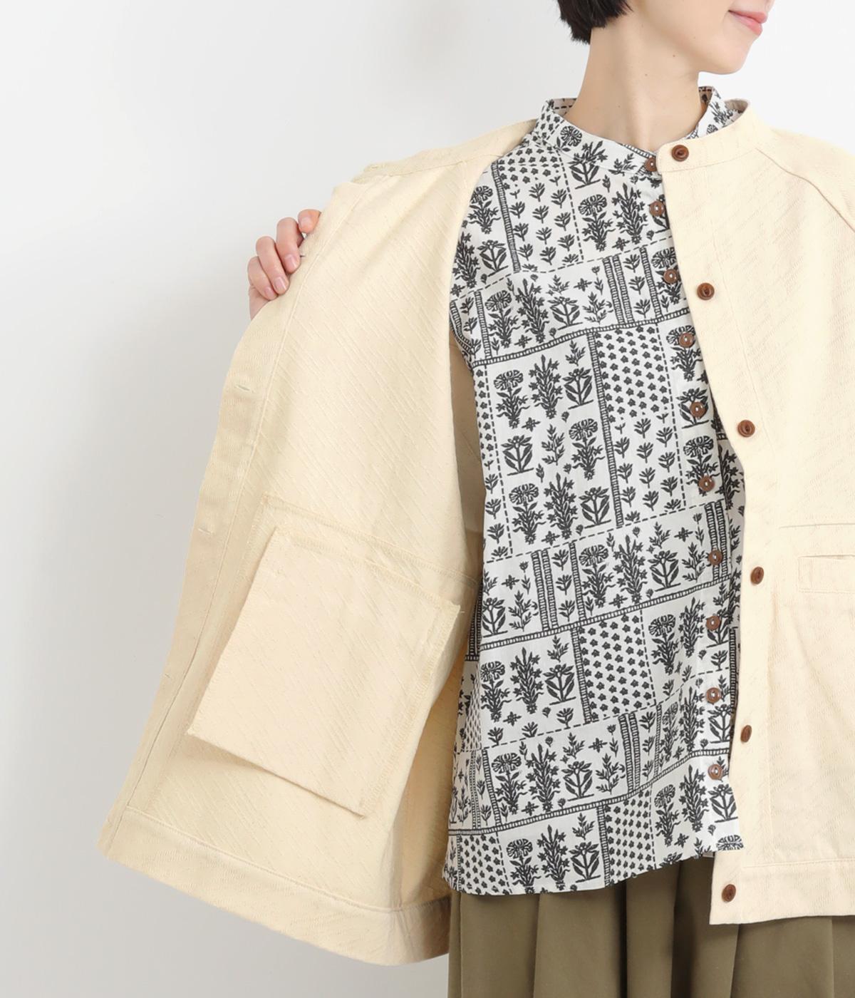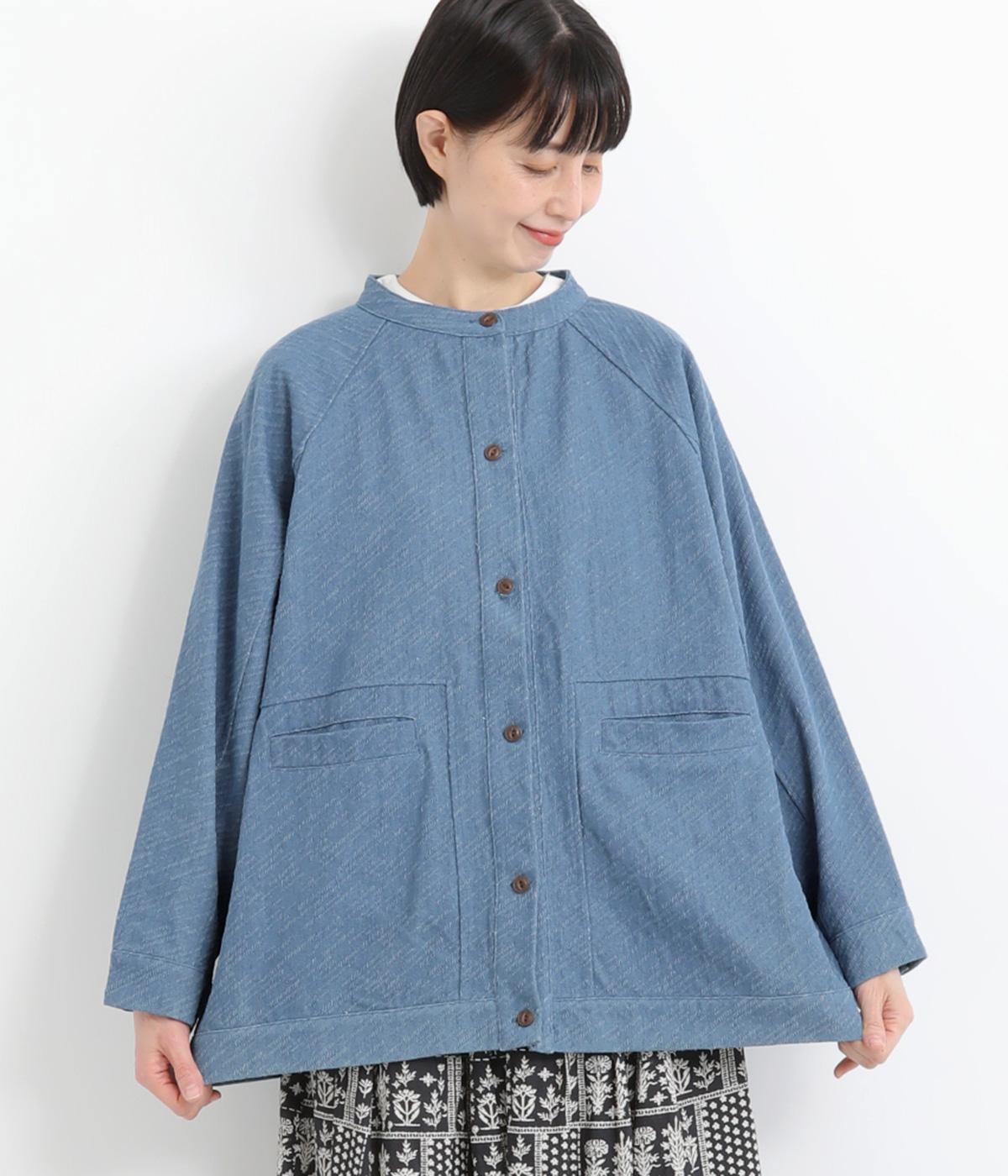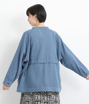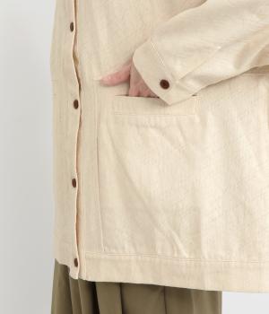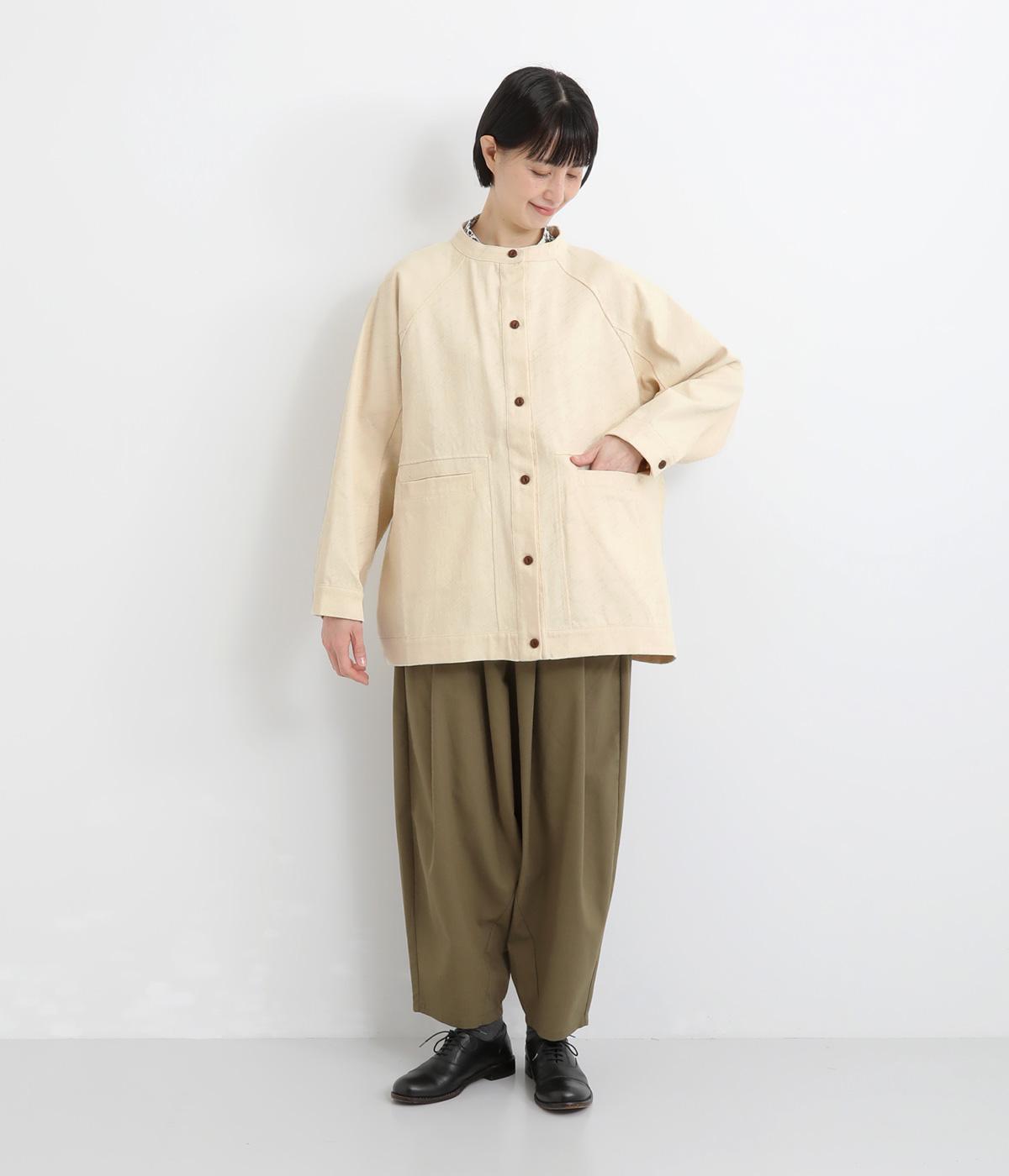 ニュアンスのある表情で、カジュアルにもきれいめにも着こなせるジャケットです。ゆとりのある仕立てで厚手のインナーとも重ねやすく、ロングシーズン活躍します。背中に切り替えをほどこし、うしろ姿にもさりげないアクセントを添えました。