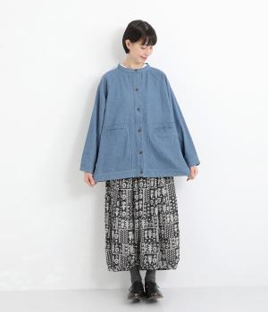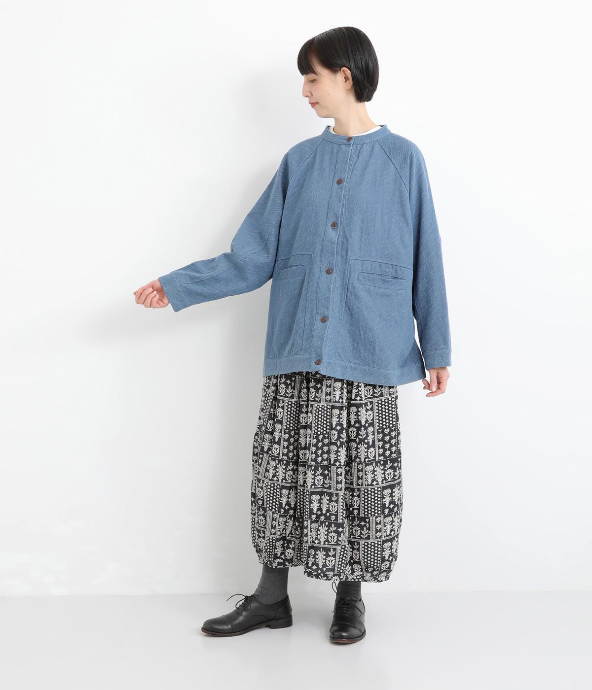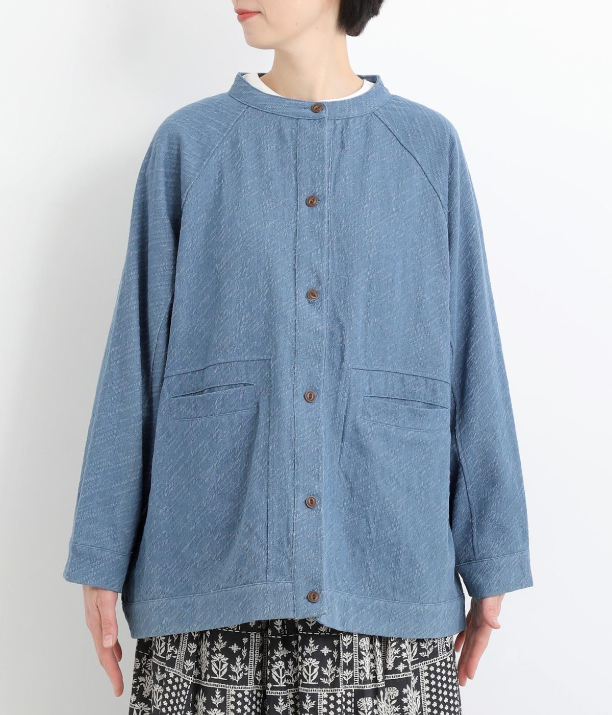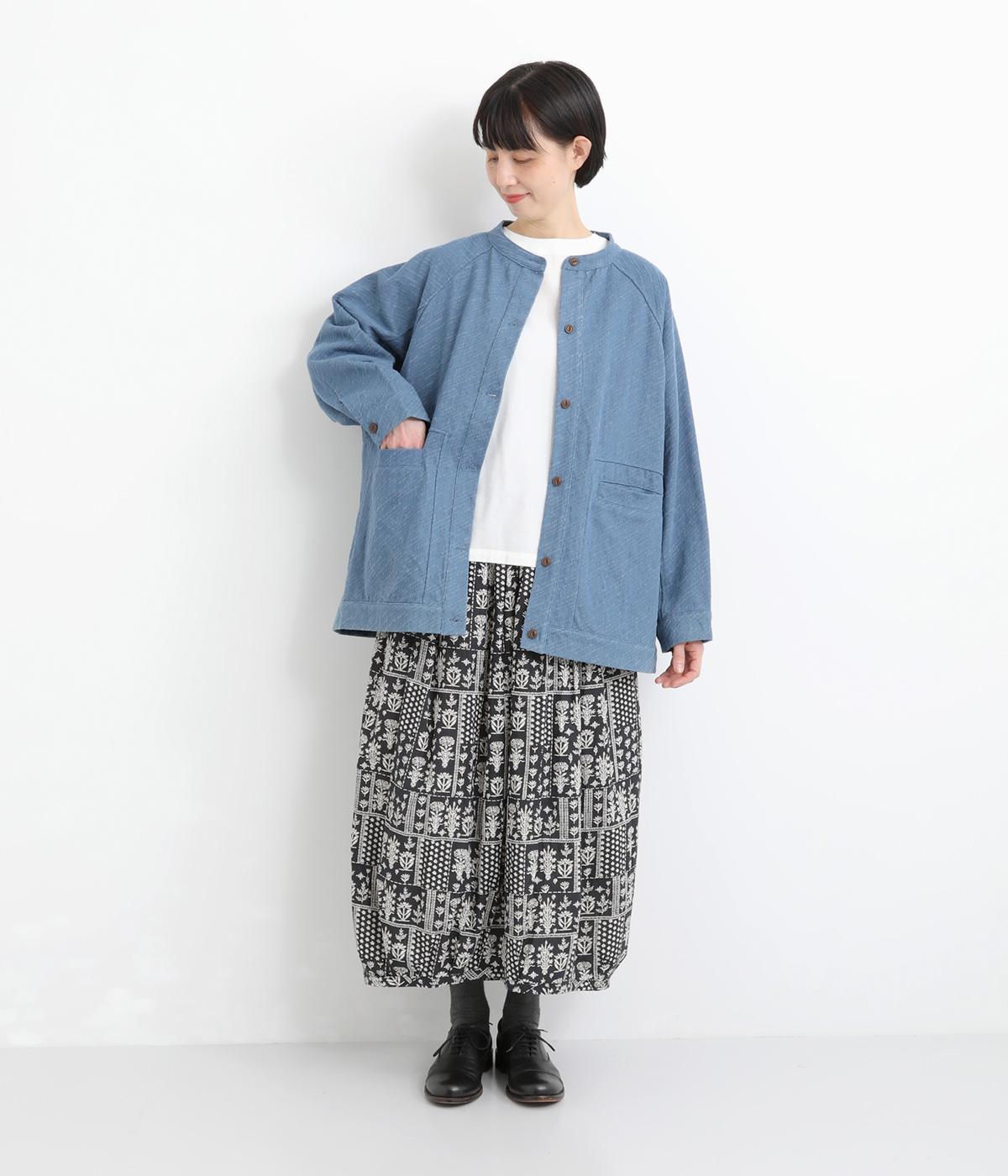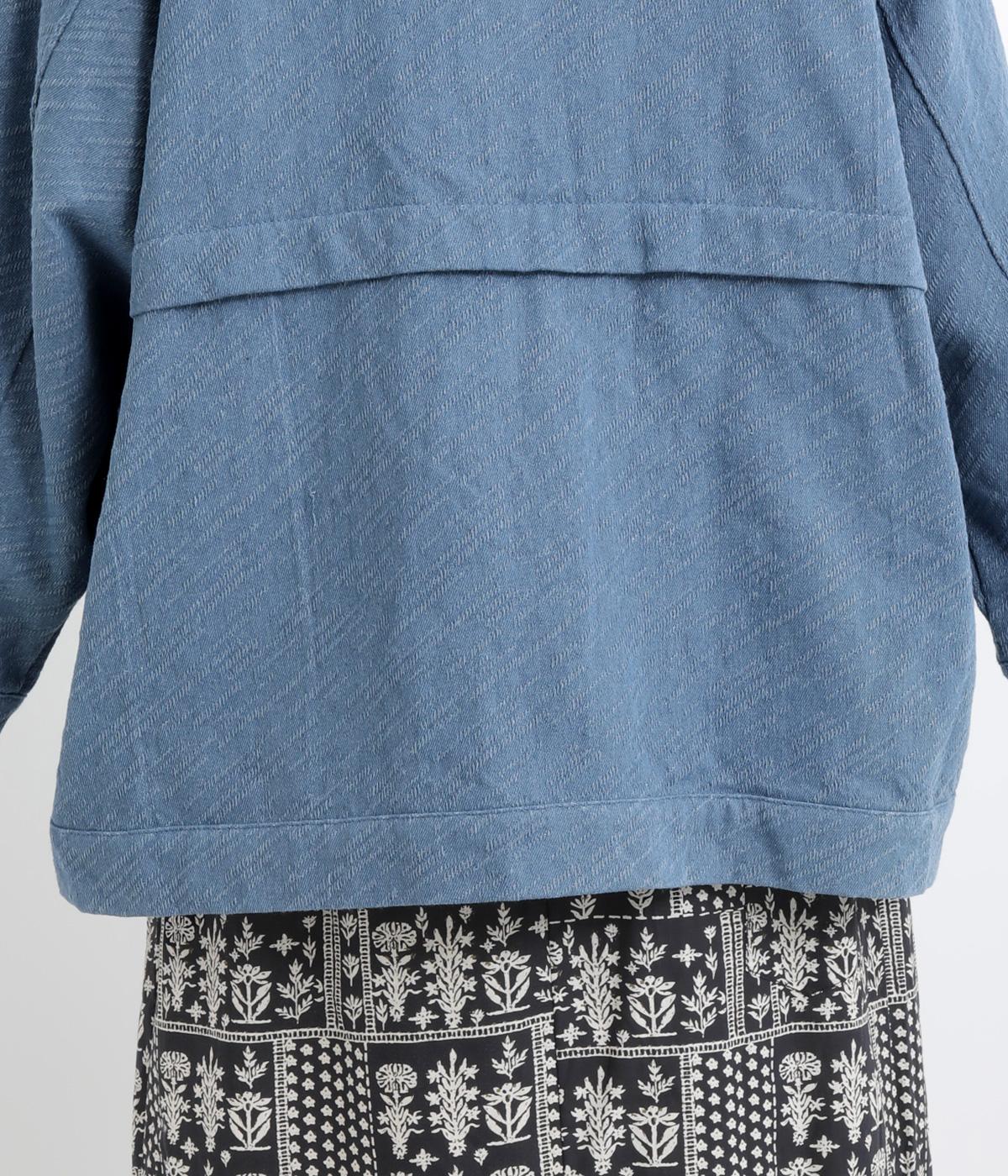 織り柄がほのかに浮かび上がるジャカードデニムです。やわらかな肌なじみのコットンデニムで、730gと軽量に仕立てました。カジュアル感をほどよく抑えた落ち着きのある雰囲気です。