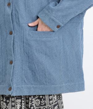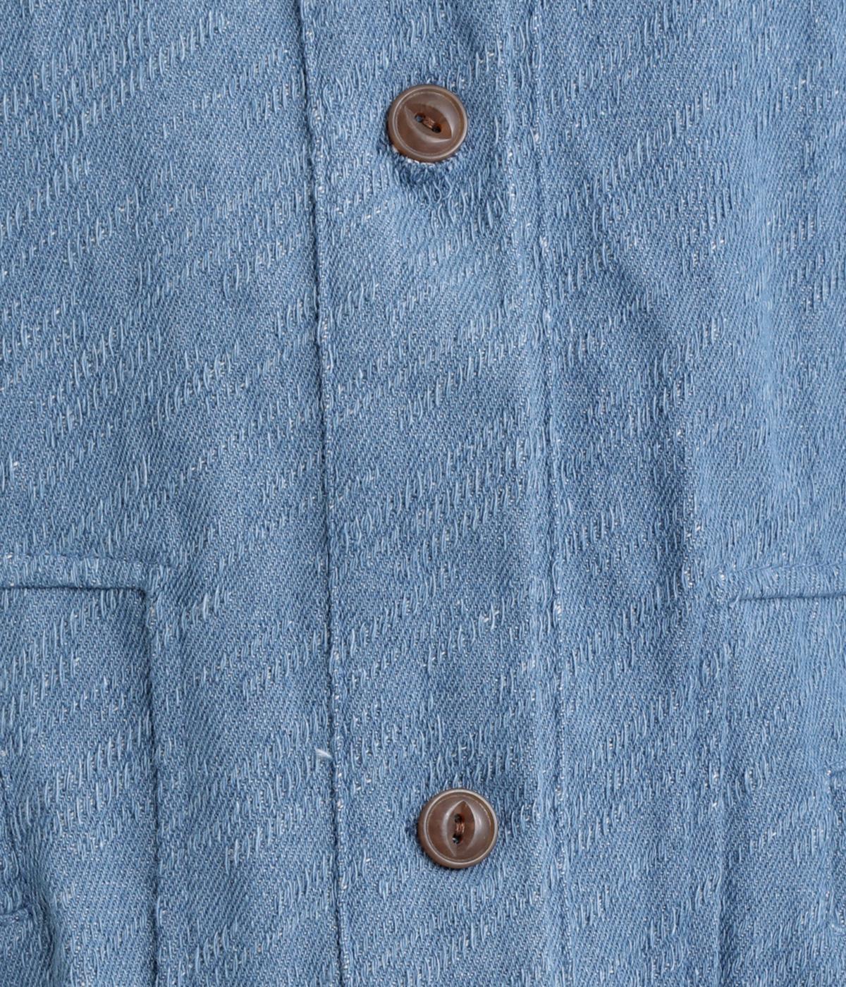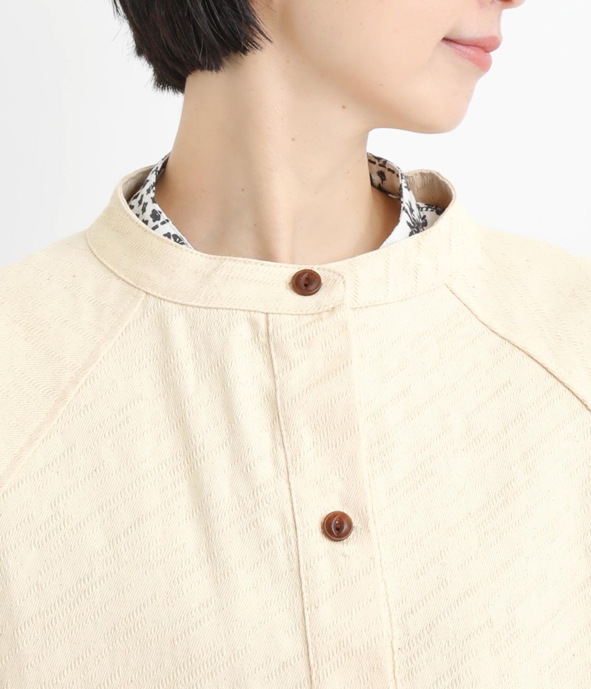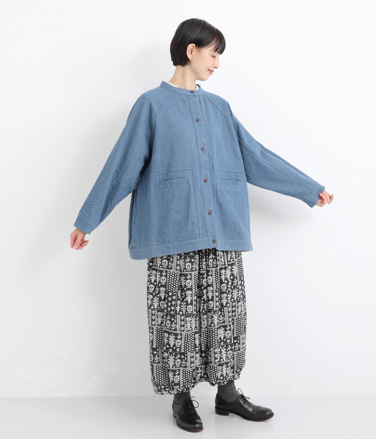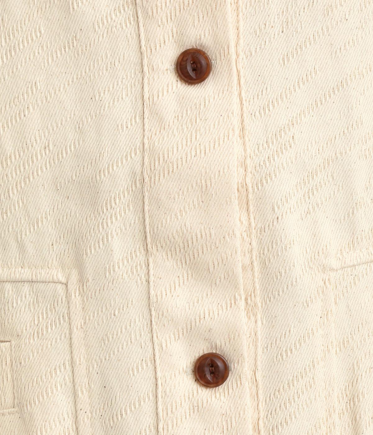 織り柄がほのかに浮かび上がるジャカードデニムです。やわらかな肌なじみのコットンデニムで、730gと軽量に仕立てました。カジュアル感をほどよく抑えた落ち着きのある雰囲気です。