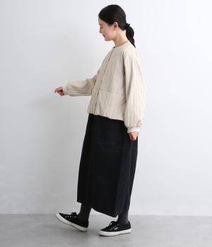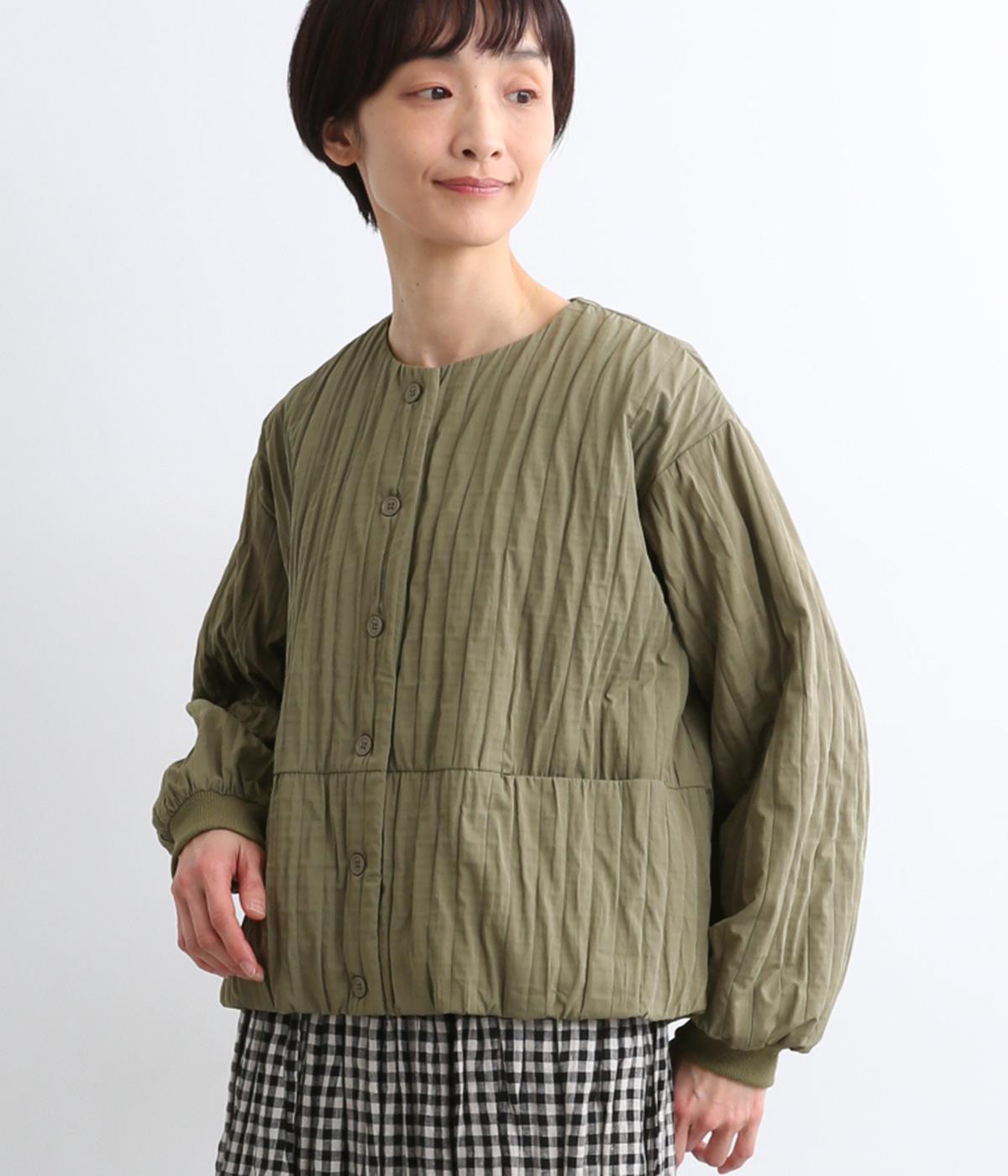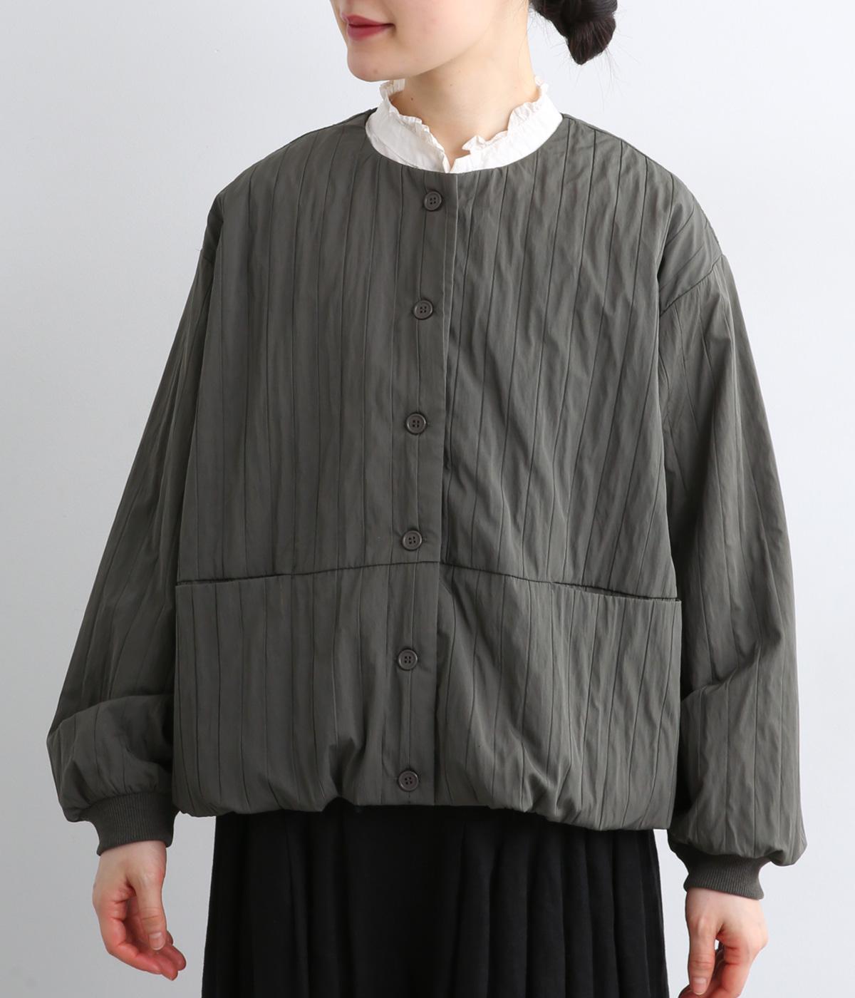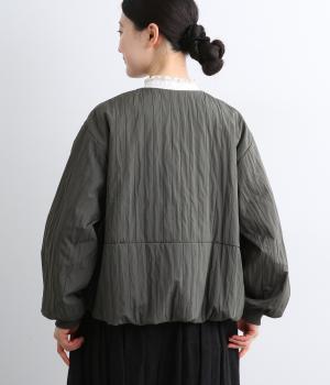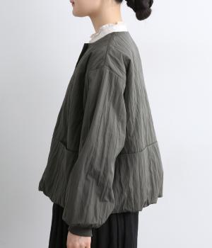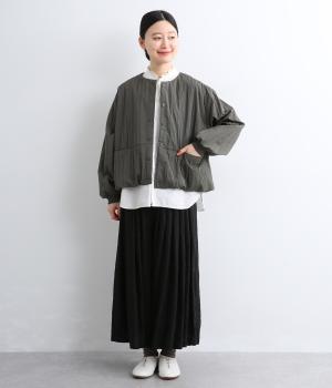 身頃のみ裏地をつけてヘムラインをふっくらさせたバルーンジャケット。袖もリブで引き締めてほどよく立体感をプラス。すっきりしたノーカラーに控えめなスリットポケットで品よく大人顔に仕上げました。