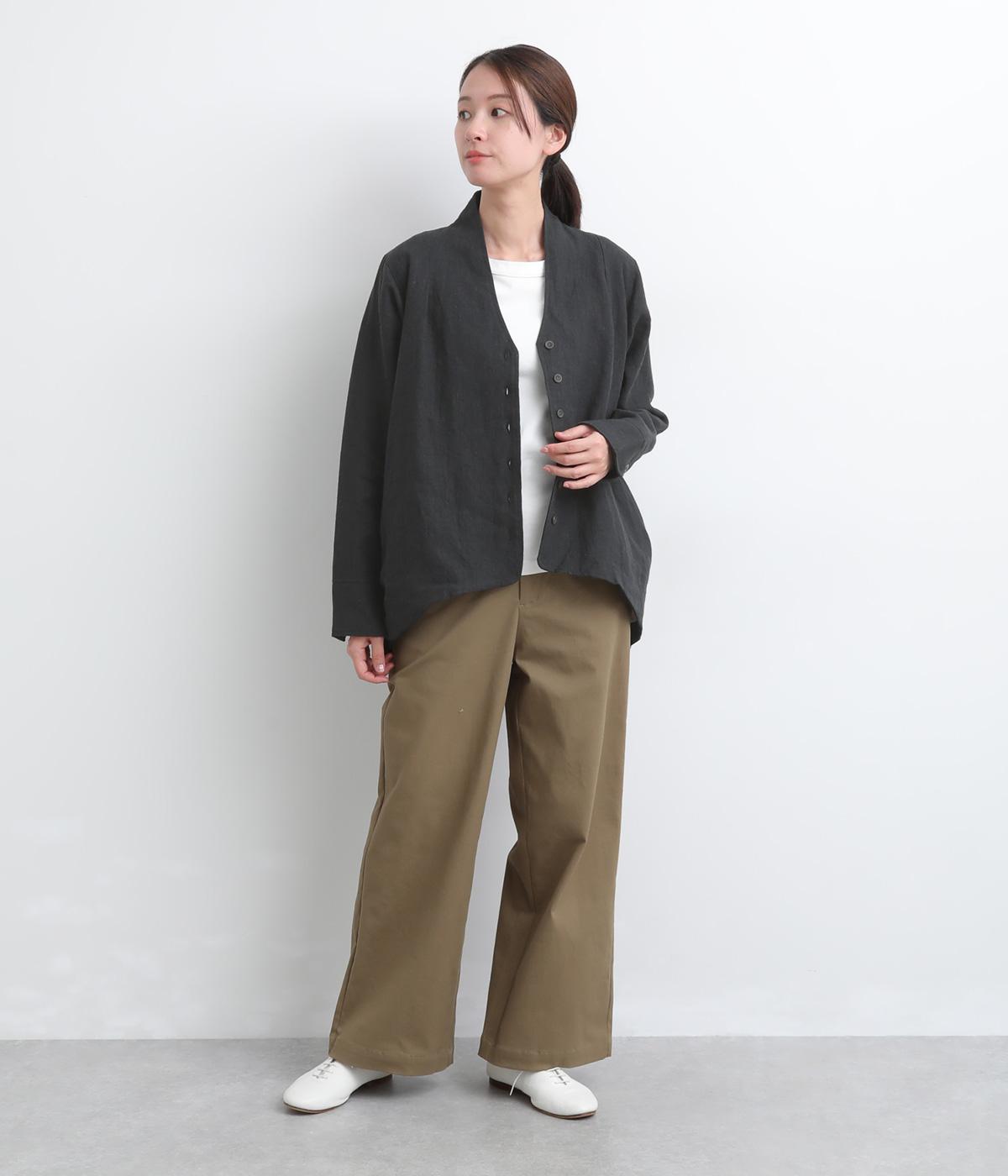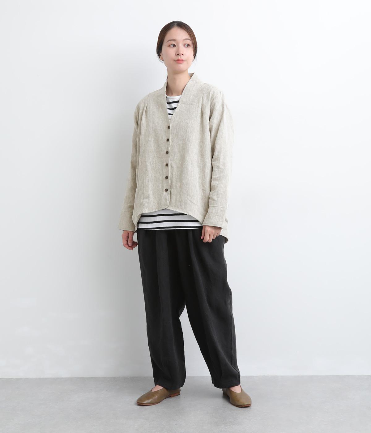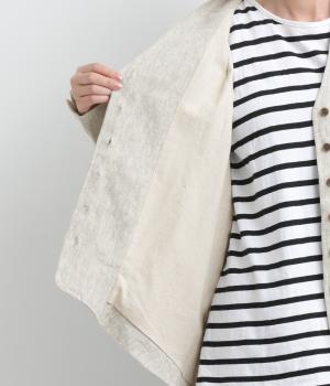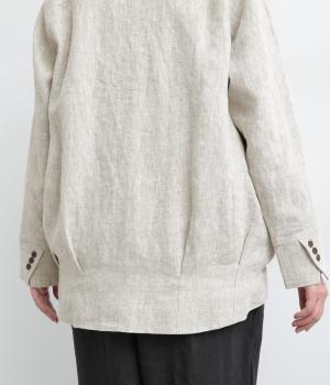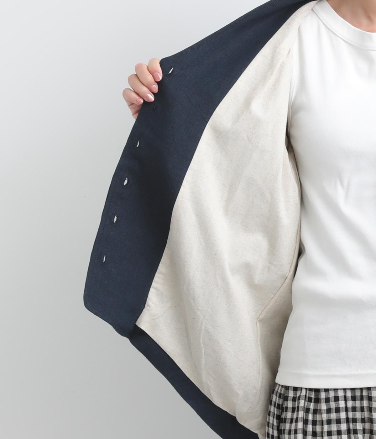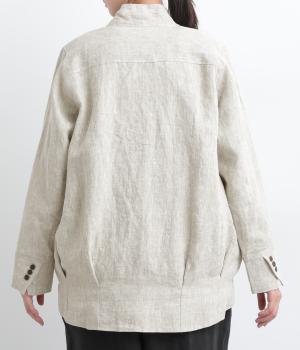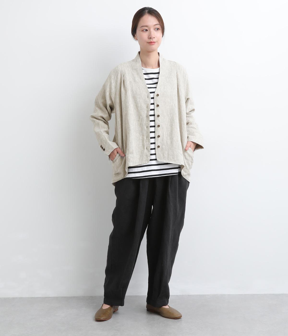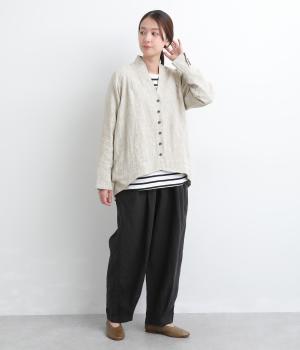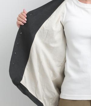 ドライタッチが心地よい、ざっくりとしたナチュラルな質感が魅力のリネン仕立て。ほどよくコシがあり、着るほどに肌になじむ経年変化も楽しみ。綿麻の裏地つき。
