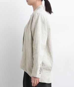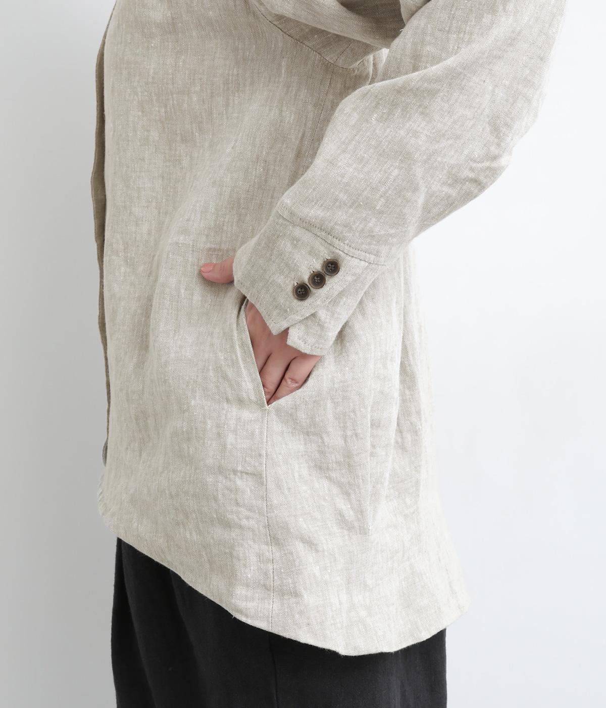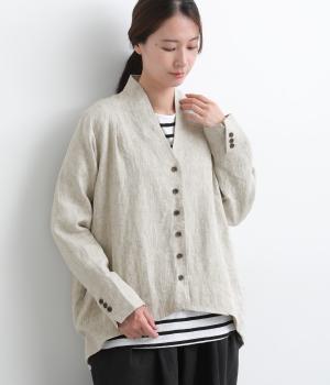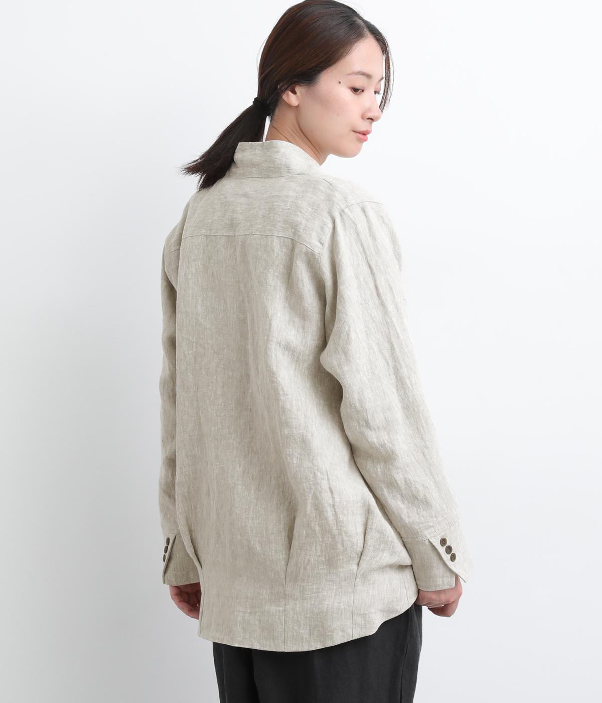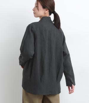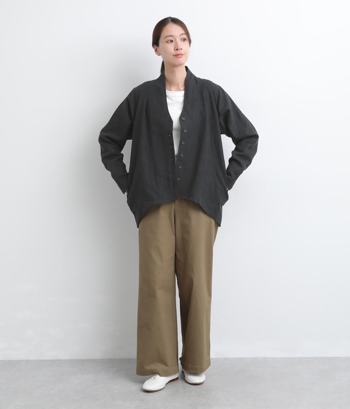 ドライタッチが心地よい、ざっくりとしたナチュラルな質感が魅力のリネン仕立て。ほどよくコシがあり、着るほどに肌になじむ経年変化も楽しみ。綿麻の裏地つき。