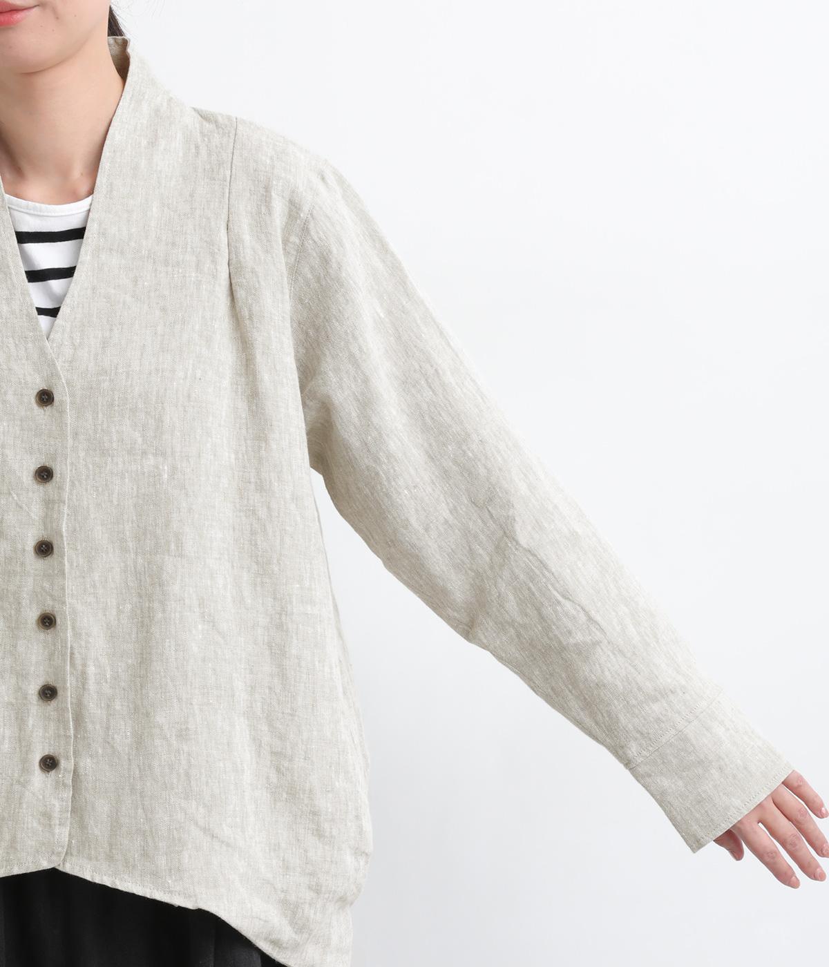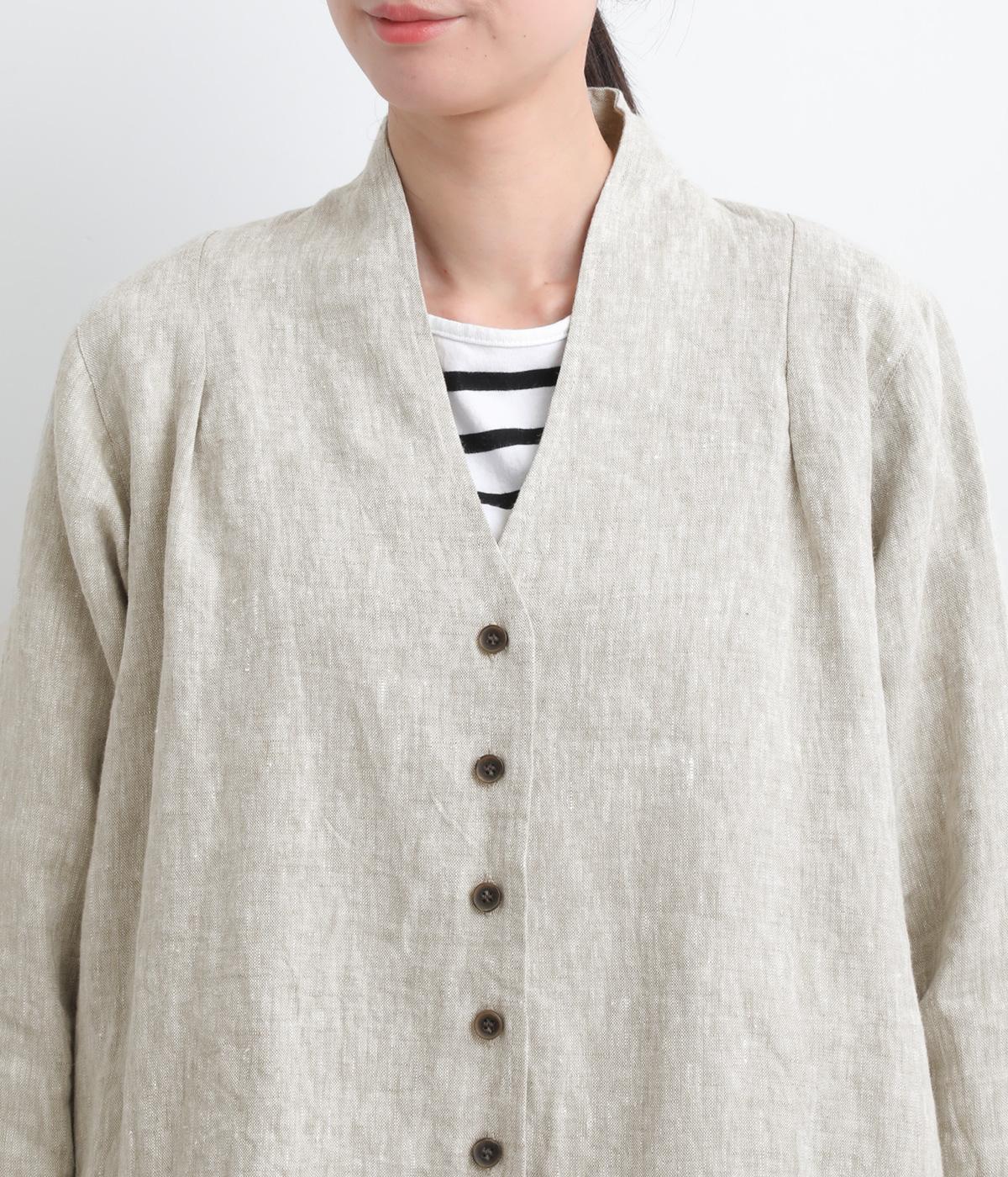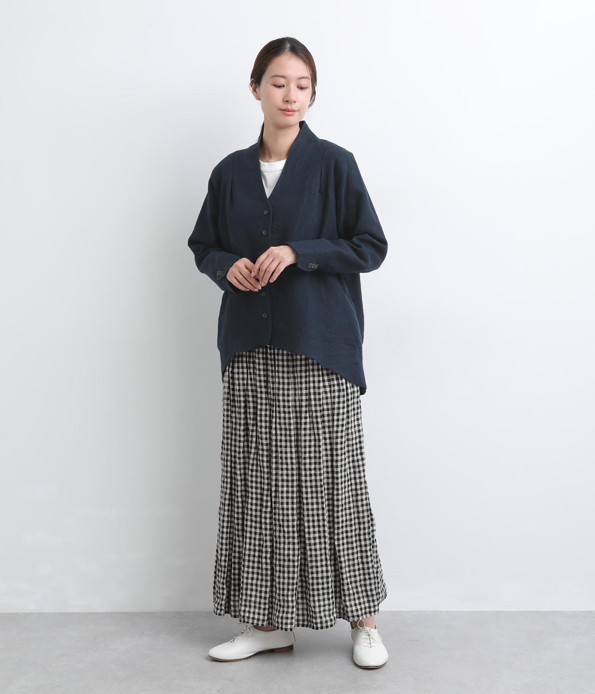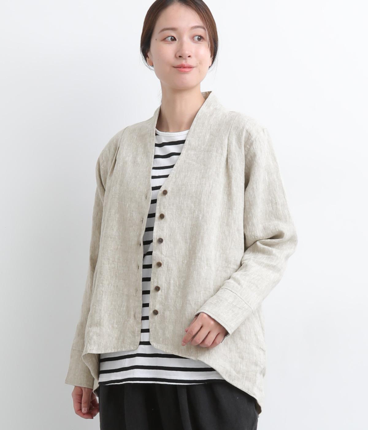 ドライタッチが心地よい、ざっくりとしたナチュラルな質感が魅力のリネン仕立て。ほどよくコシがあり、着るほどに肌になじむ経年変化も楽しみ。綿麻の裏地つき。