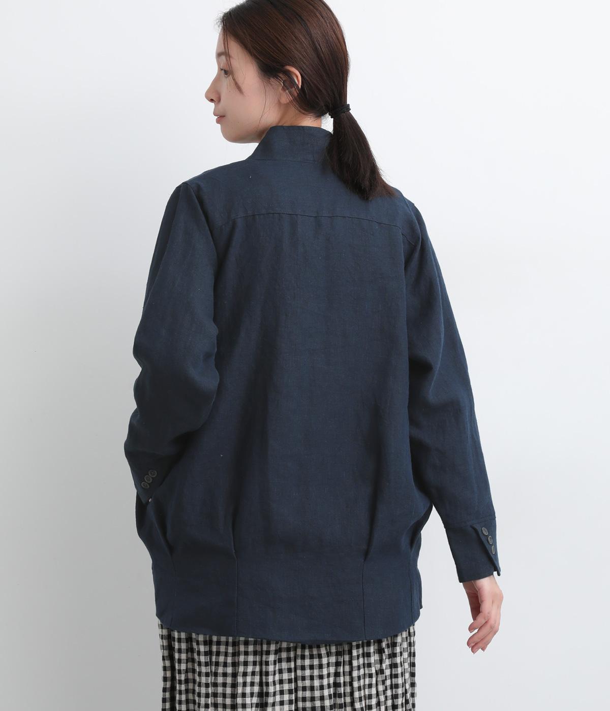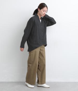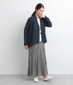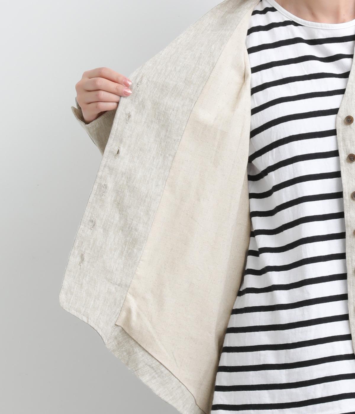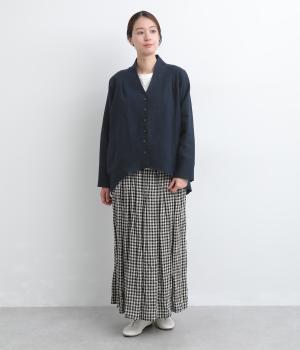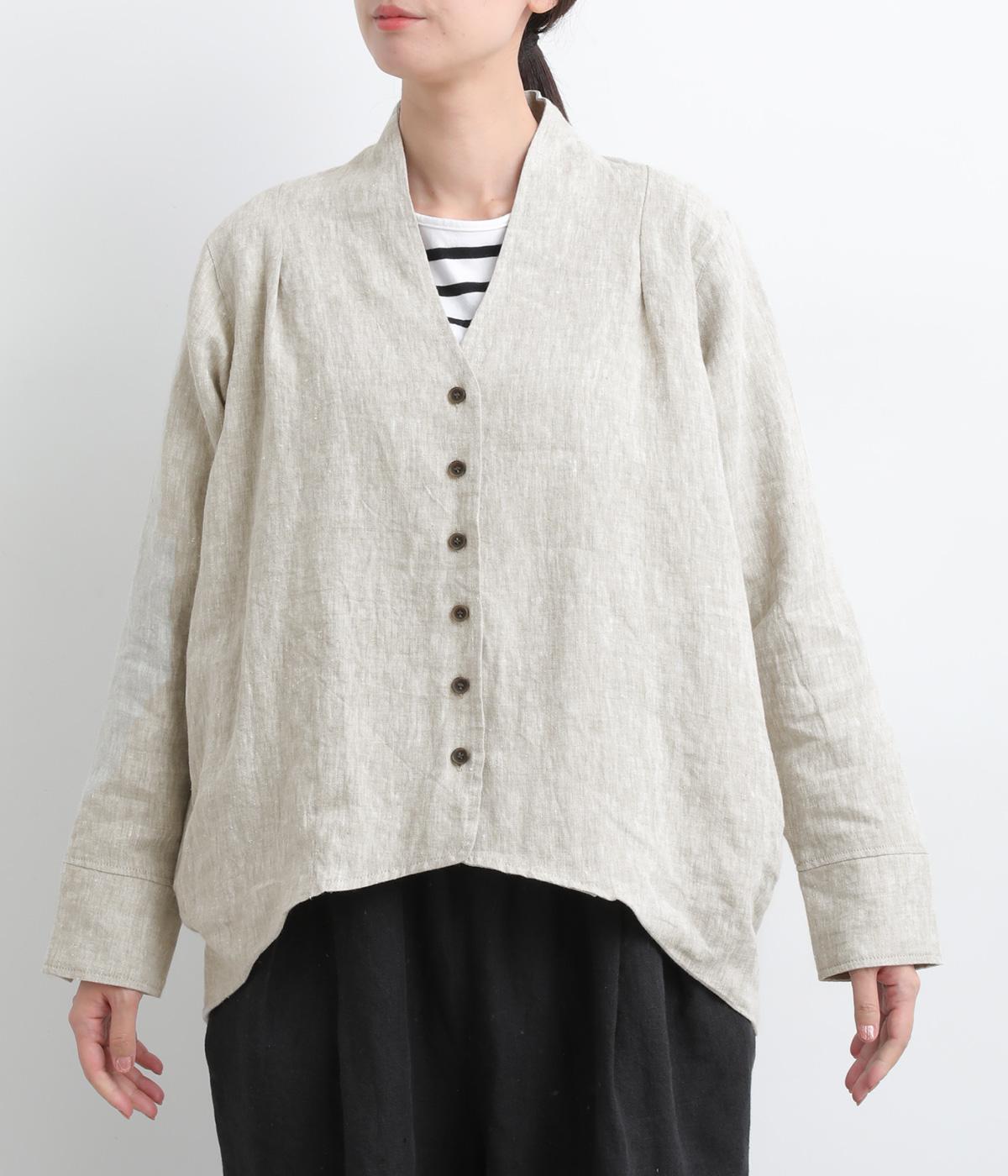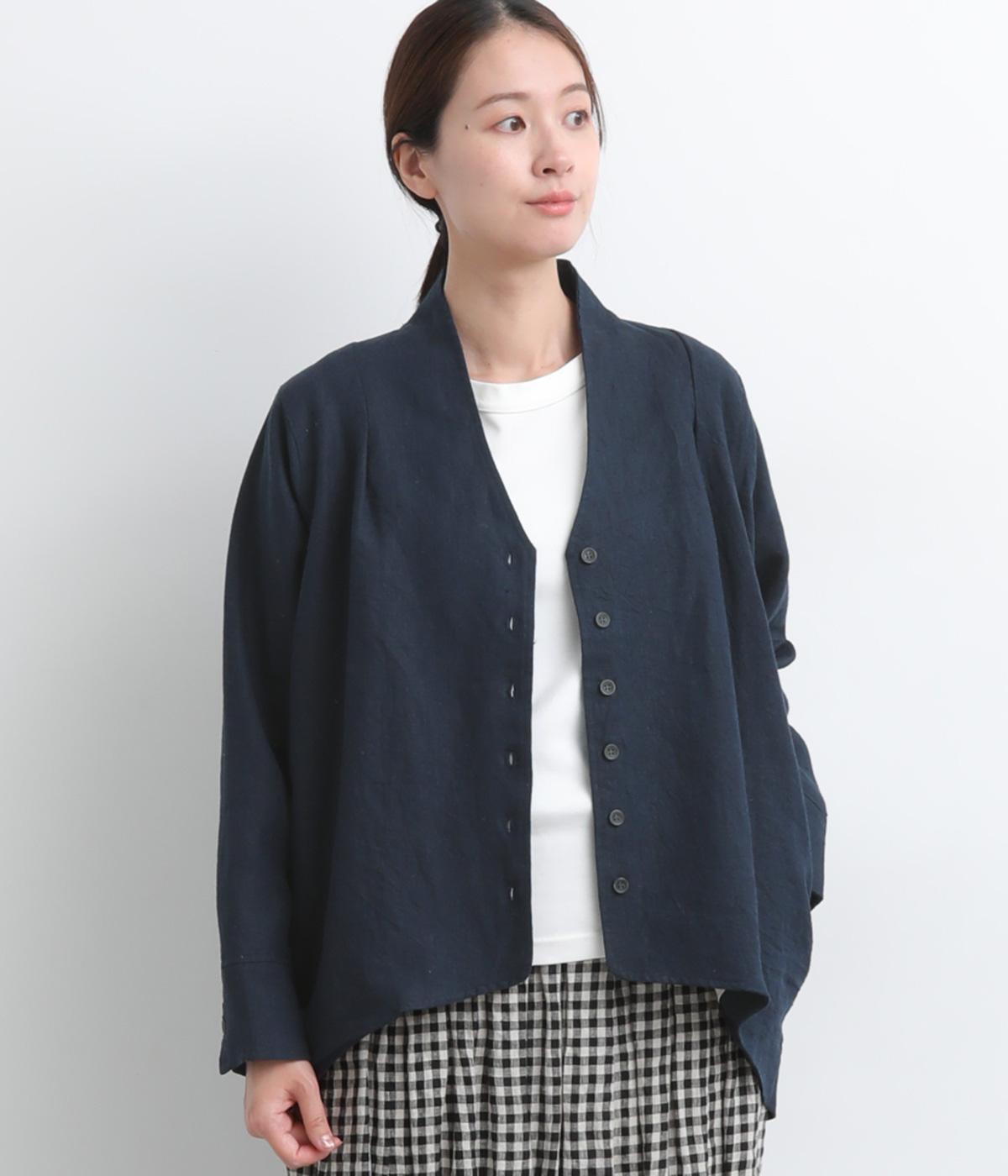 ドライタッチが心地よい、ざっくりとしたナチュラルな質感が魅力のリネン仕立て。ほどよくコシがあり、着るほどに肌になじむ経年変化も楽しみ。綿麻の裏地つき。