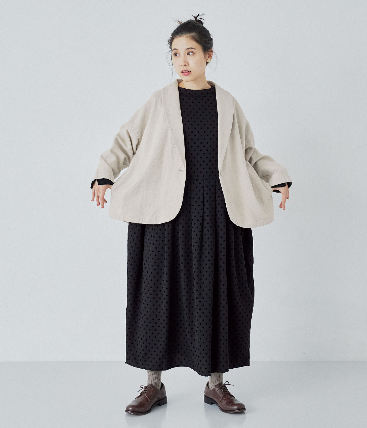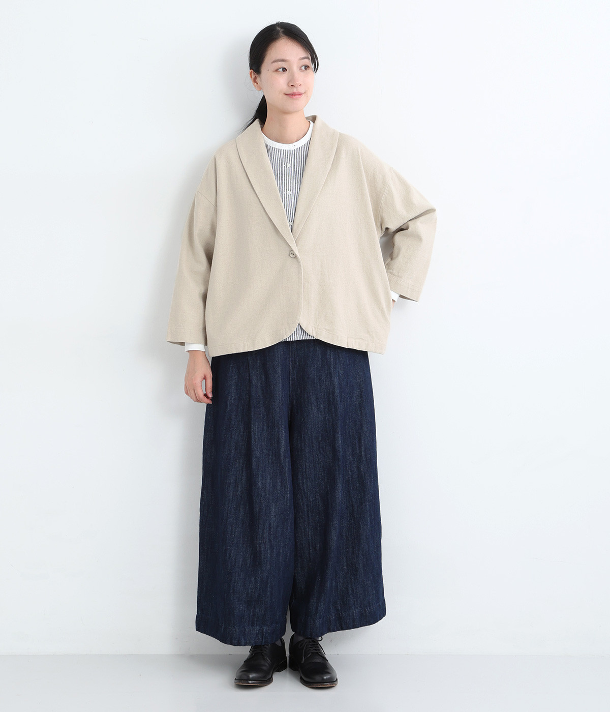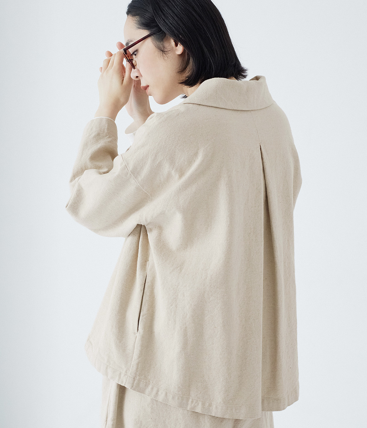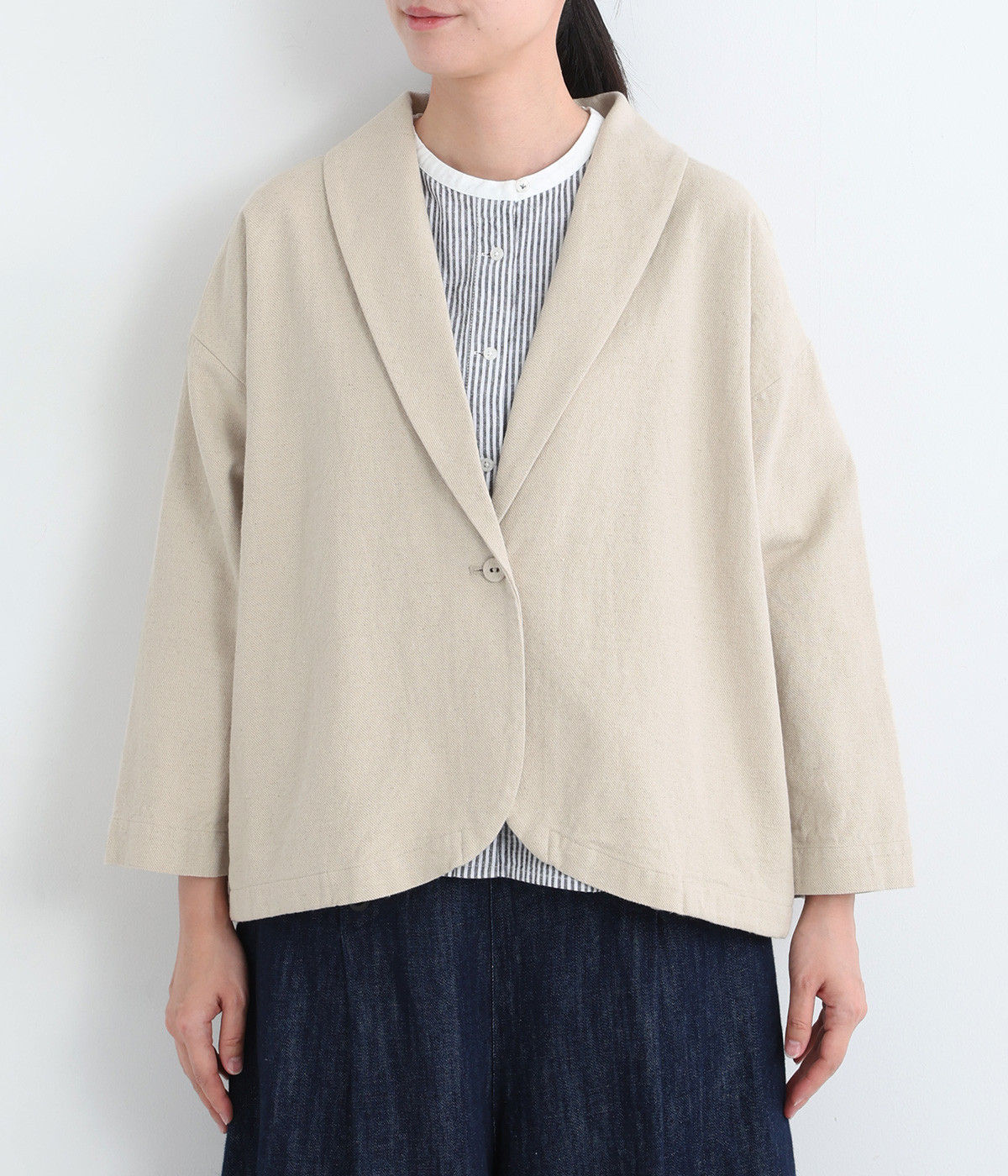 コットンリネンツイル ショールカラージャケット