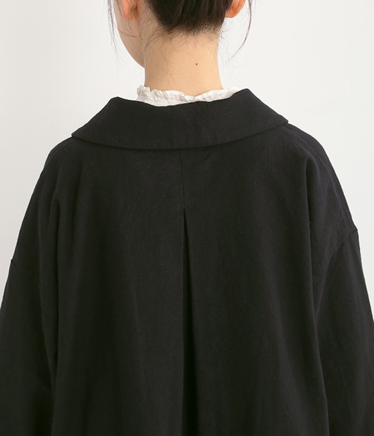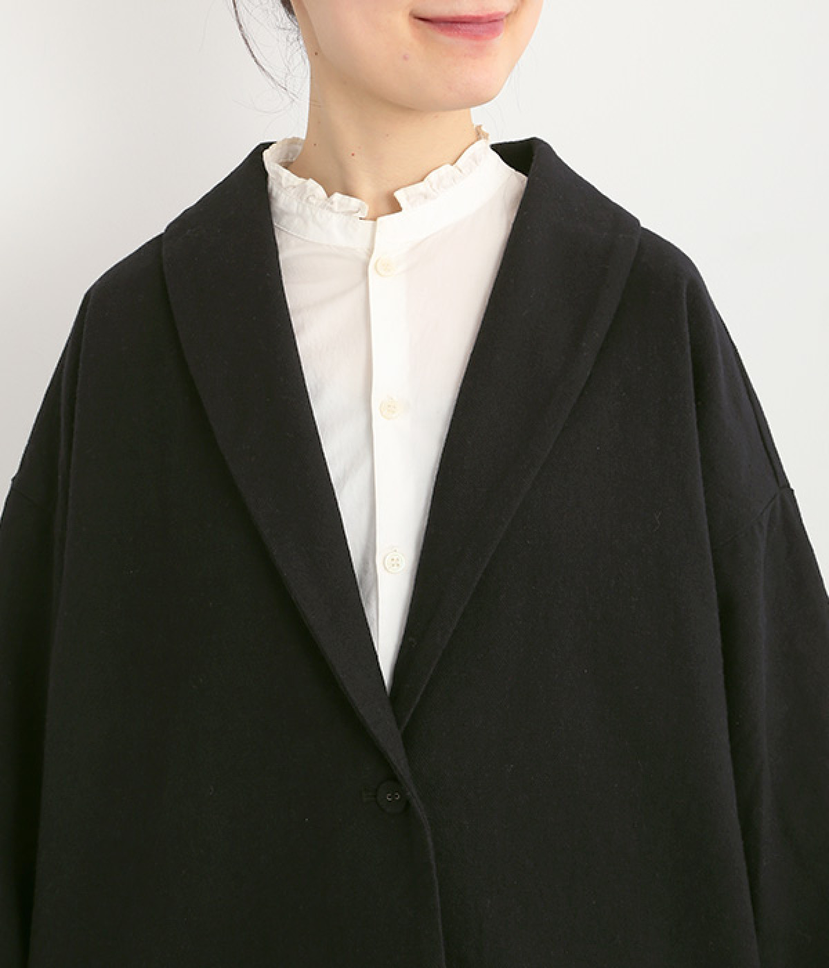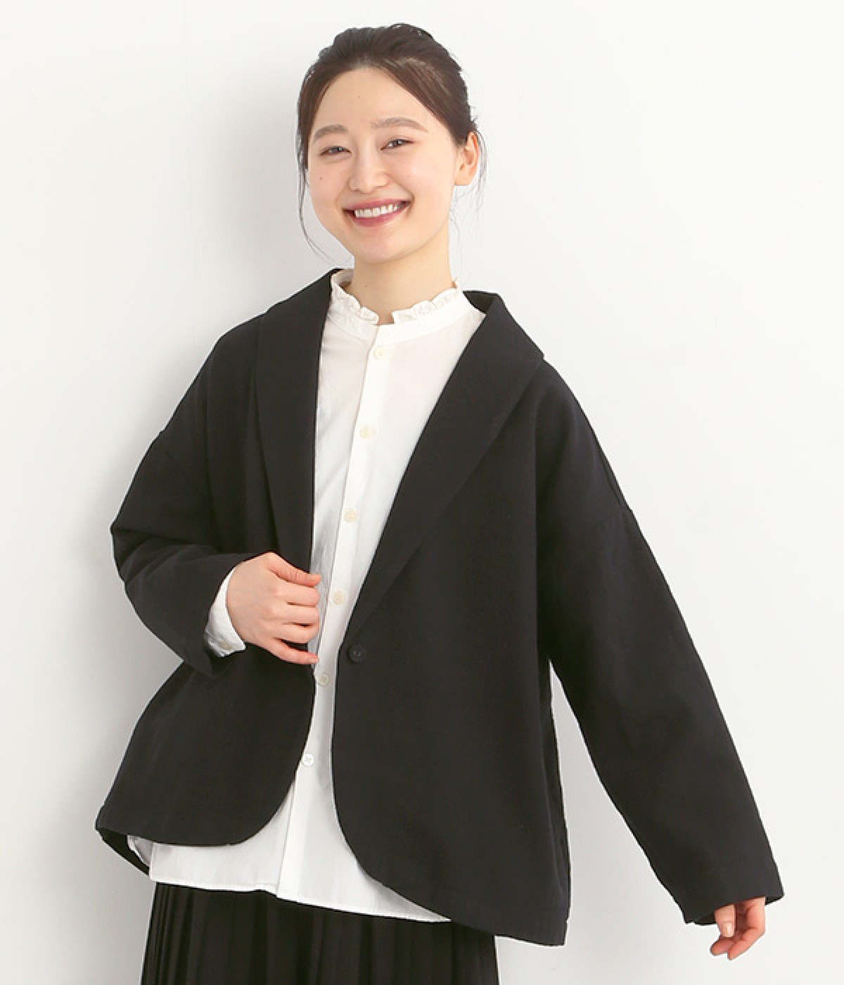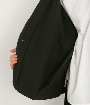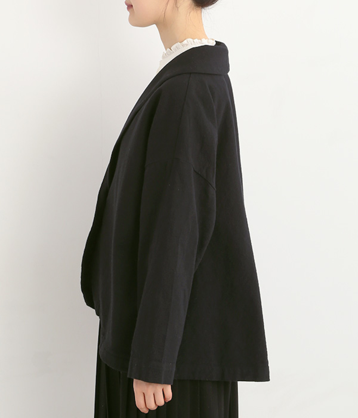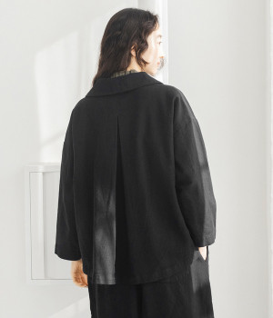 コットンリネンツイル ショールカラージャケット(ブラック-ONESIZE)