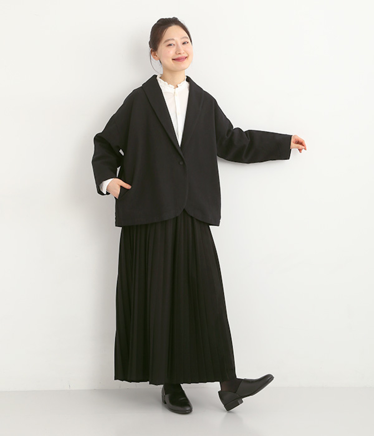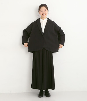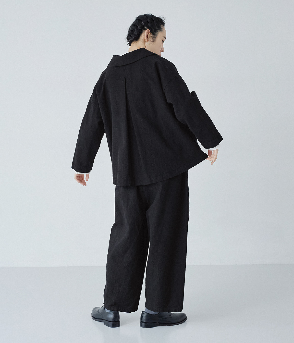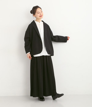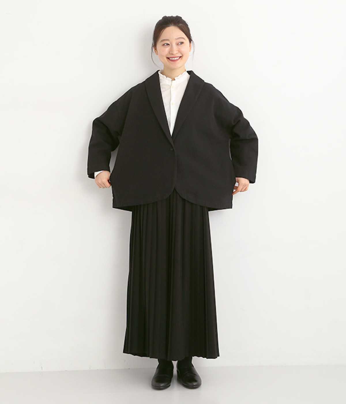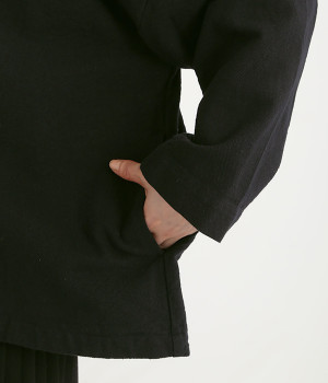コットンリネンツイル ショールカラージャケット(ブラック-ONESIZE)