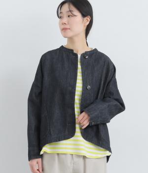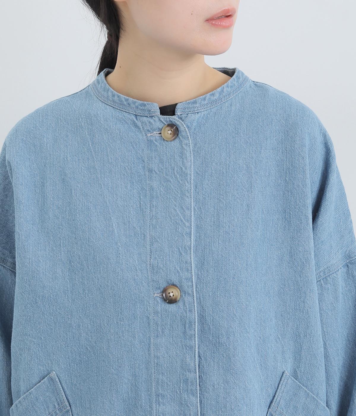 ナチュラルな風合いが心地よいコットンリネンデニムを使用。タフなコシ感を残しながらも着用初期から羽織りやすく、使い勝手のいい中厚手生地でロングシーズン活躍します。