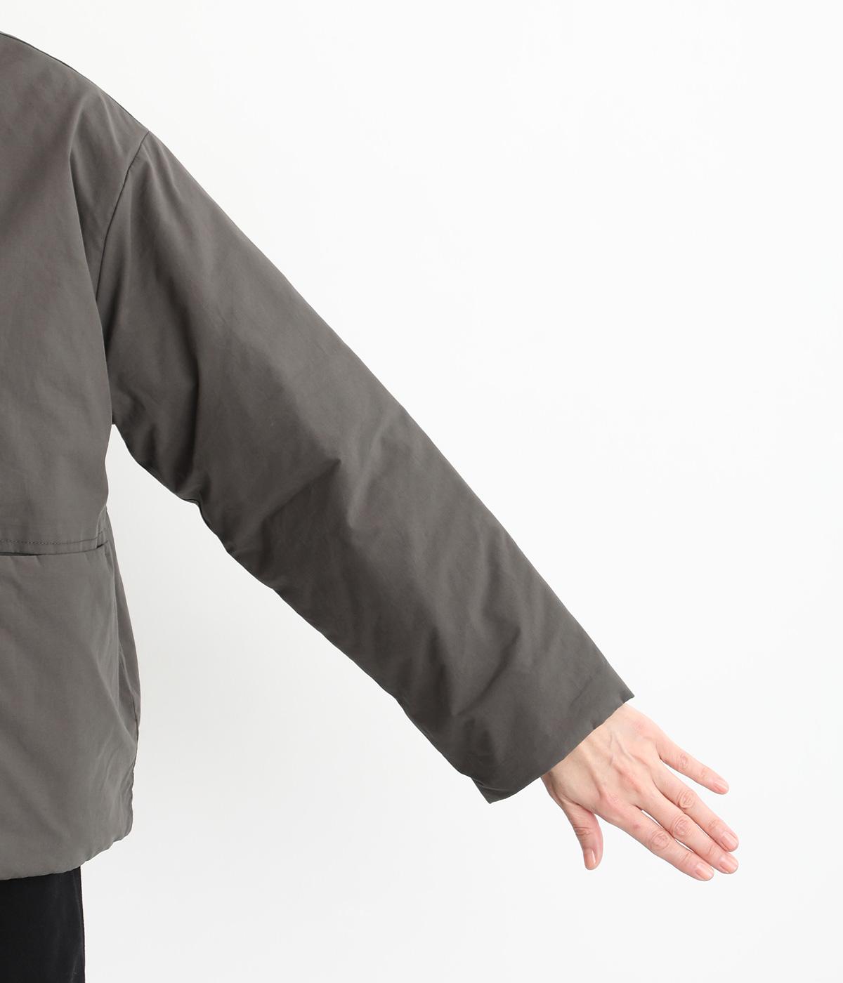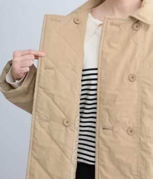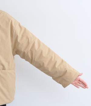 さらりとしたマットな質感で上品なムードを醸すコットン生地を使用しています。裏地には滑らかなポリエステルを使用し、軽くて保温性の高い中綿を入れました。
