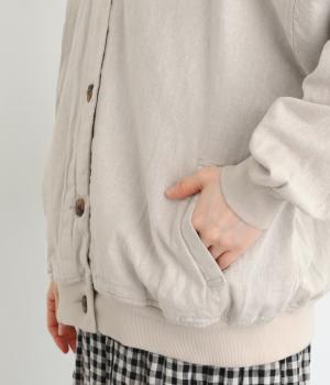 ゆったりとした身幅と丸みのあるボリューム袖を、リブ使いで引き締め、ディテールにこだわったブルゾンです。シンプルな佇まいながら、計算されたシルエットが女性らしさを演出します。ワンピースやパンツにもなじみ、軽やかなコーディネートがたのしめる一着です。