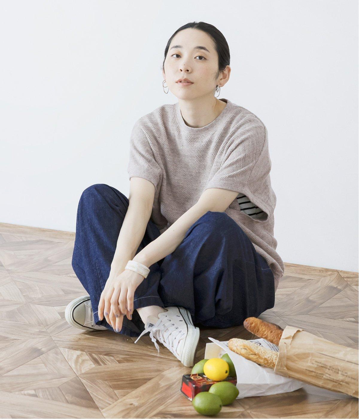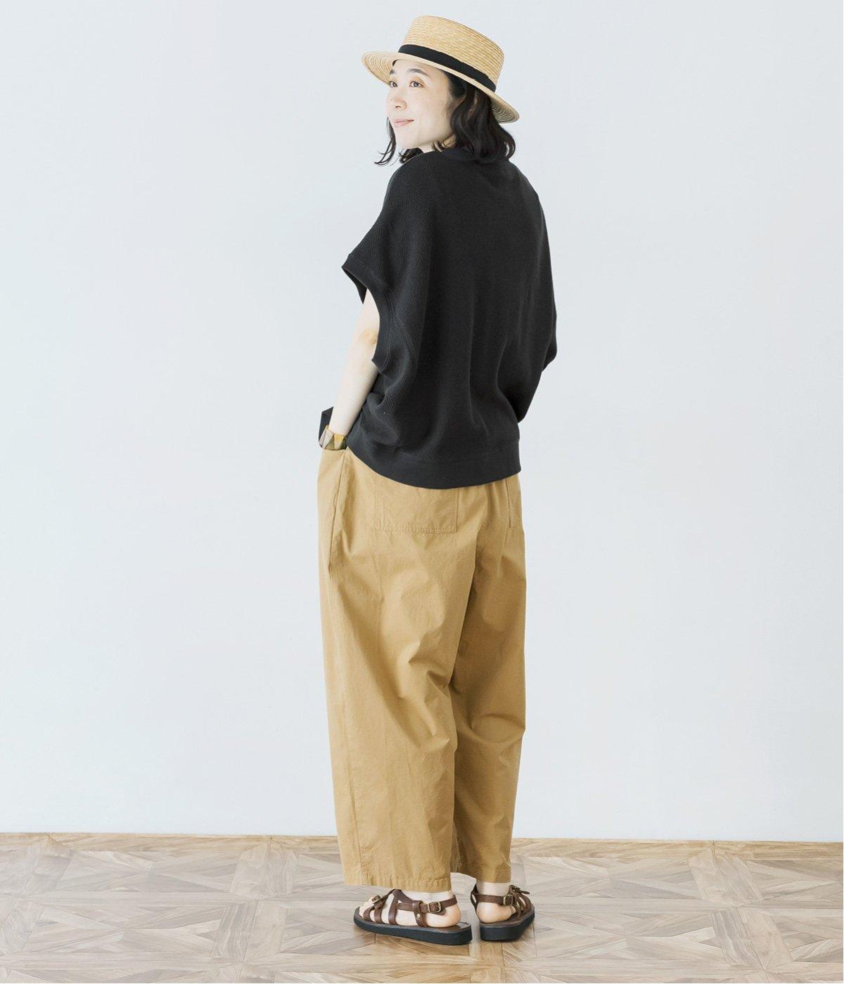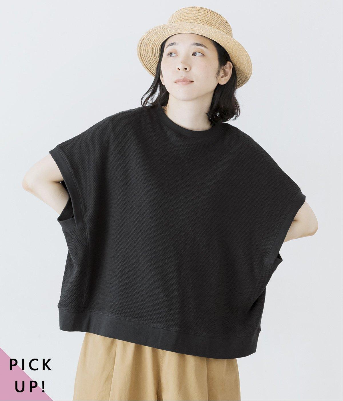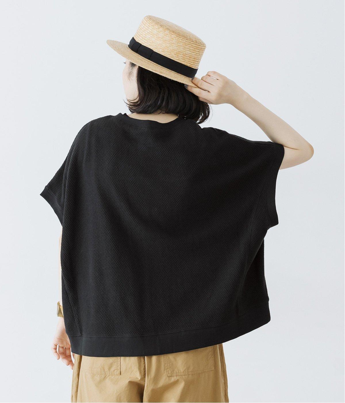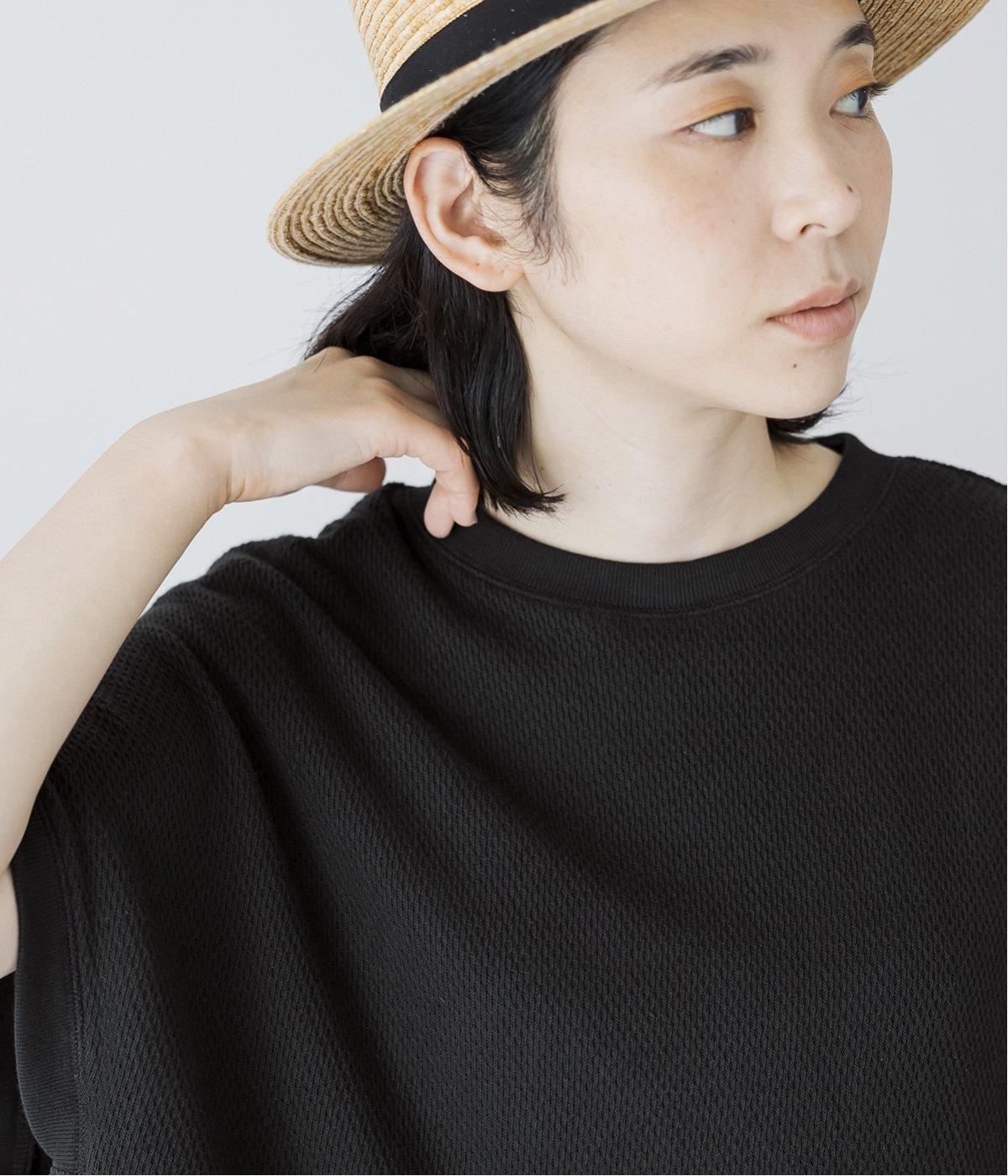 風合い豊かなハニカム編みのブラックは、夏でも軽やかに着こなせるのがポイント。凸凹とした立体感が、ナチュラルな雰囲気をつくります。