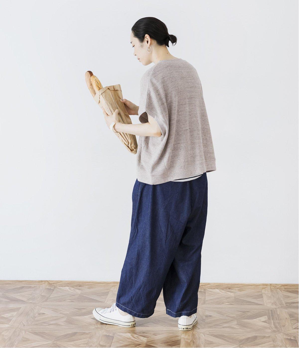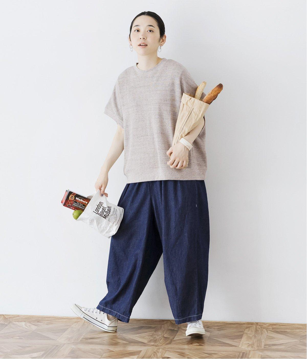 丸みのあるふんわりとしたコクーンシルエットのデニムパンツ。軽やかで通気性のいい、ライトコットンリネン素材で、汗ばむ季節も心地よく快適です。