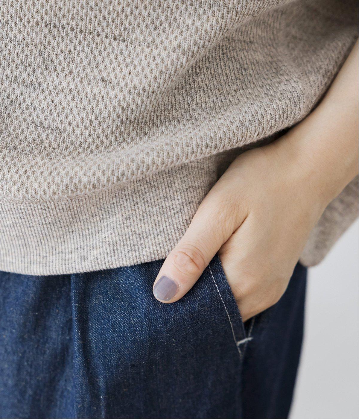 重ね着をしても窮屈感のない、ゆったりとしたL字型のアームホール。ゆるやかなラインが動きやすく、自然な抜け感を与えます。