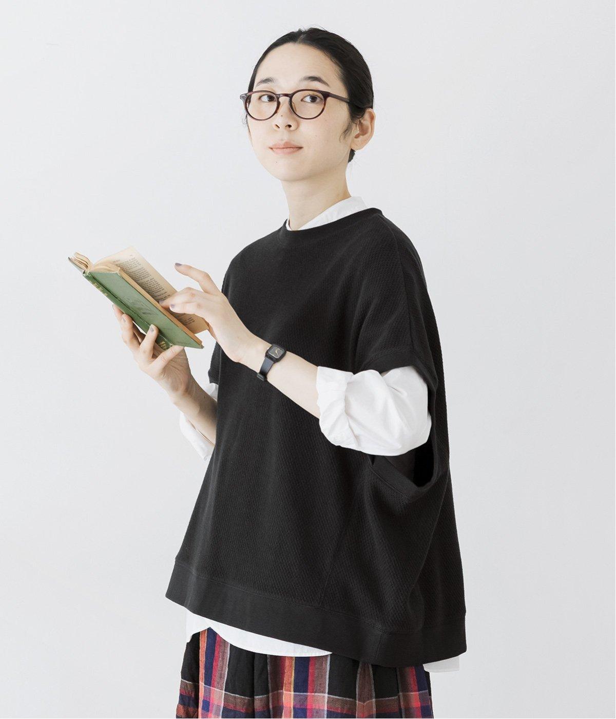 重ね着しやすいたっぷりの身幅と、リブ仕立てのL字型のアームホールがポイント。どんな着こなしにも合わせやすい、ベーシックな