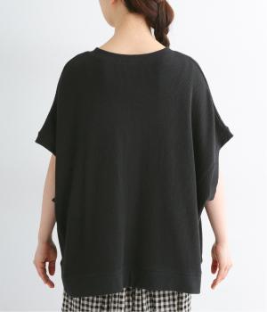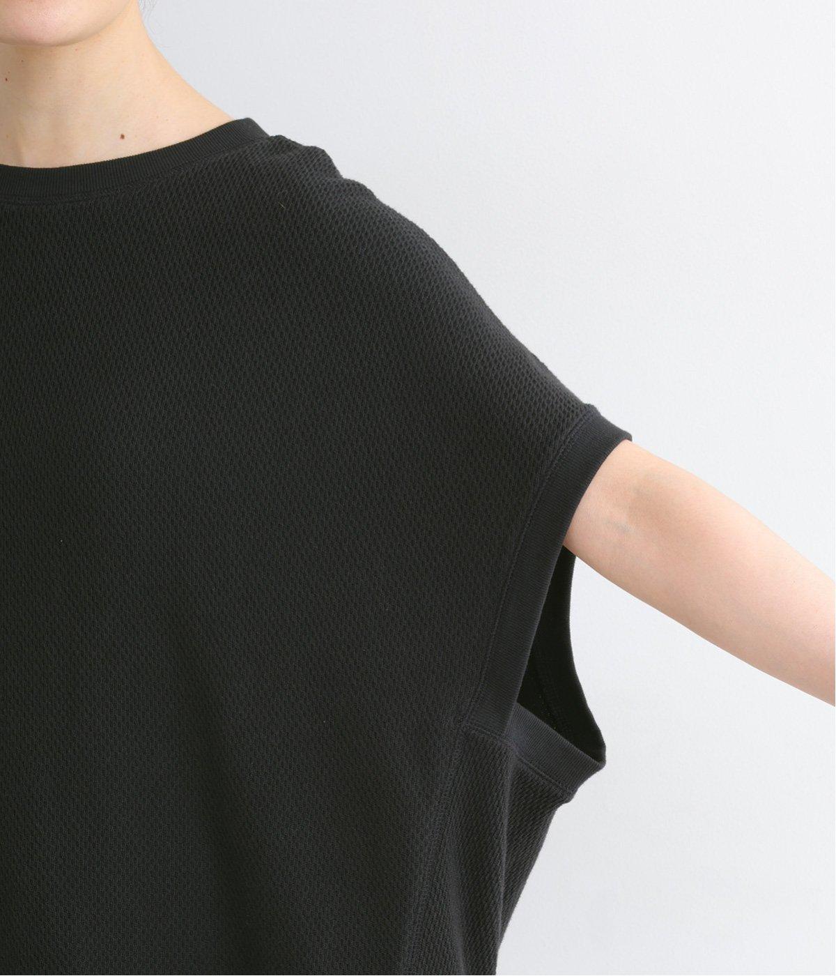 L字型にカッティングされたアームホールが抜け感をつくり、リラクシーな雰囲気をもたらします。風が通り抜ける、涼しい着心地も魅力的。アクセントを加える首元や袖口、裾のリブデザインにもこだわりました。