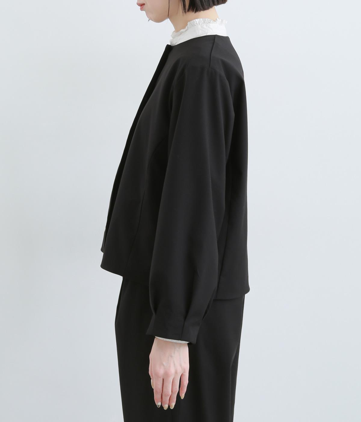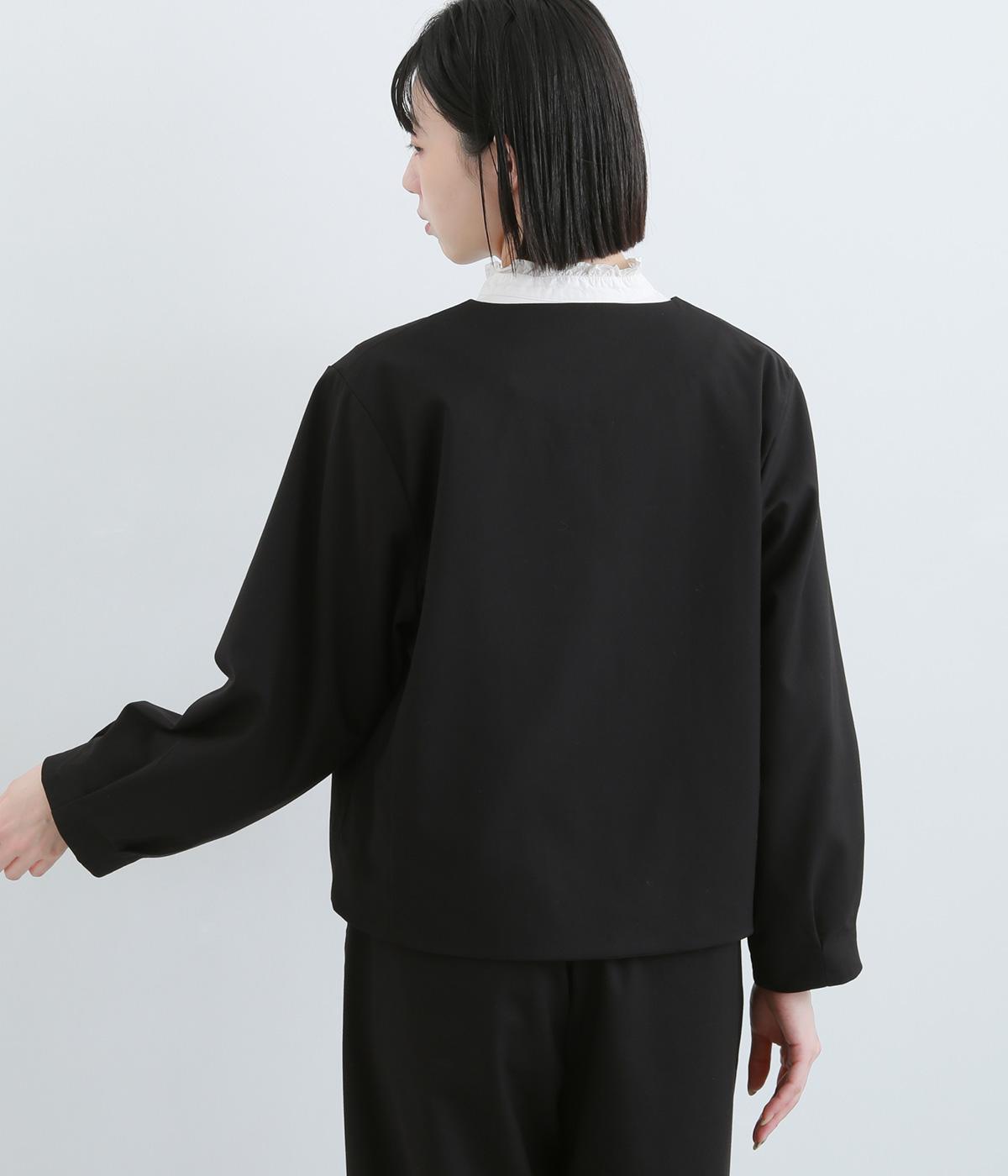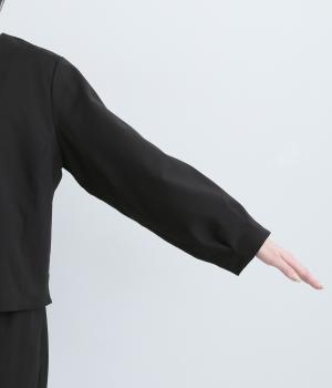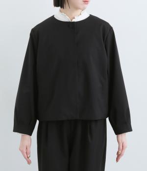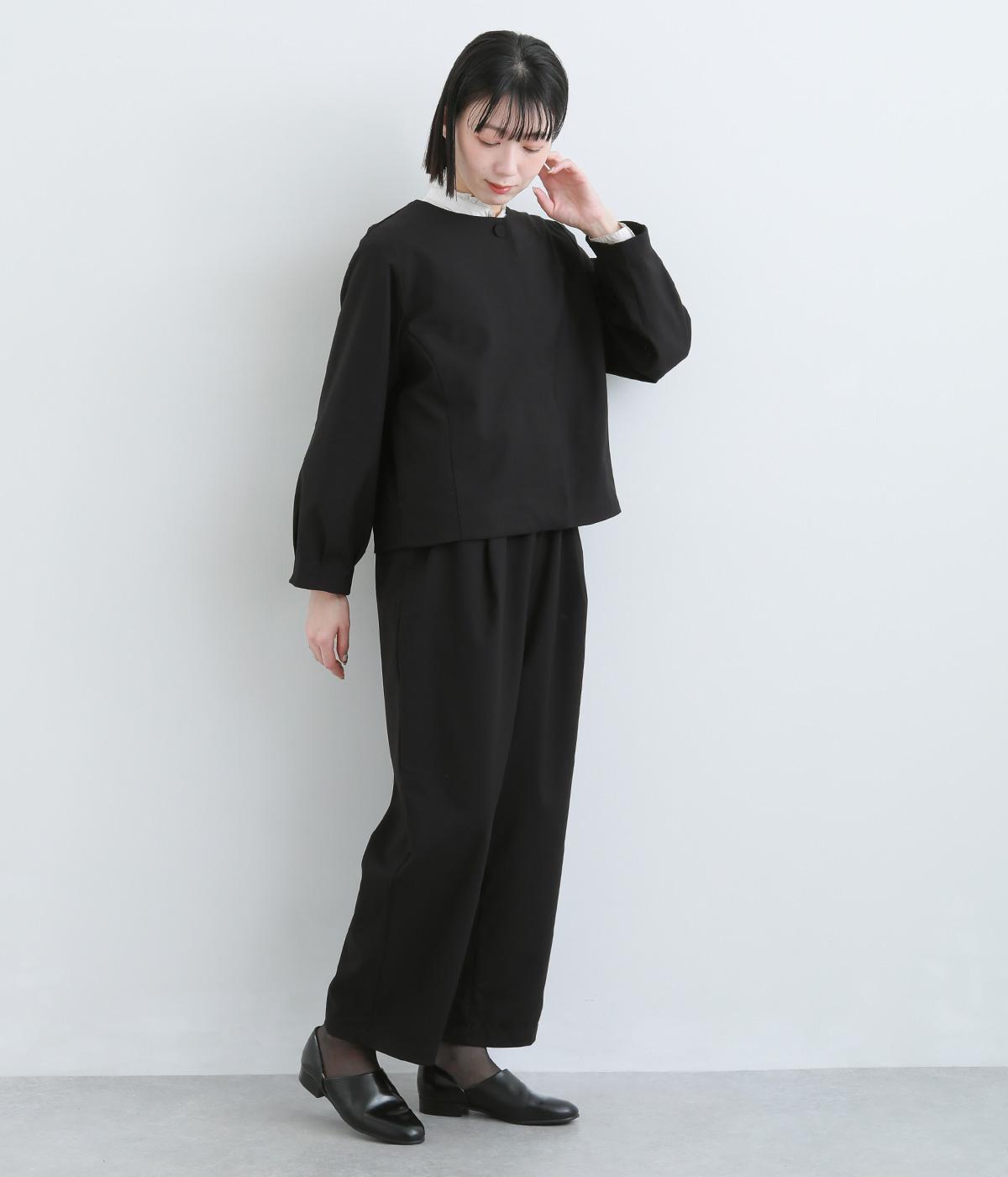 第二ボタンから比翼仕立てにした前開きがすっきりとした印象をもたらします。袖先にタックをほどこしたバルーンスリーブがふんわりと女性らしさをプラス。デイリーにもフォーマルにも活躍する一枚です。