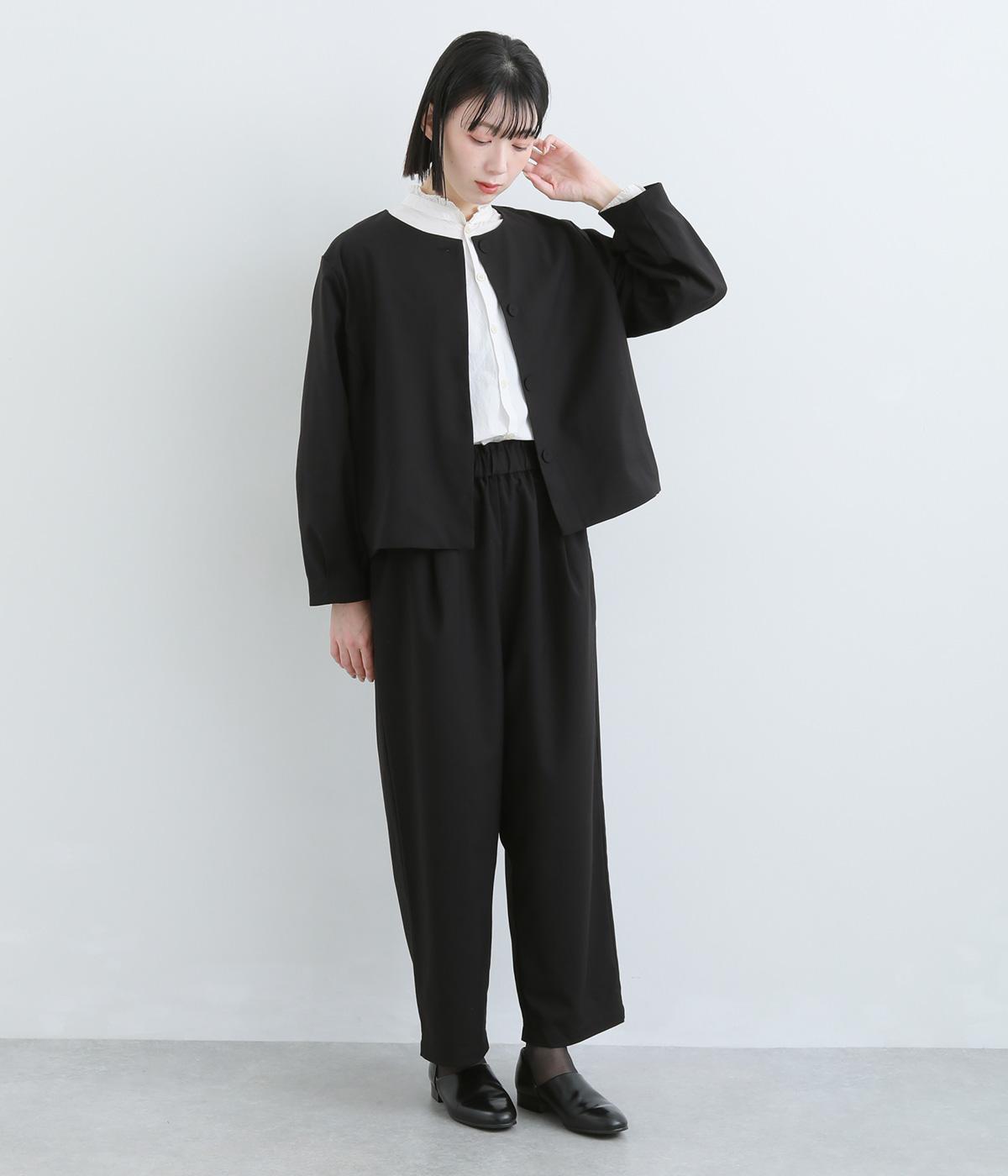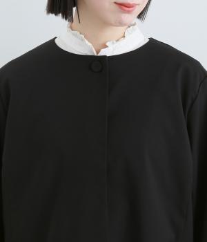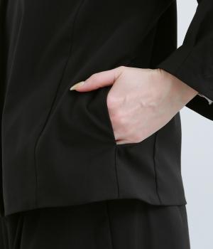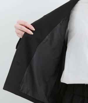 着脱しやすい伸縮性のある混紡生地を使用しました。上品でほのかな光沢があり、幅広いシーンに対応します。型崩れしにくく、ポリエステルの裏地付きで着やすさも高めました。