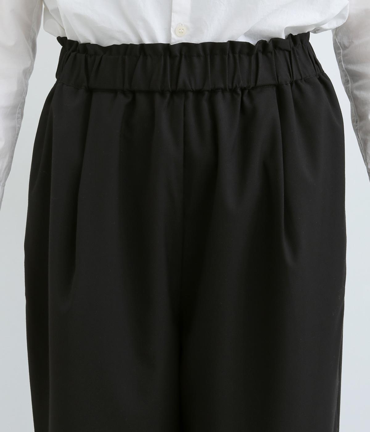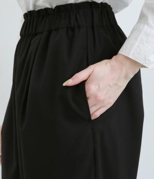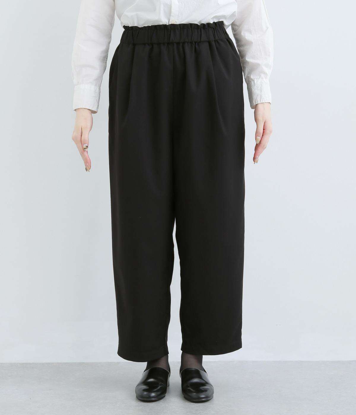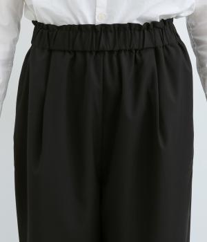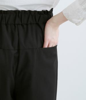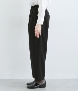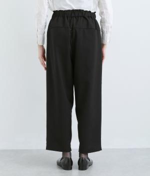 ウエストのタックでほどよいゆとりを持たせつつ、裾に向かって細くなるテーパードシルエットに仕上げました。ウエストはゴム仕様で紐による調節ができ、ストレスの少ない穿き心地。デイリーにもフォーマルにも活躍します。