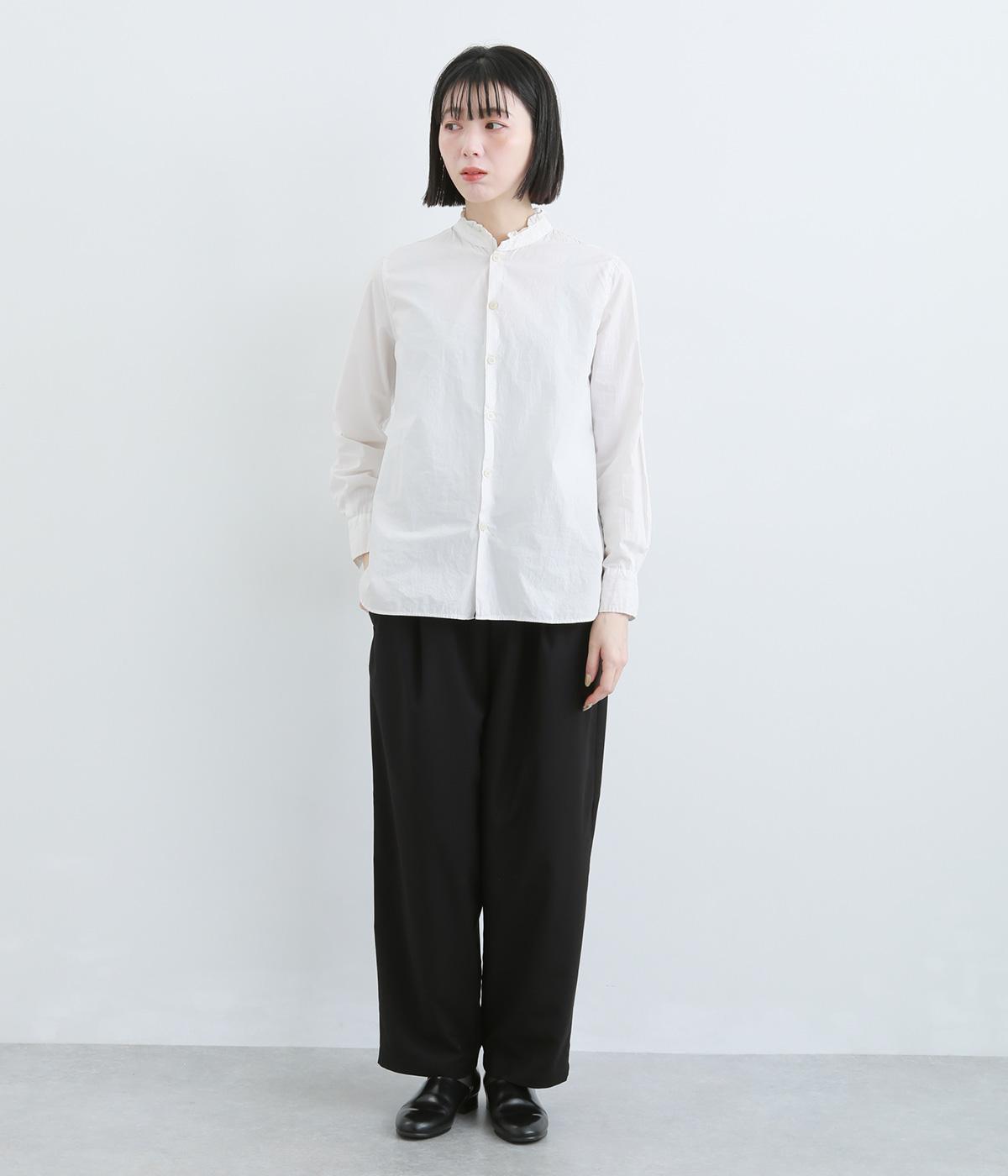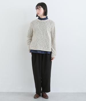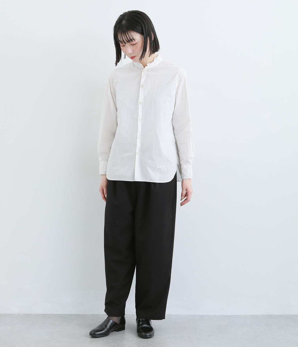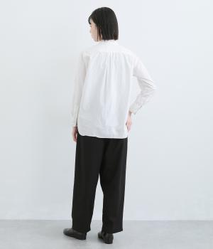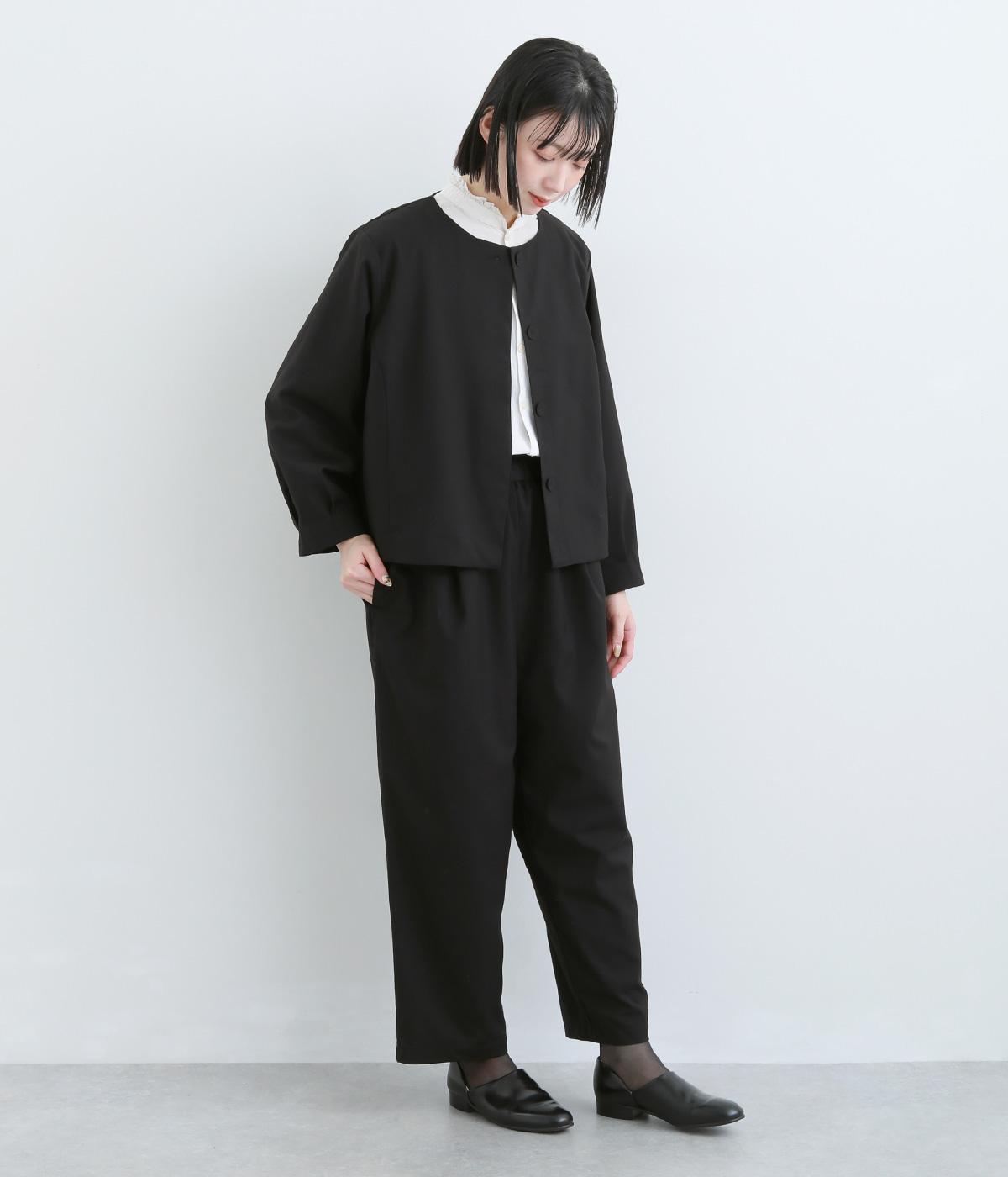 ウエストのタックでほどよいゆとりを持たせつつ、裾に向かって細くなるテーパードシルエットに仕上げました。ウエストはゴム仕様で紐による調節ができ、ストレスの少ない穿き心地。デイリーにもフォーマルにも活躍します。