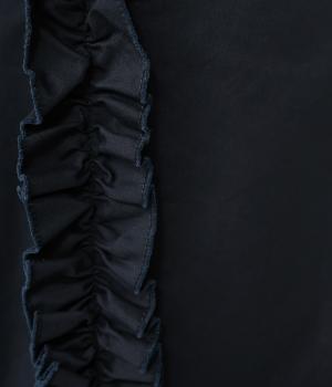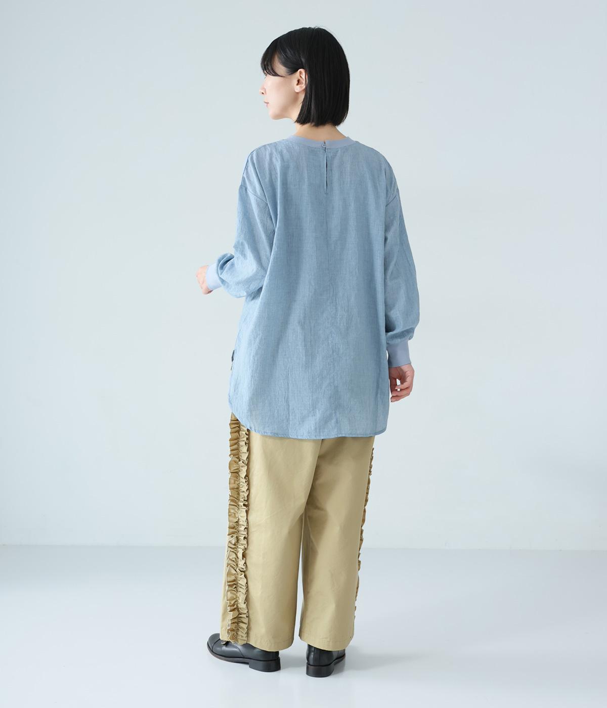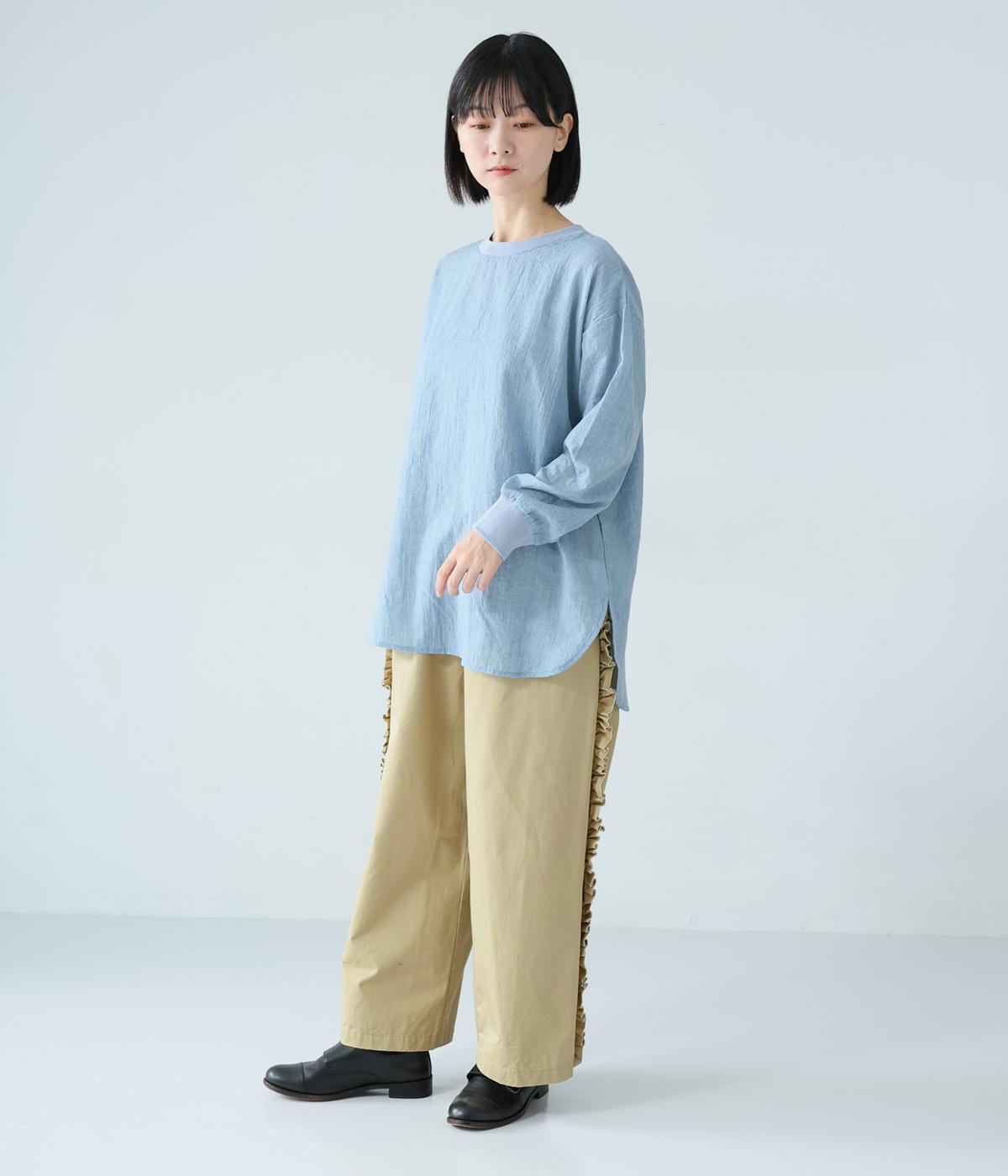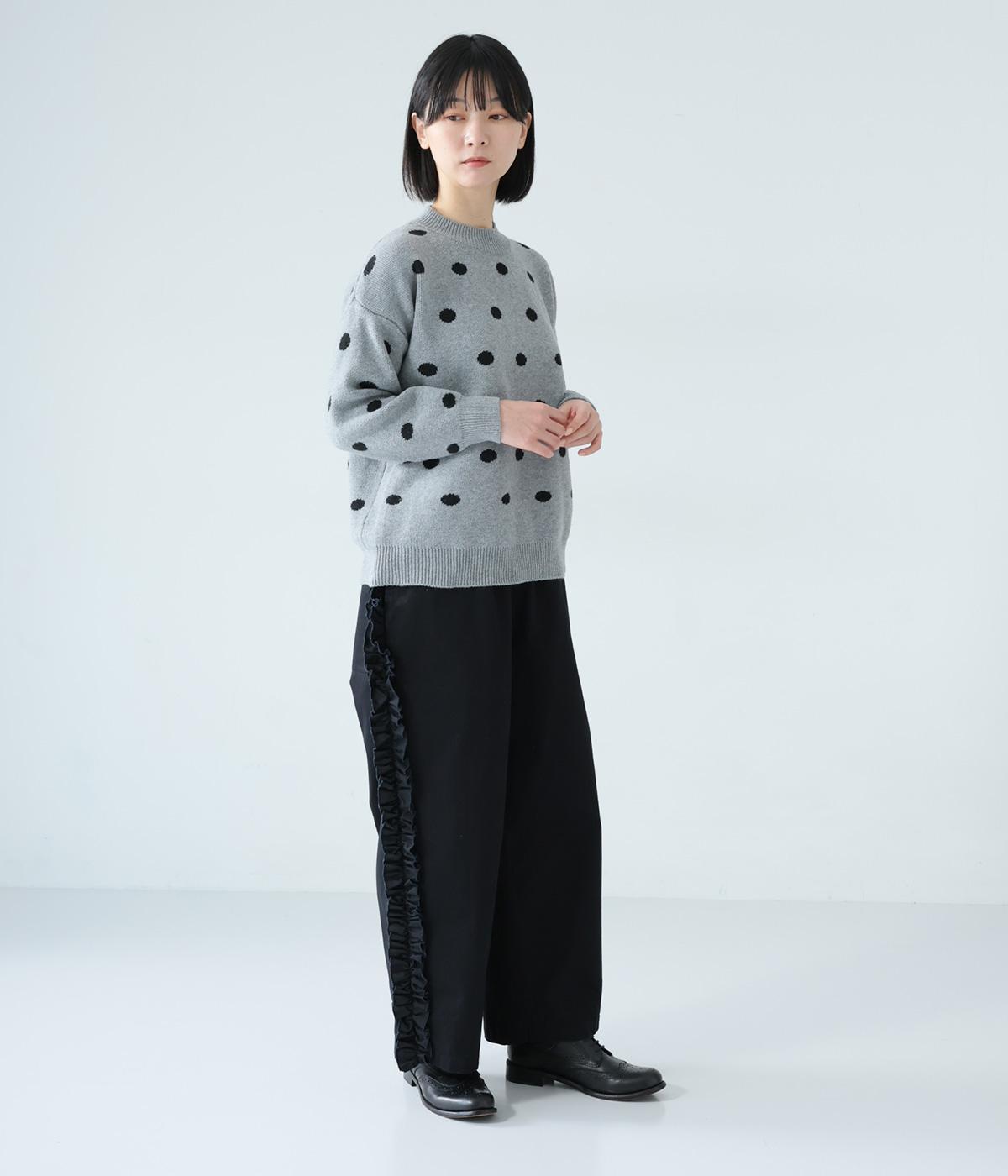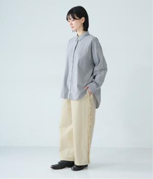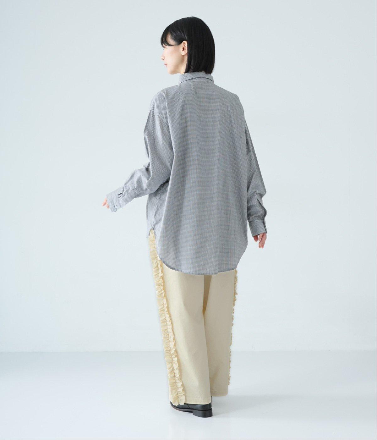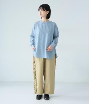 サイドラインに立体感のあるフリルを施しました。歩くたびに揺れて、さりげない華やかさを演出。甘すぎないデザインなので、大人の女性でも取り入れやすいのが魅力です。総ゴム仕様のウエストには内紐をプラスしています。