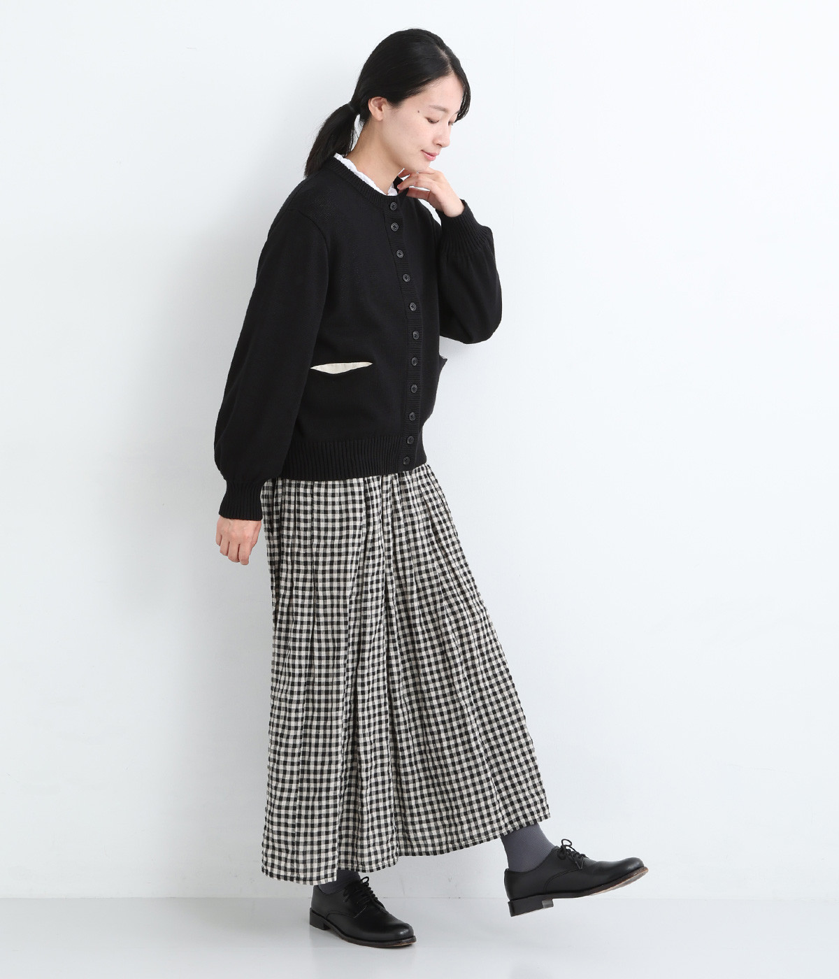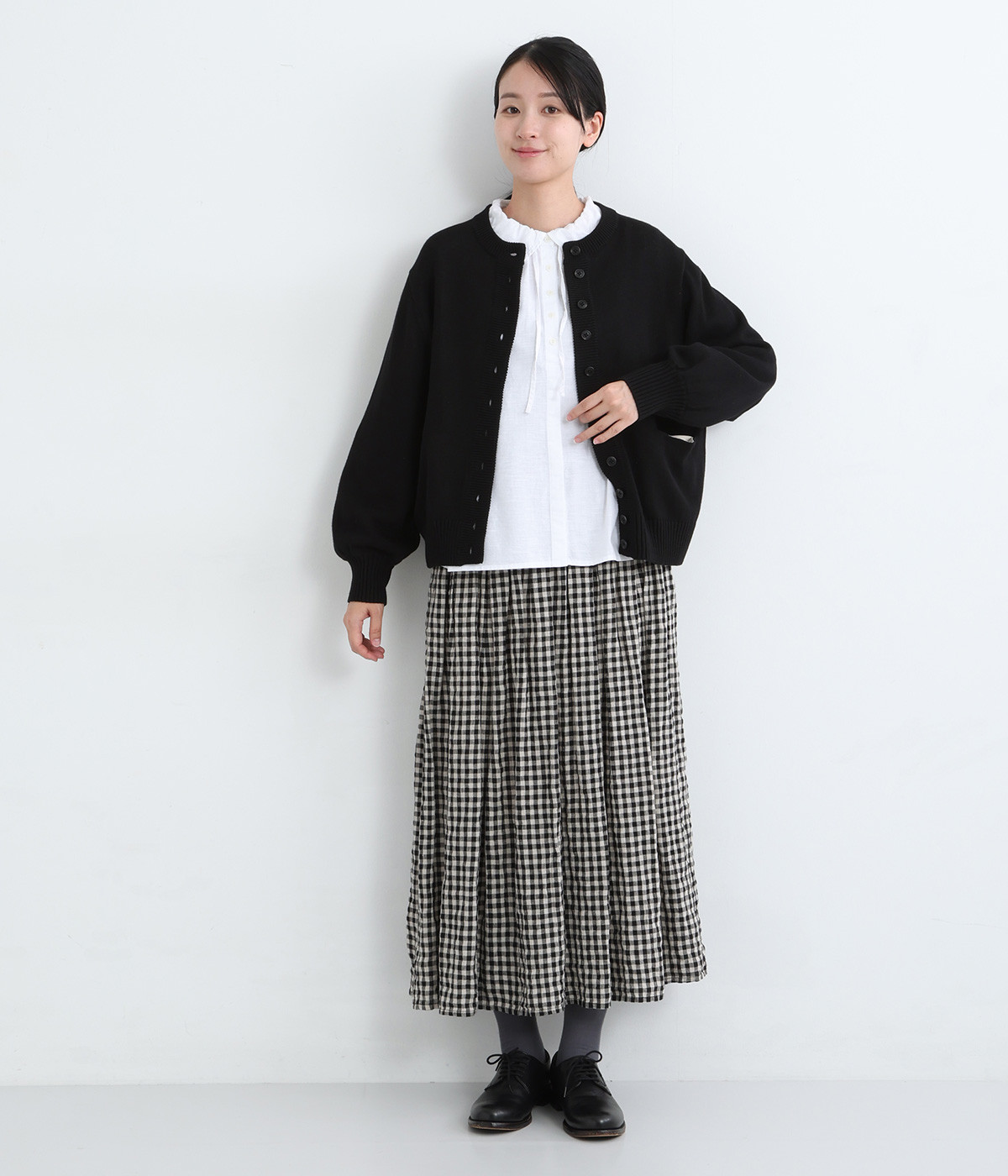 手元でゆるっと溜まった長めの袖が可愛らしい