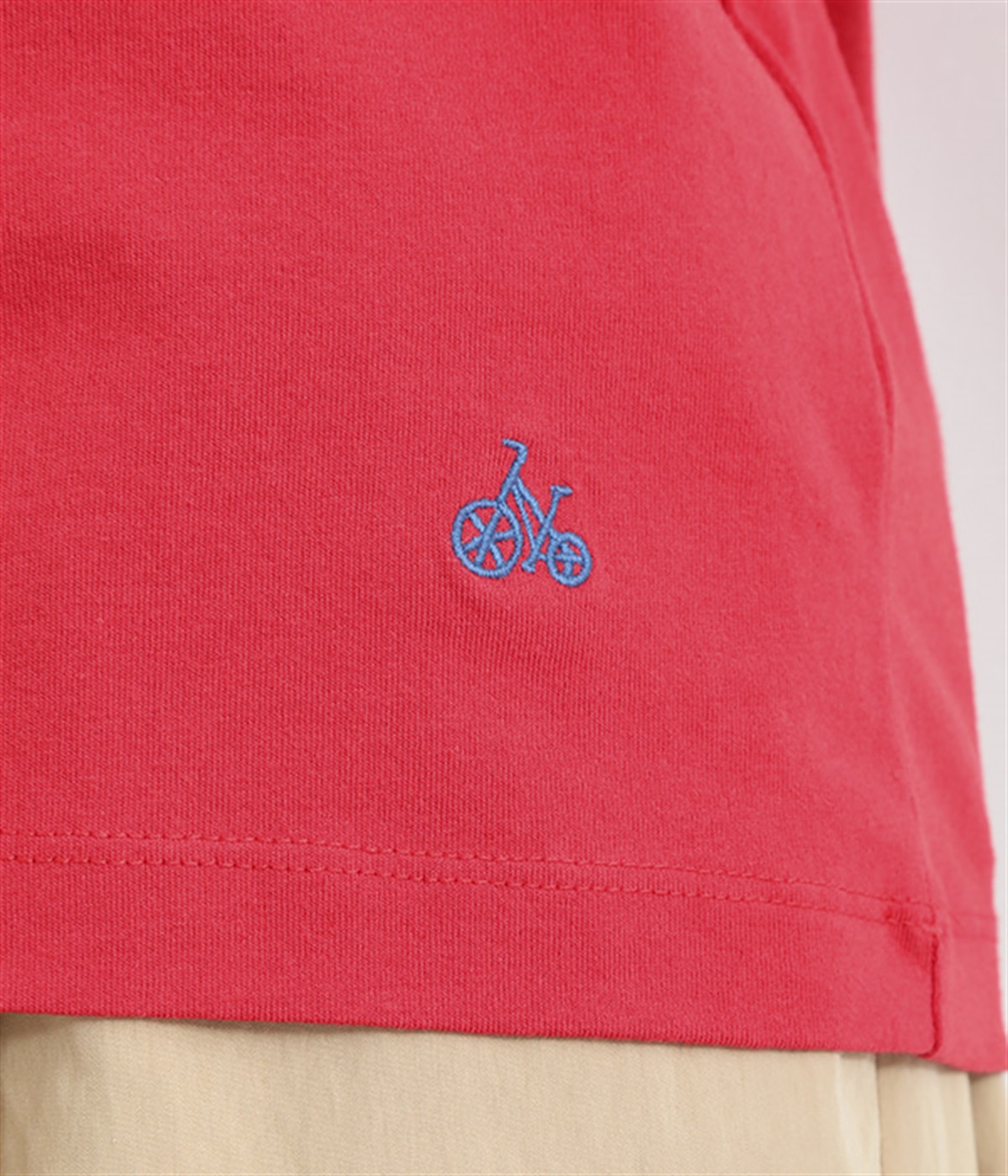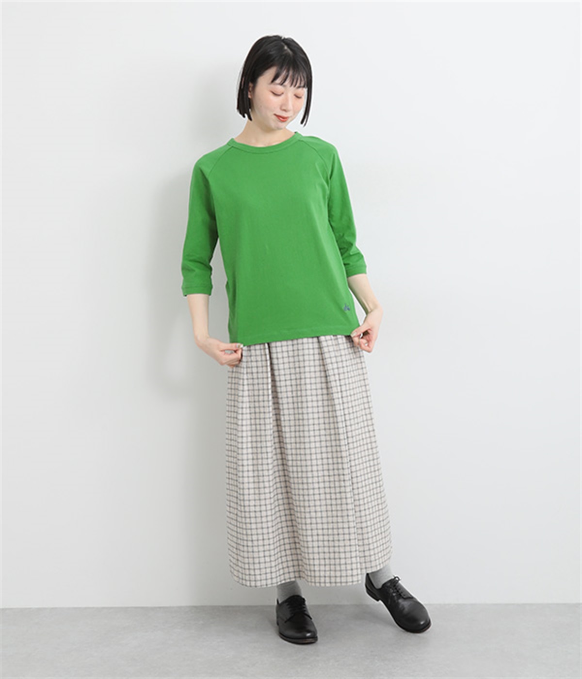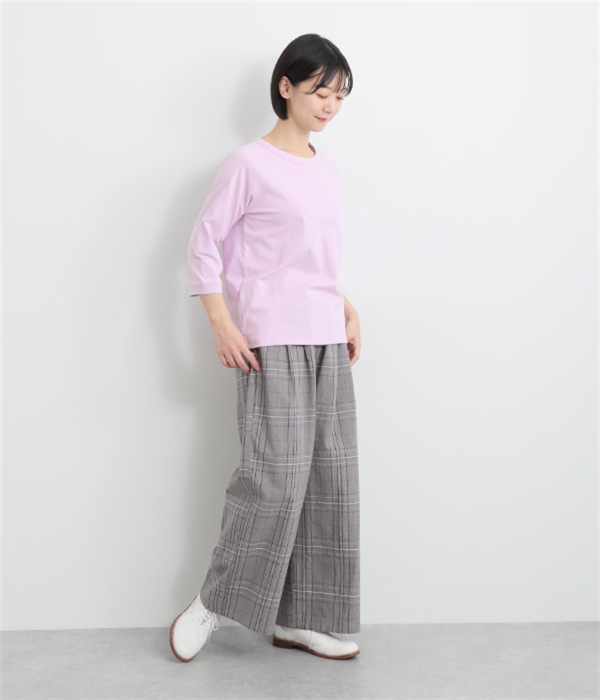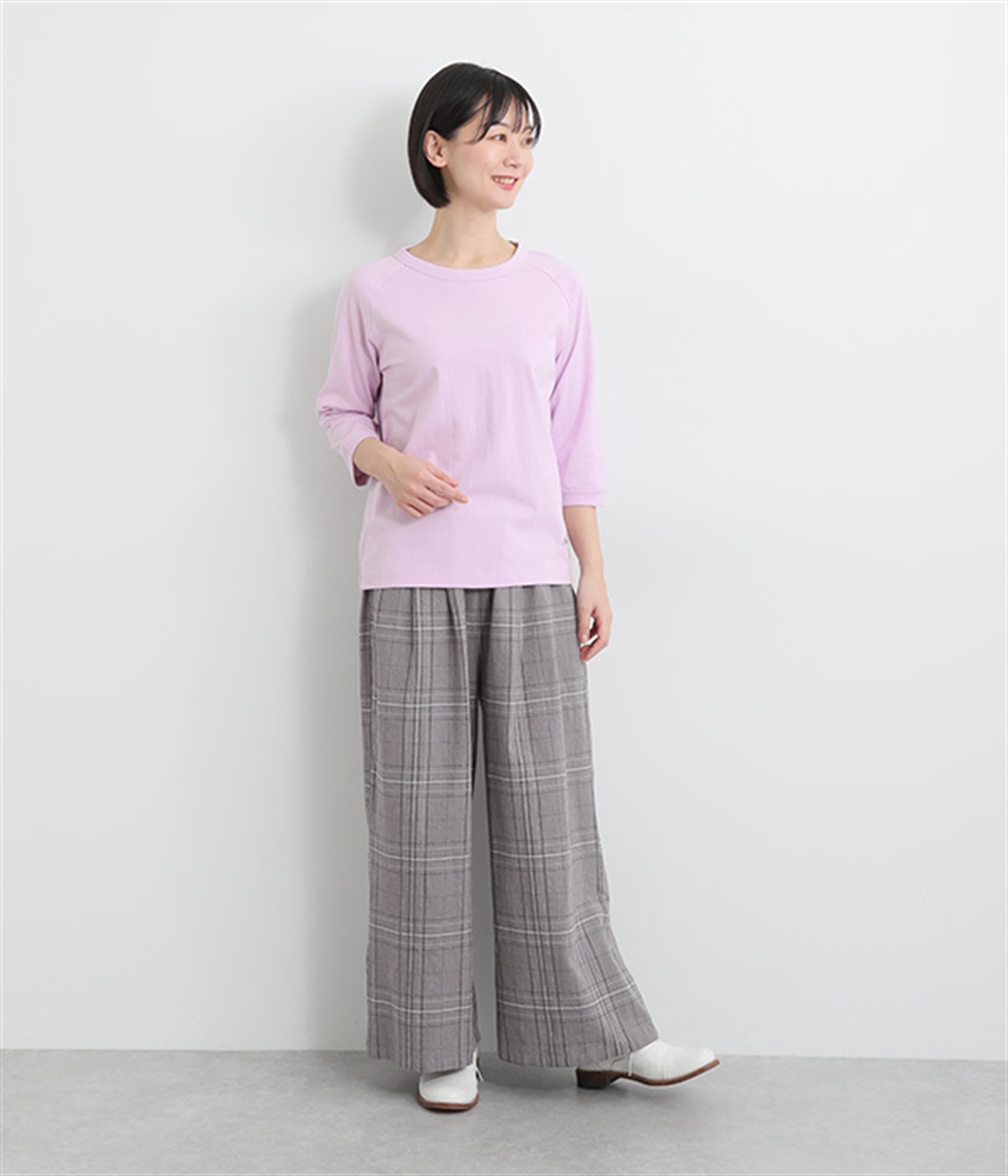 インナー使いでも着ぶくれしにくい、大きすぎないレギュラーシルエット。肩まわりが動かしやすいラグランスリーブ&ロングシーズン着まわせる七分袖です。左裾の刺しゅうでさりげないアクセントをプラス。