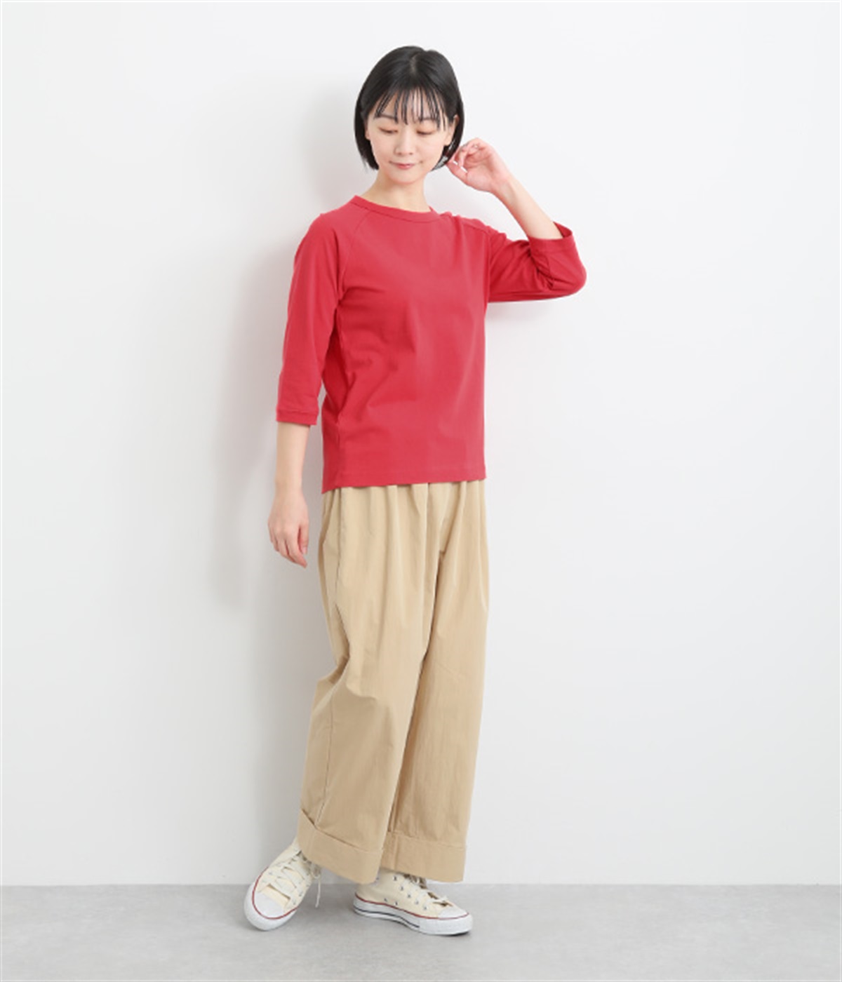 - ※お持ちのアイテムを平置きの状態で計測の上、サイズ表の寸法と比較してご検討ください。