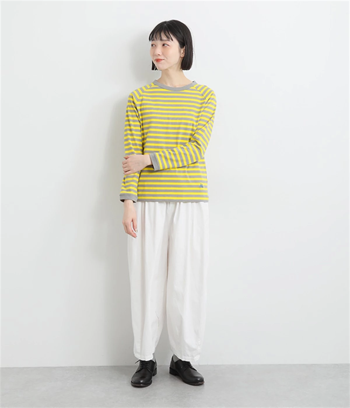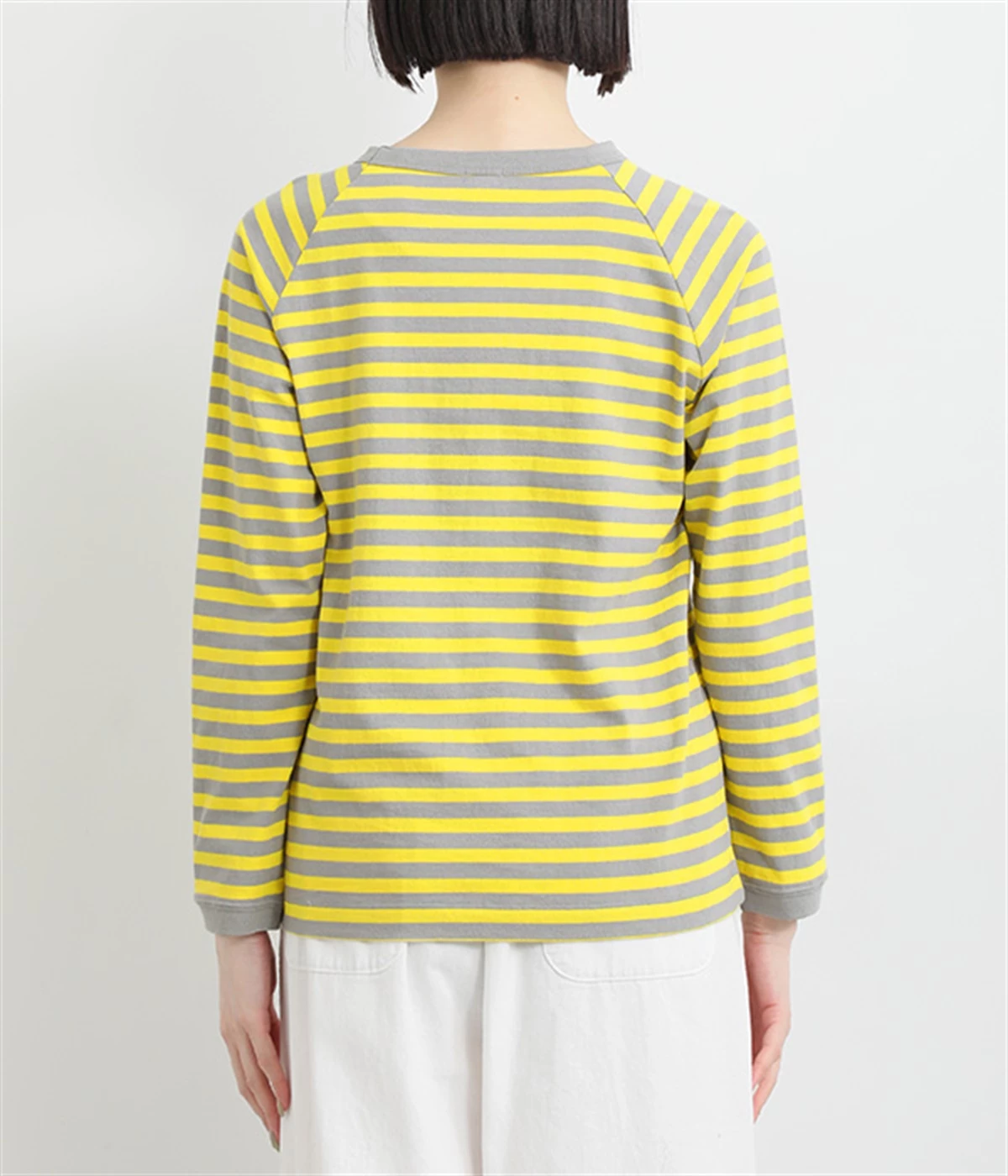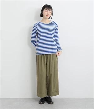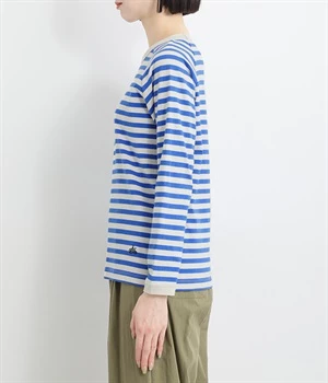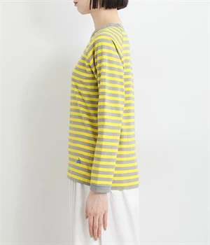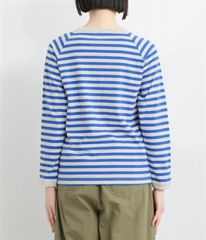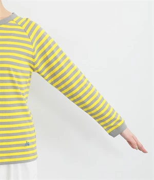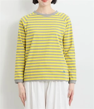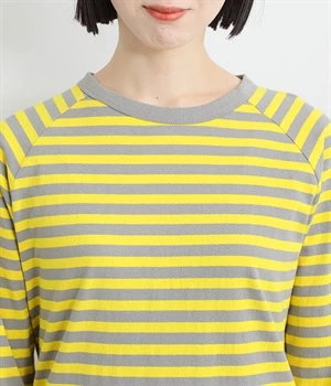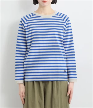 一枚着ではもちろん、インナー使いでも着ぶくれしにくいレギュラーシルエットです。肩まわりが動かしやすいラグランスリーブも嬉しいポイント。きれいな配色のボーダー柄がスタイリングのアクセントに最適です。