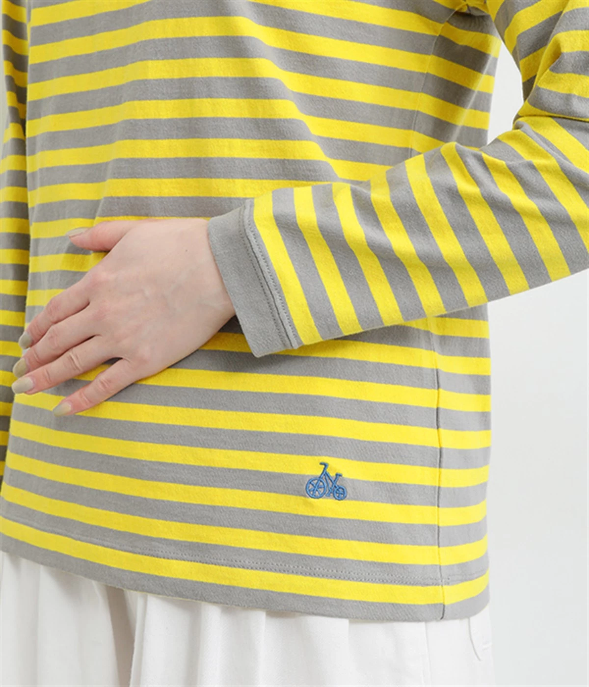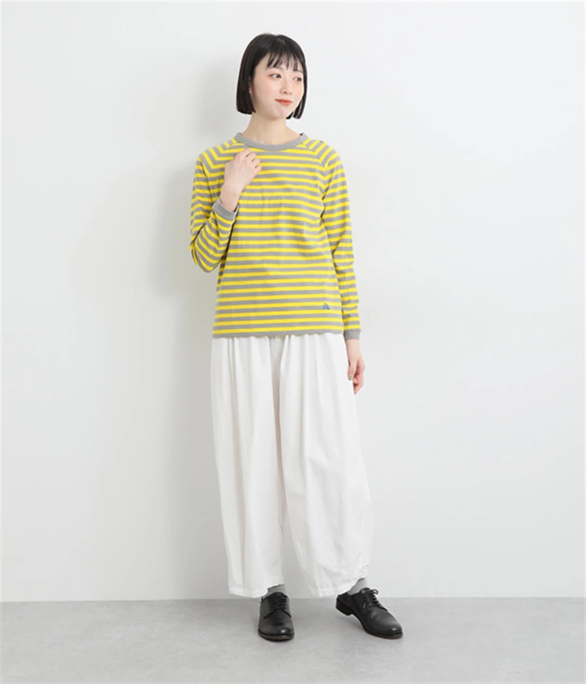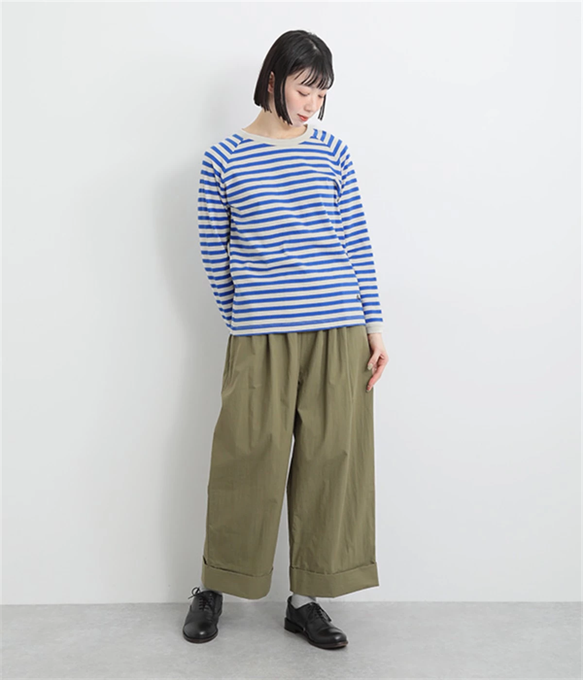 一枚着ではもちろん、インナー使いでも着ぶくれしにくいレギュラーシルエットです。肩まわりが動かしやすいラグランスリーブも嬉しいポイント。きれいな配色のボーダー柄がスタイリングのアクセントに最適です。