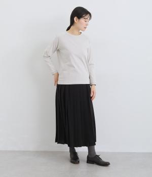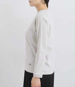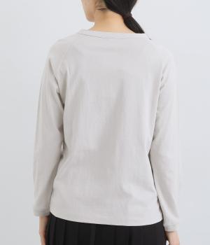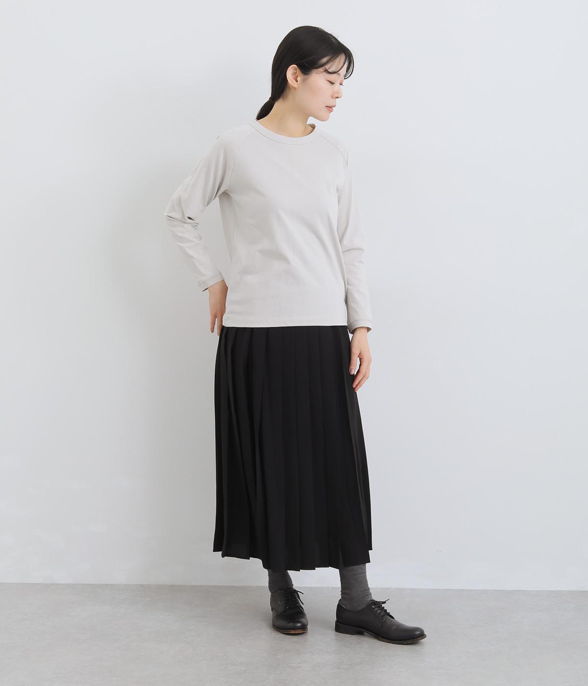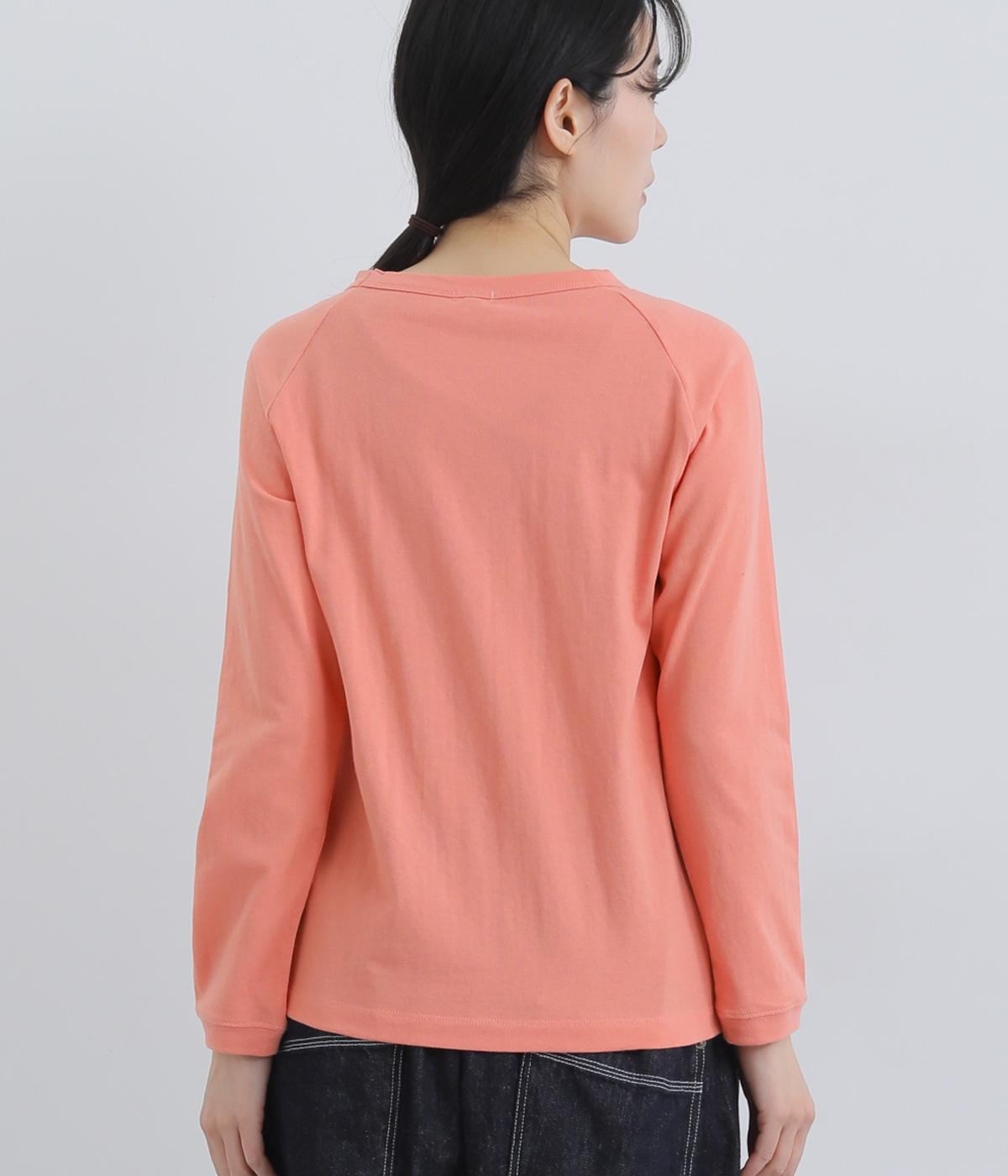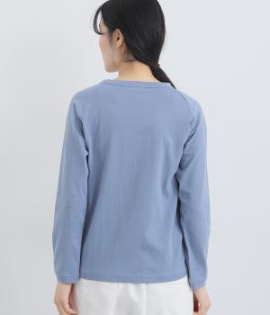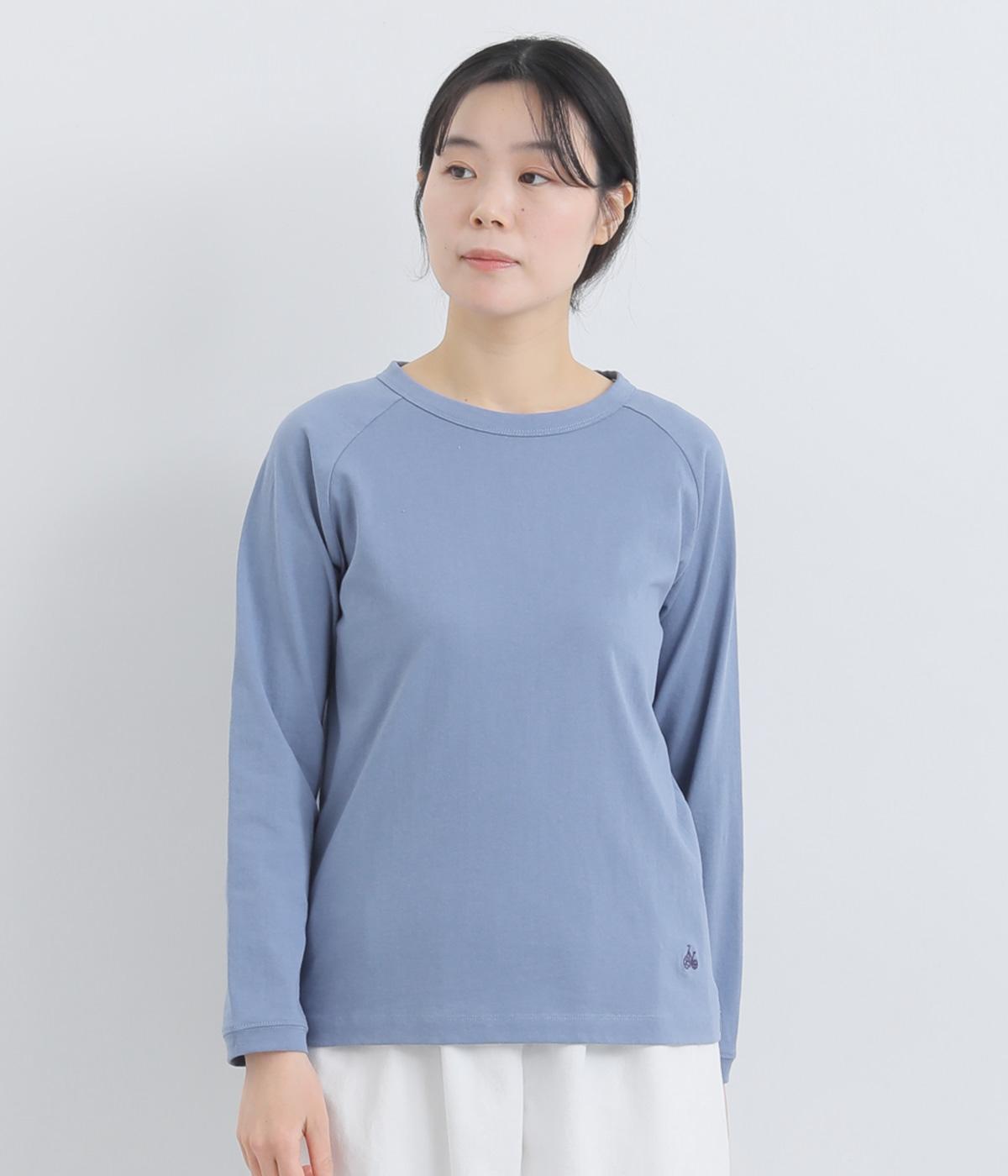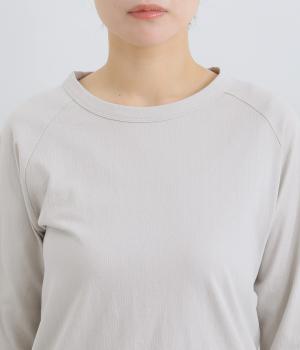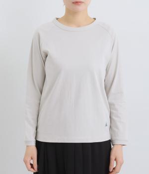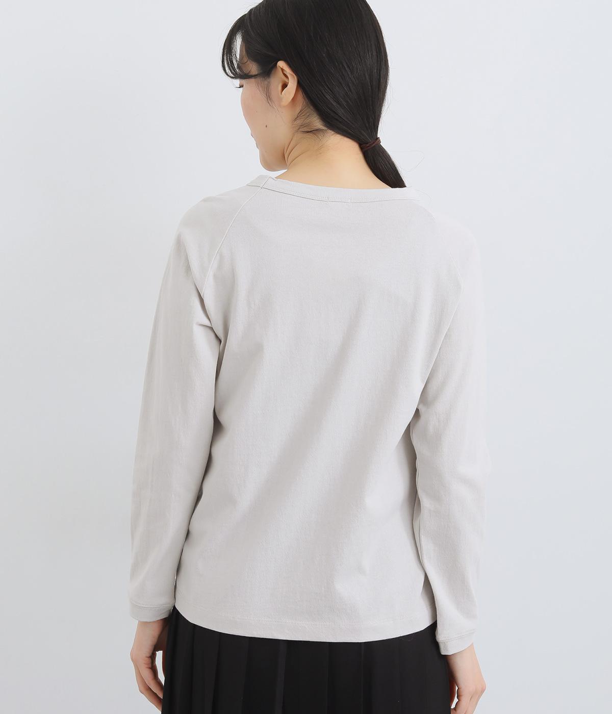 肩のラインをなだらかにみせてくれるラグランスリーブの長袖プルオーバー。ベーシックなボックスシルエットでメインにもインナーにもなります。前後差のある裾はスリット入りでボトム合わせもすっきり見え。
