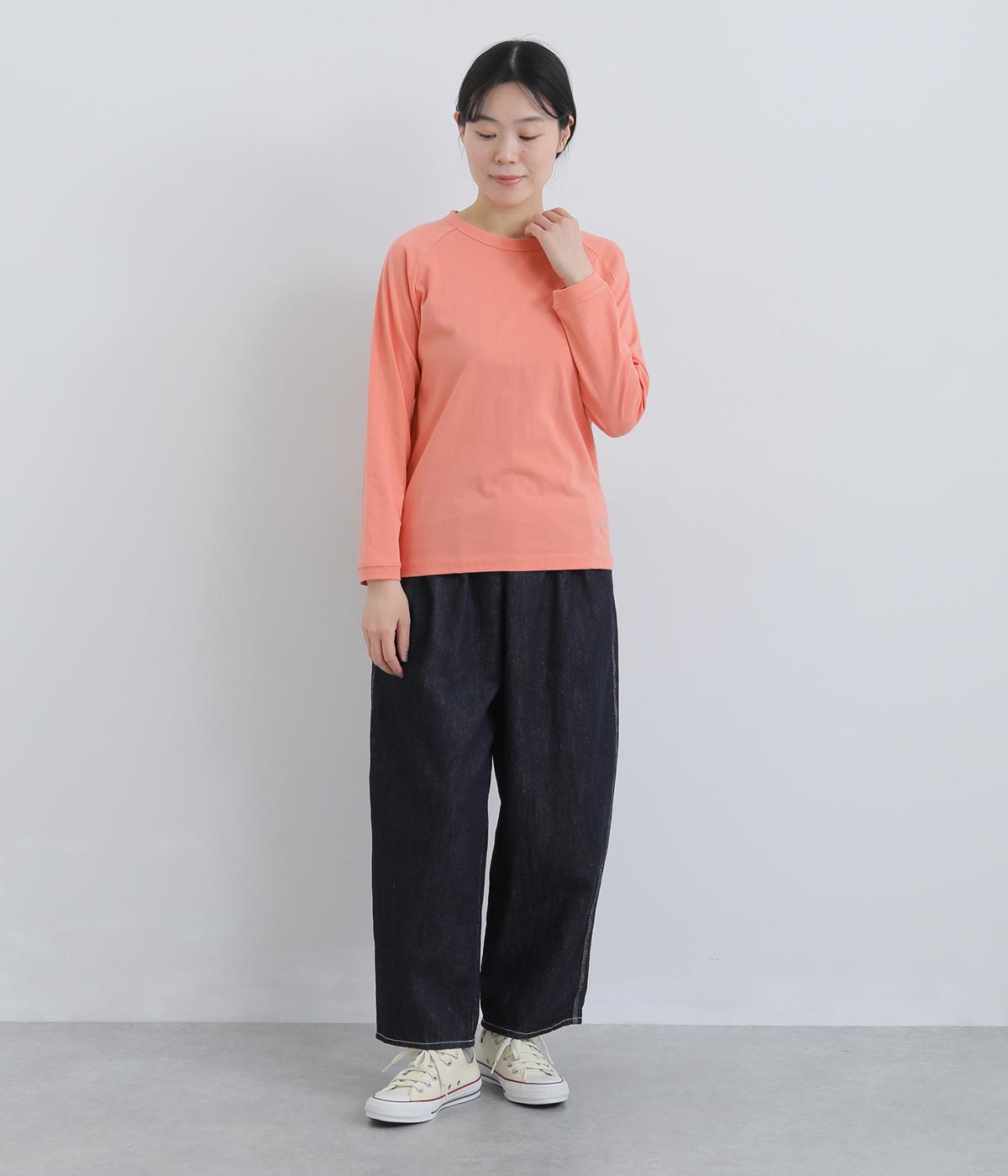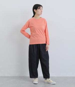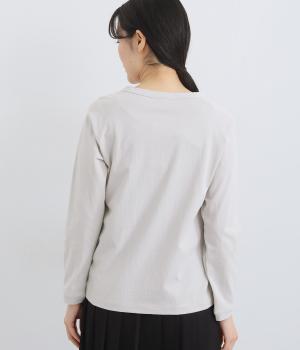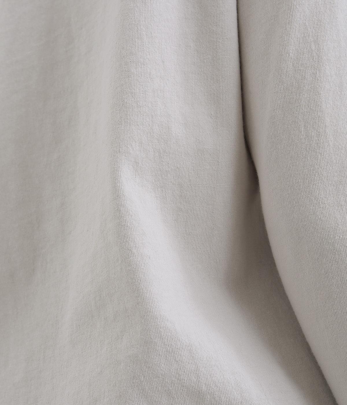 環境に配慮したサステナブルなリサイクルコットンを使用。適度な肉感とやわらかな伸縮性を備えた中厚手の天竺生地でロングシーズン着まわせます。