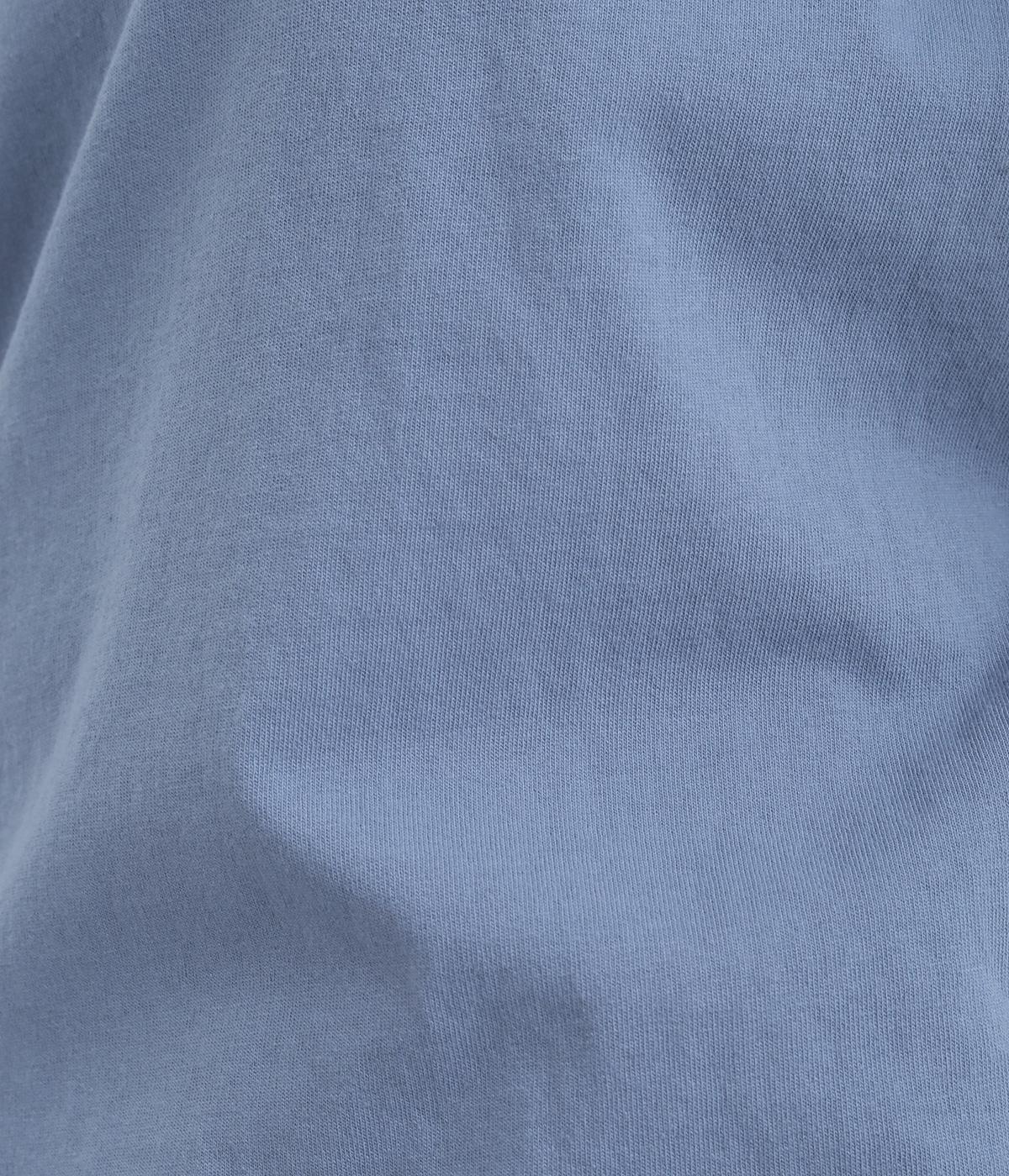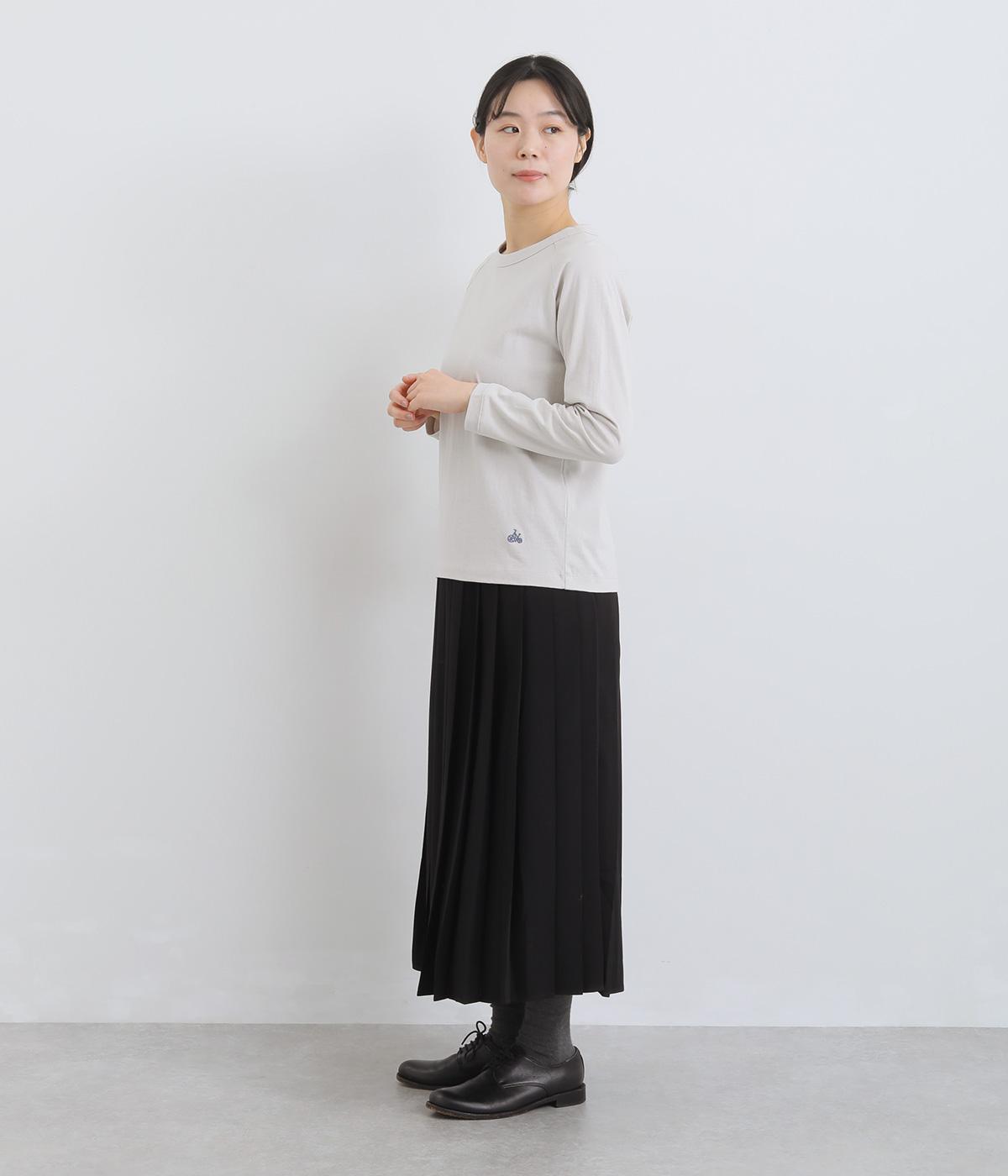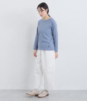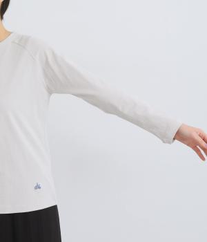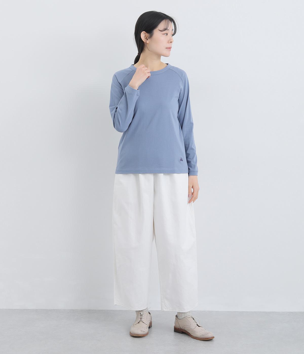 環境に配慮したサステナブルなリサイクルコットンを使用。適度な肉感とやわらかな伸縮性を備えた中厚手の天竺生地でロングシーズン着まわせます。