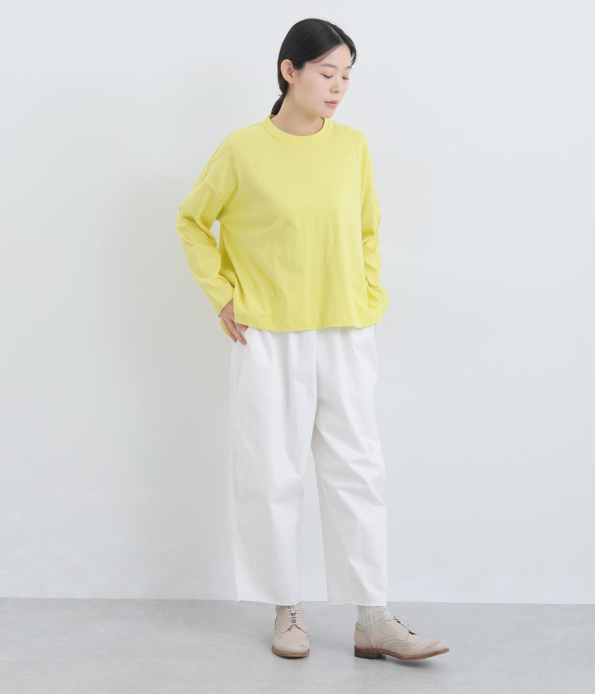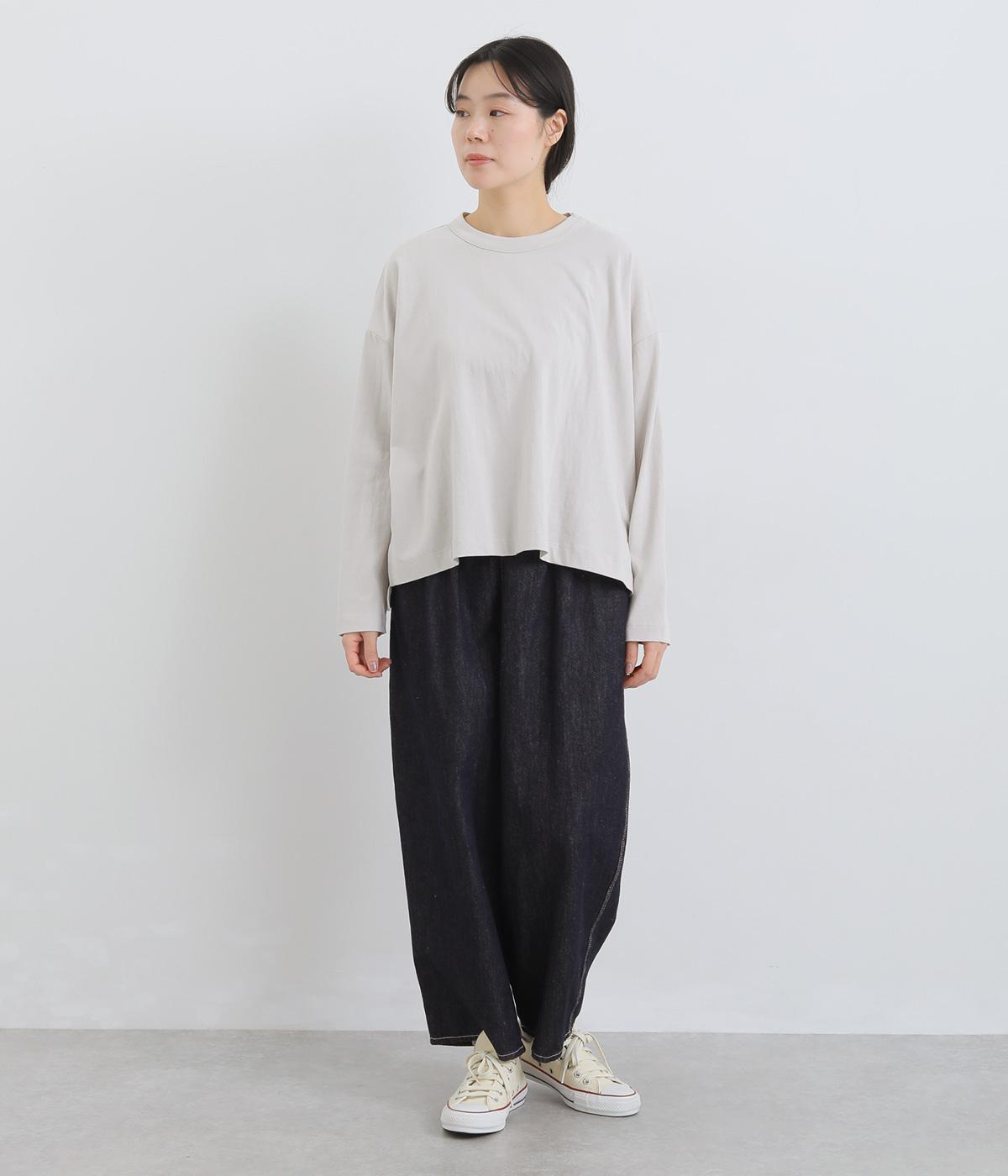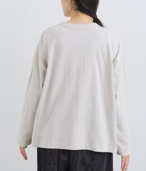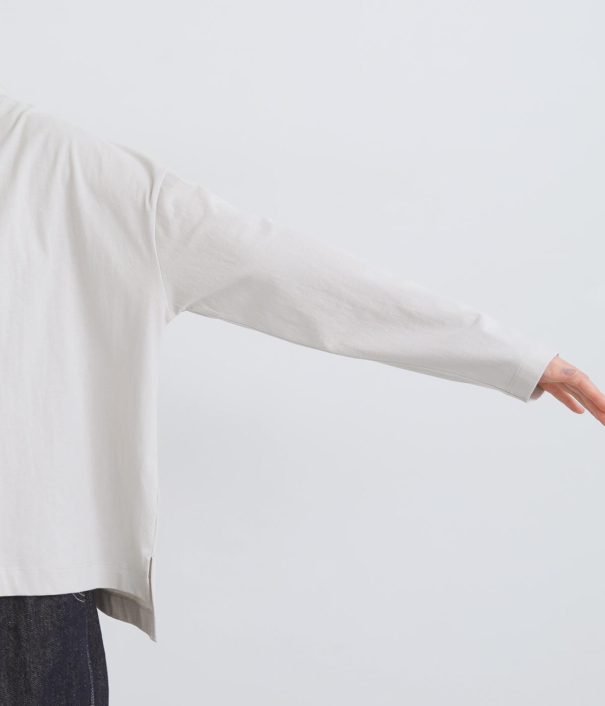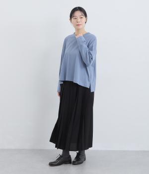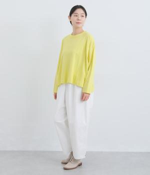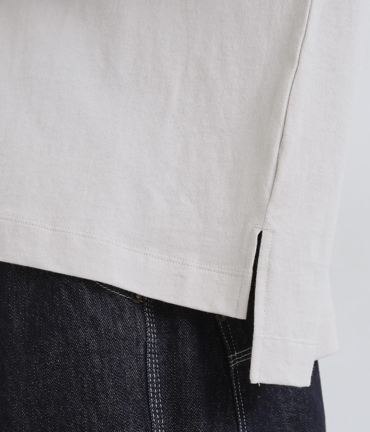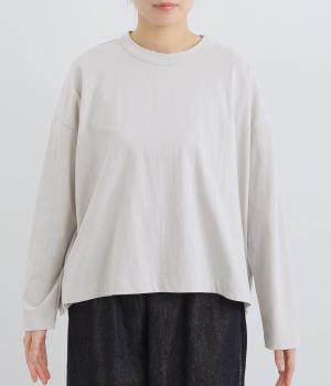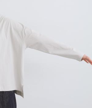 ゆったりとしたワイドシルエットにドロップショルダーの気負いない佇まいが魅力の一枚。前後差をつけた裾はスリットを入れて、さり気なく抜け感をもたせました。肉厚すぎないのでカーディガンなどの羽織り合わせも◎。