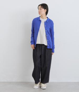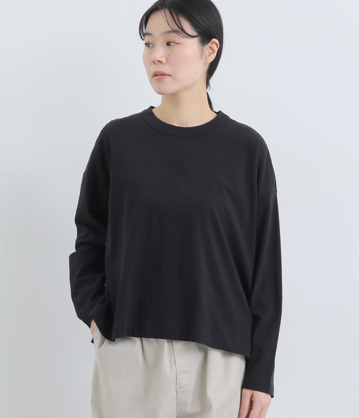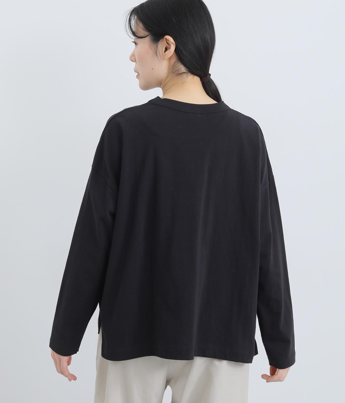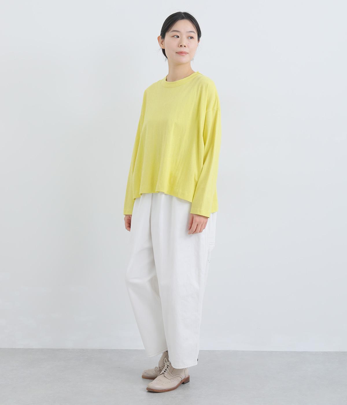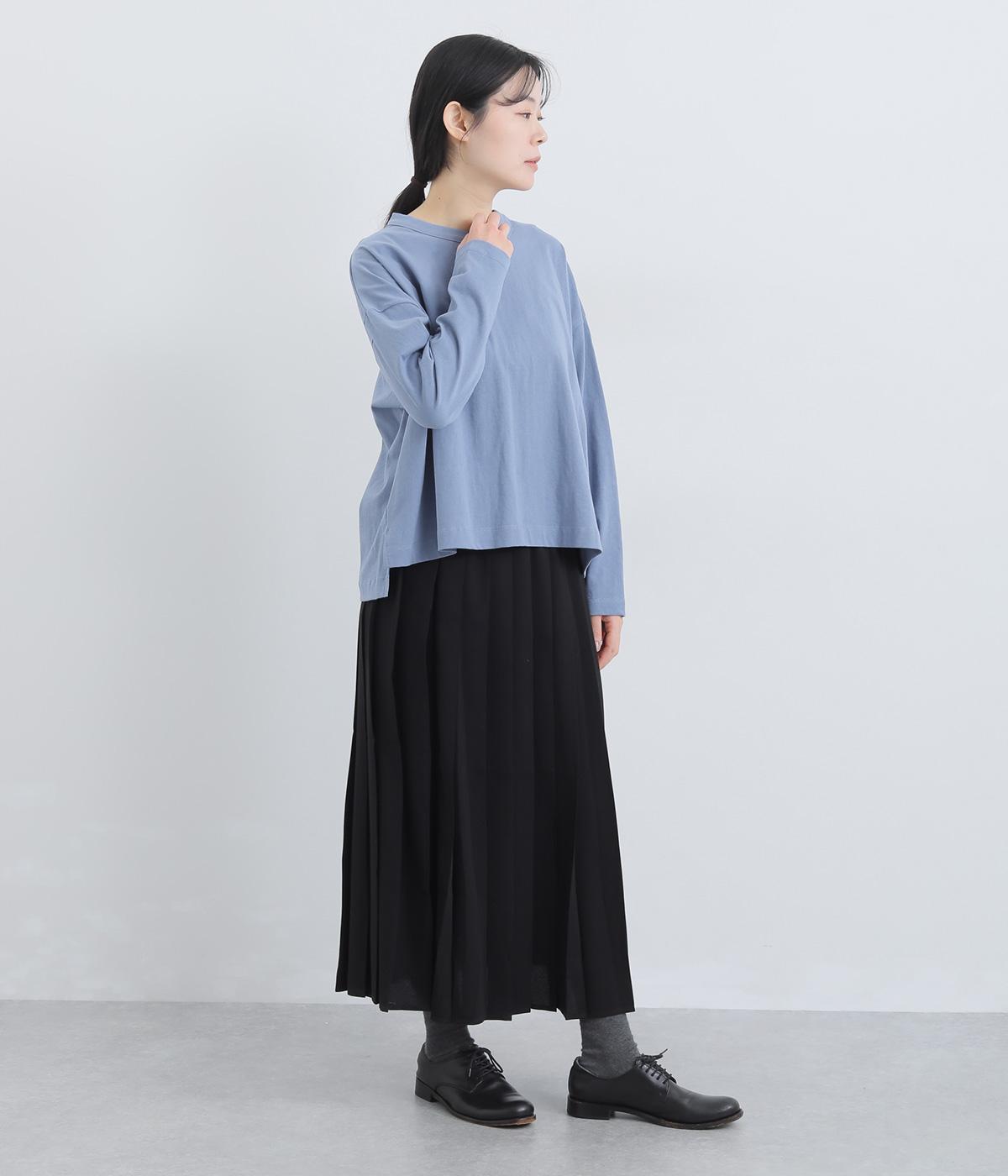 ゆったりとしたワイドシルエットにドロップショルダーの気負いない佇まいが魅力の一枚。前後差をつけた裾はスリットを入れて、さり気なく抜け感をもたせました。肉厚すぎないのでカーディガンなどの羽織り合わせも◎。