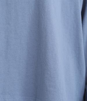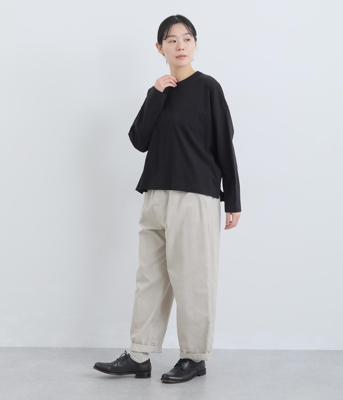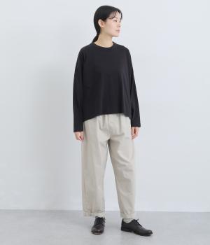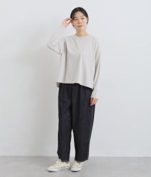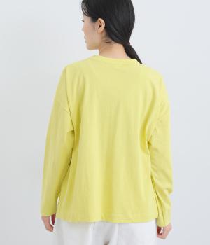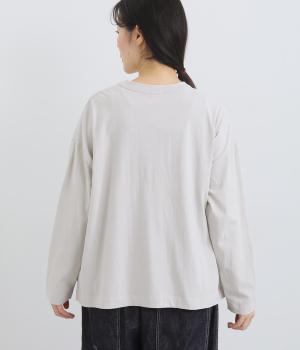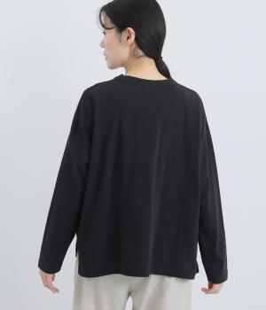 環境に配慮したサステナブルなリサイクルコットンを使用。適度な肉感とやわらかな伸縮性を備えた中厚手の天竺生地でロングシーズン着まわせます。